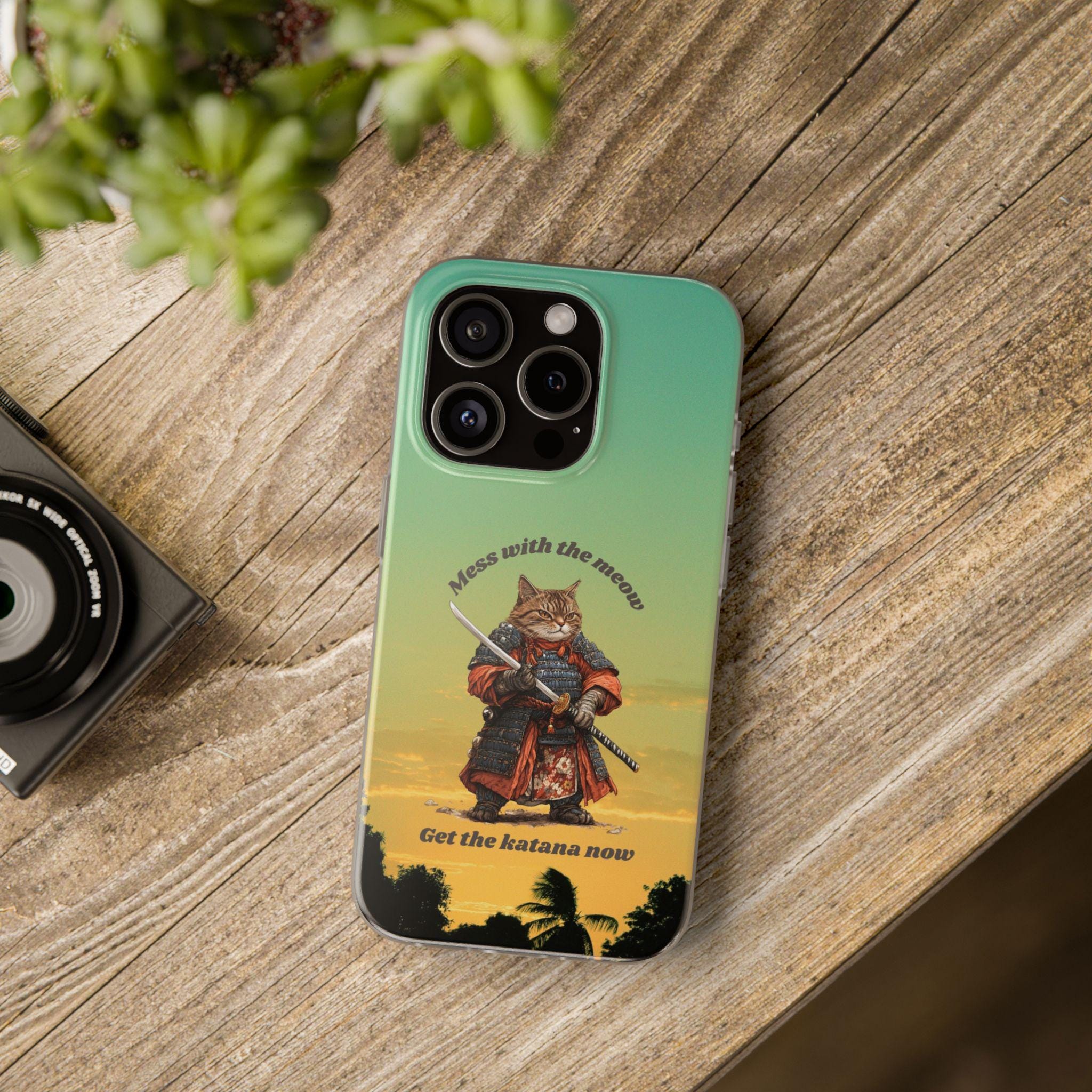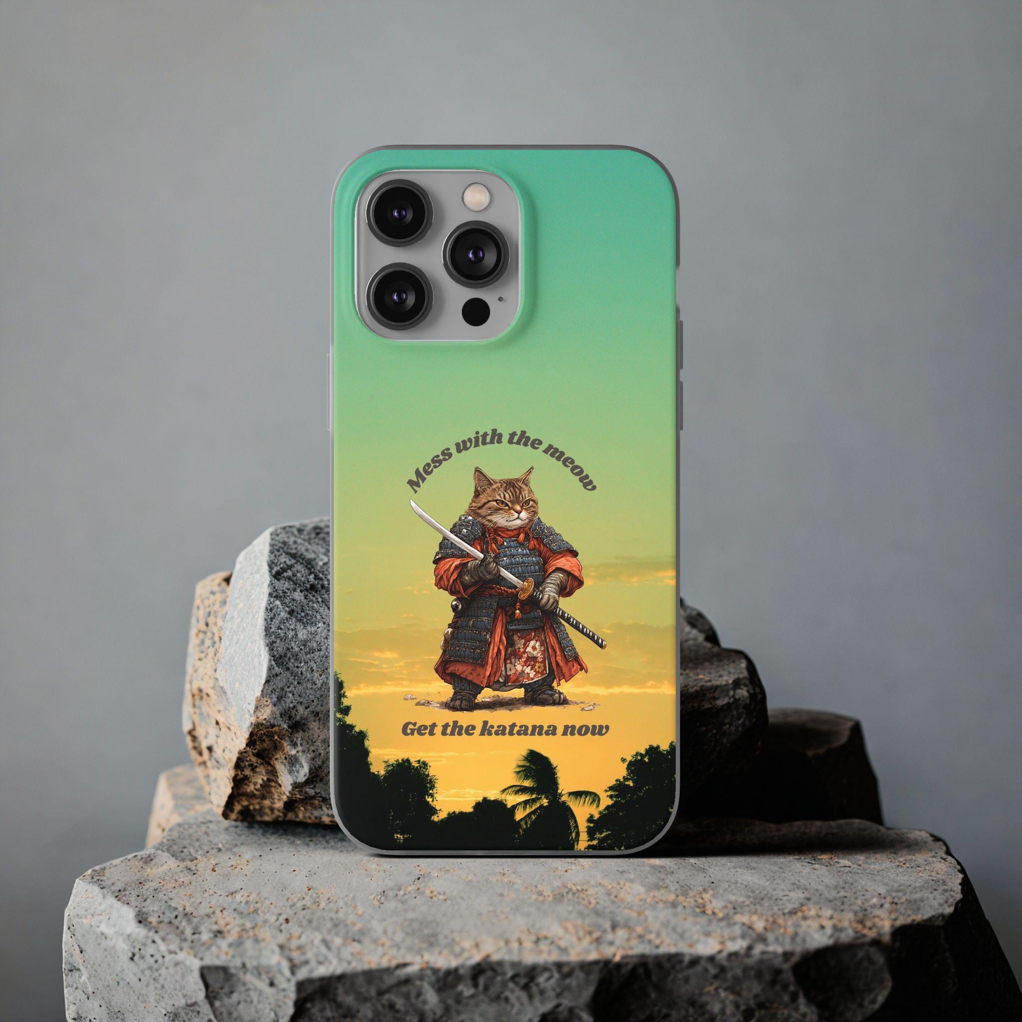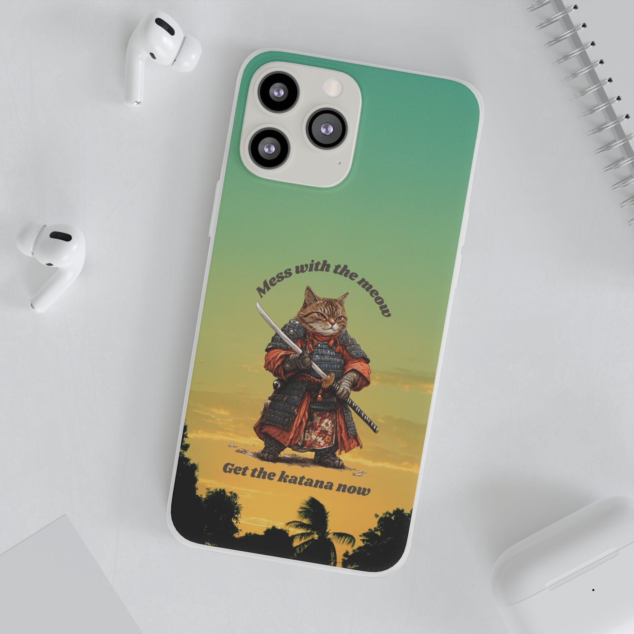 Designed with a vivid high-quality print, this slim Flexi case showcases a fierce warrior-cat wielding a katana against a warm, gradient sunset sky. The playful yet powerful illustration adds a storybook vibe to your device, making it a standout accessory. Whether you're looking to showcase your love for Japanese warrior art or seeking a unique gift for an anime fan, this case is sure to impress.