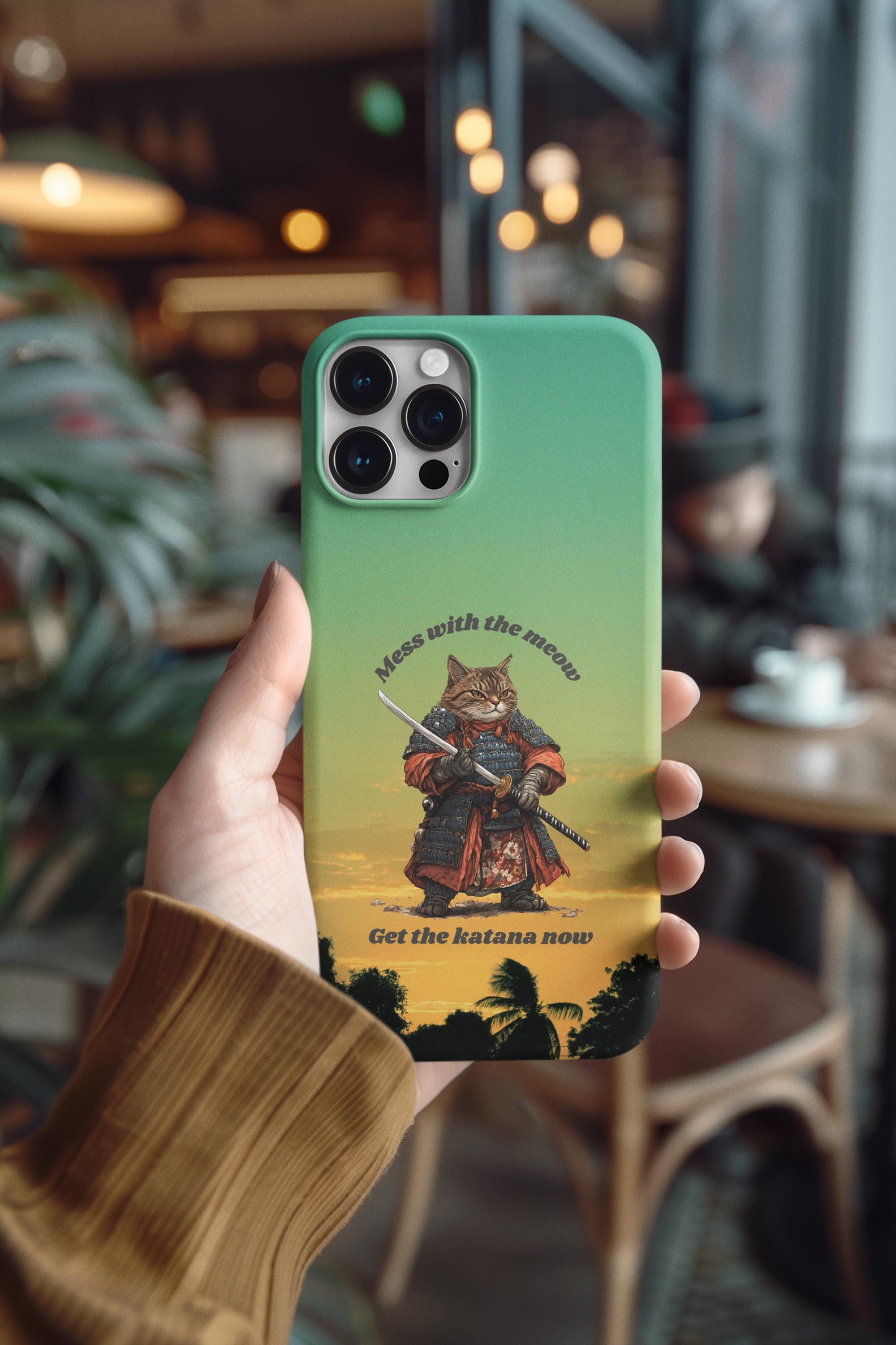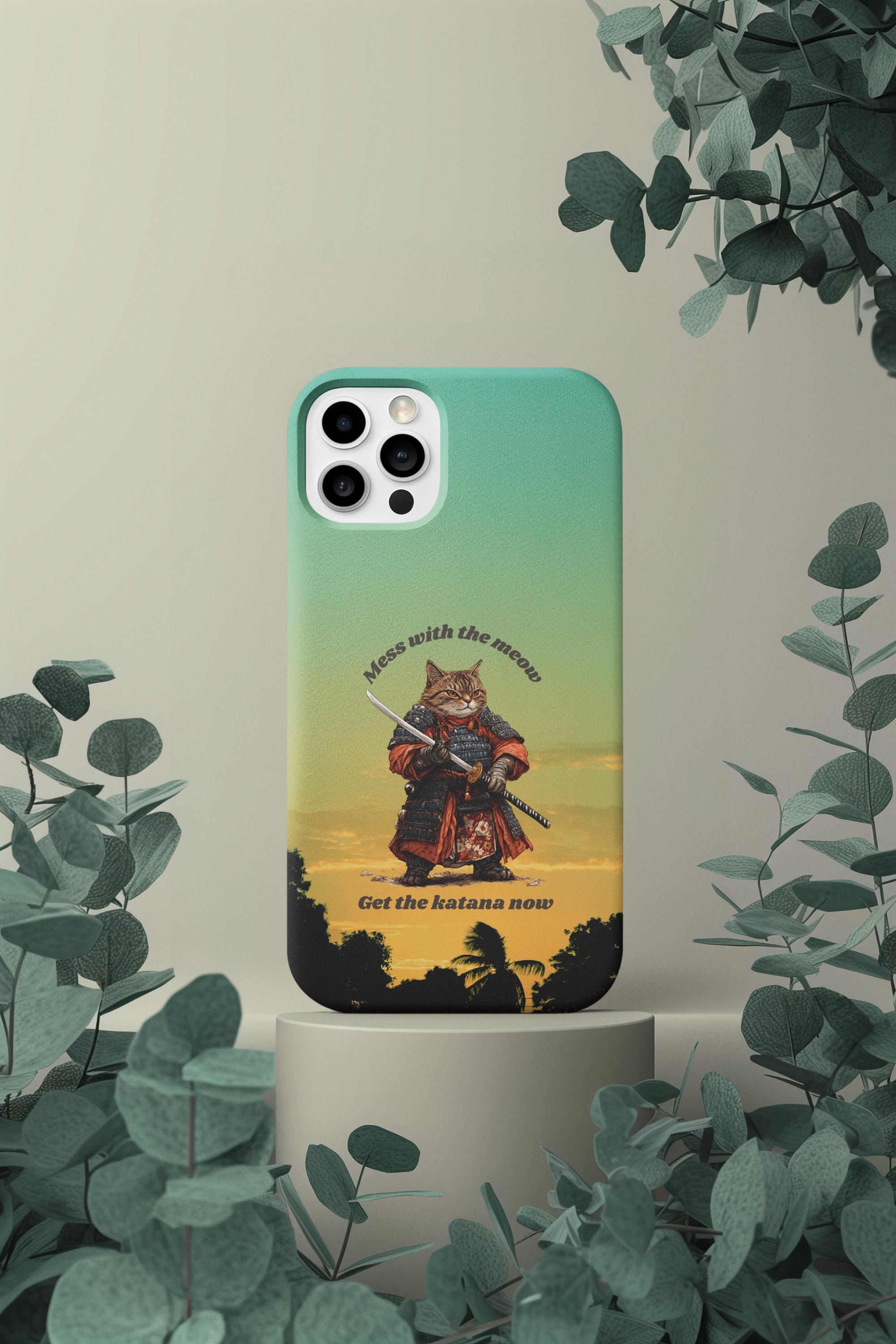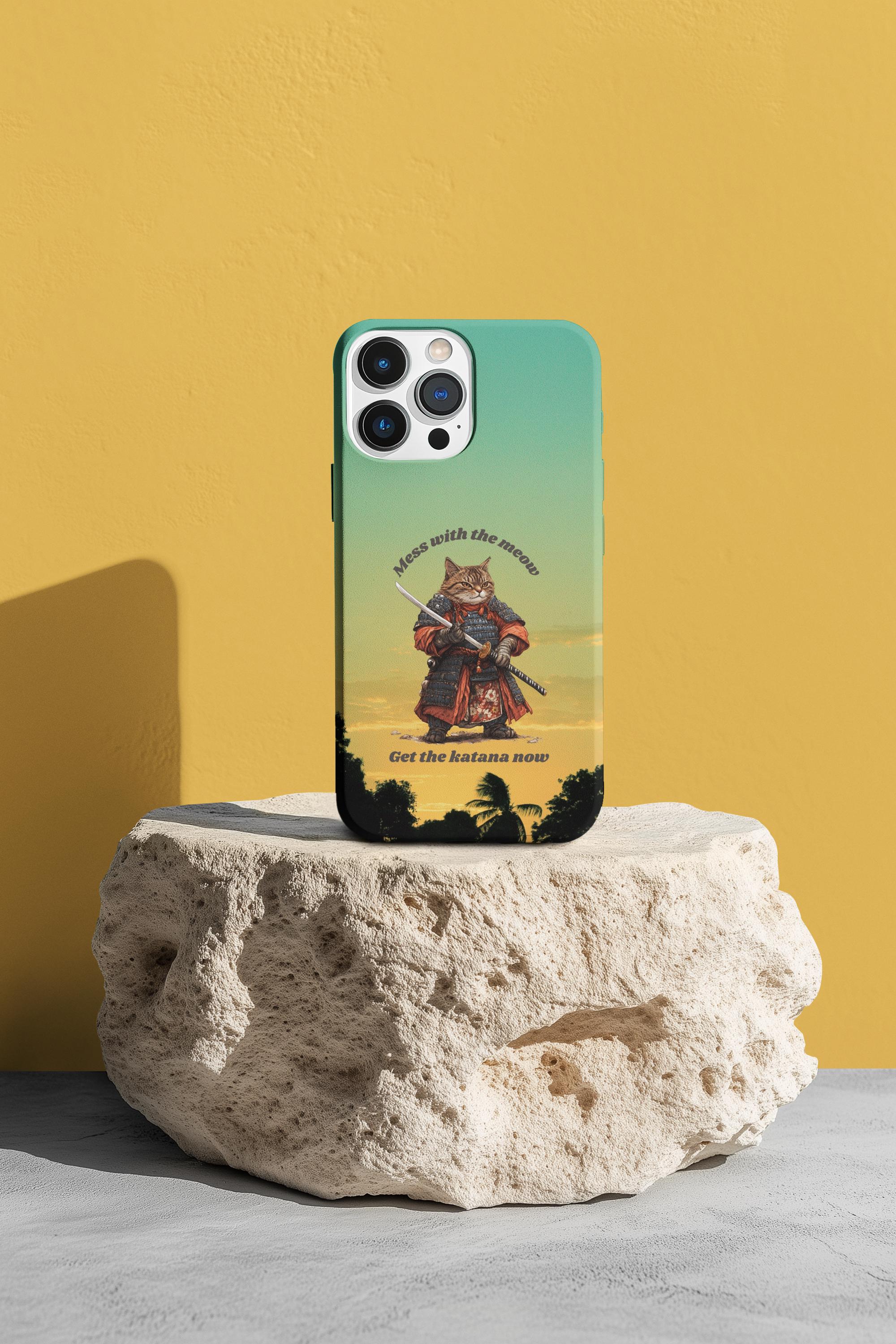 Samurai Cat Sunset Phone Case | Katana Warrior, Anime Art