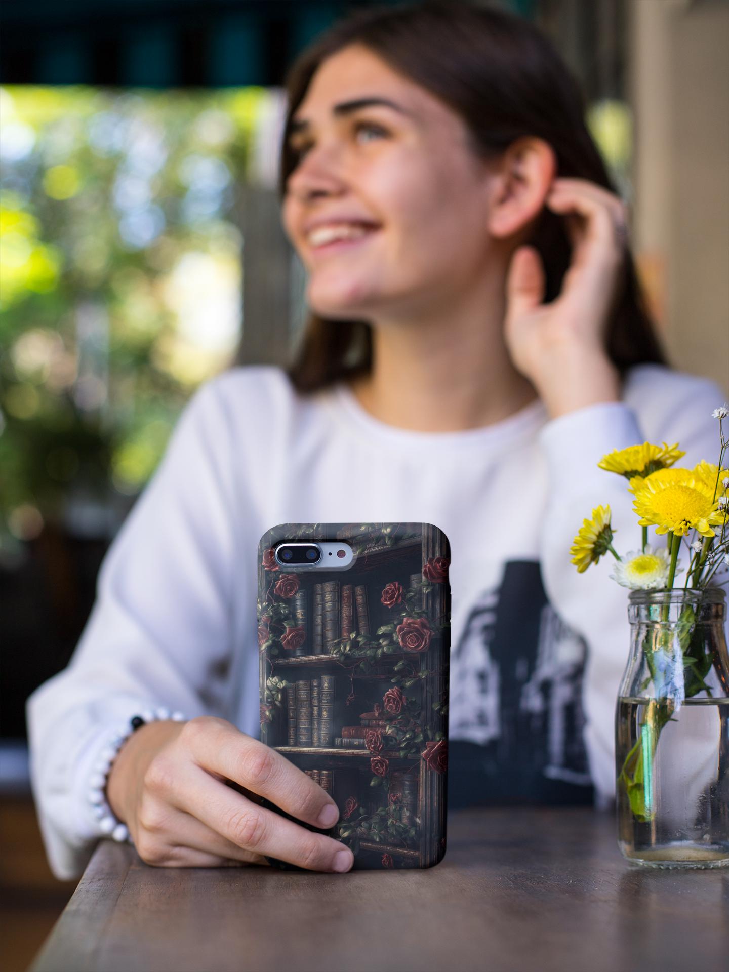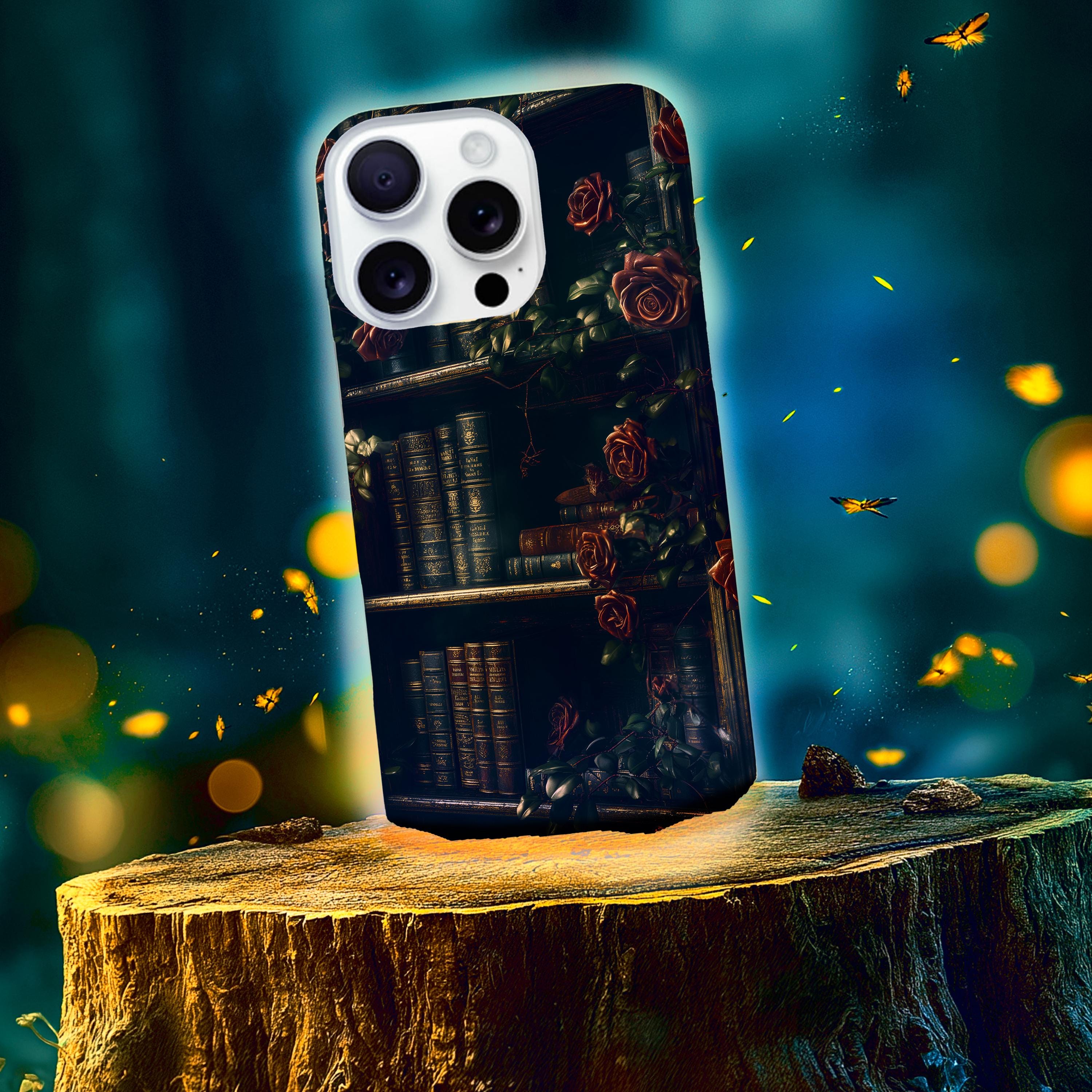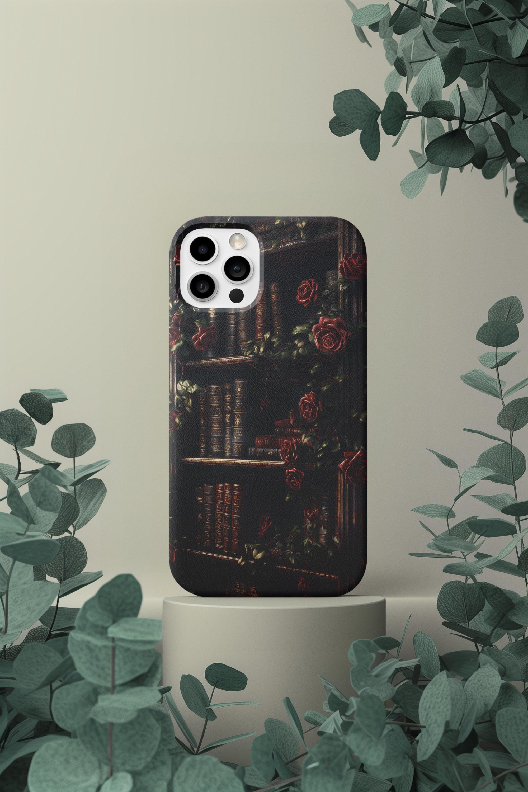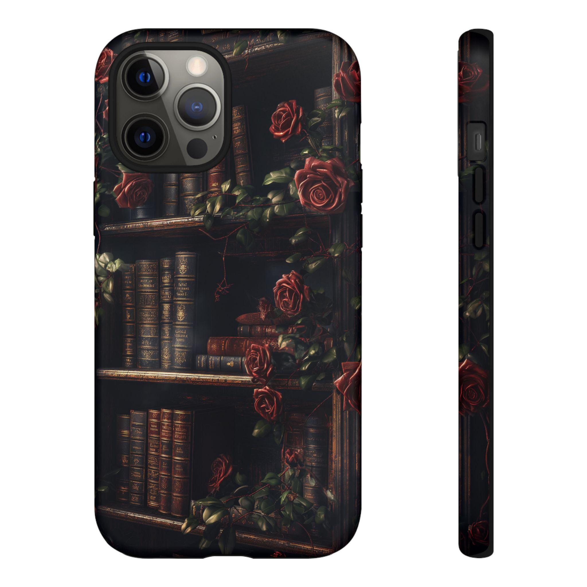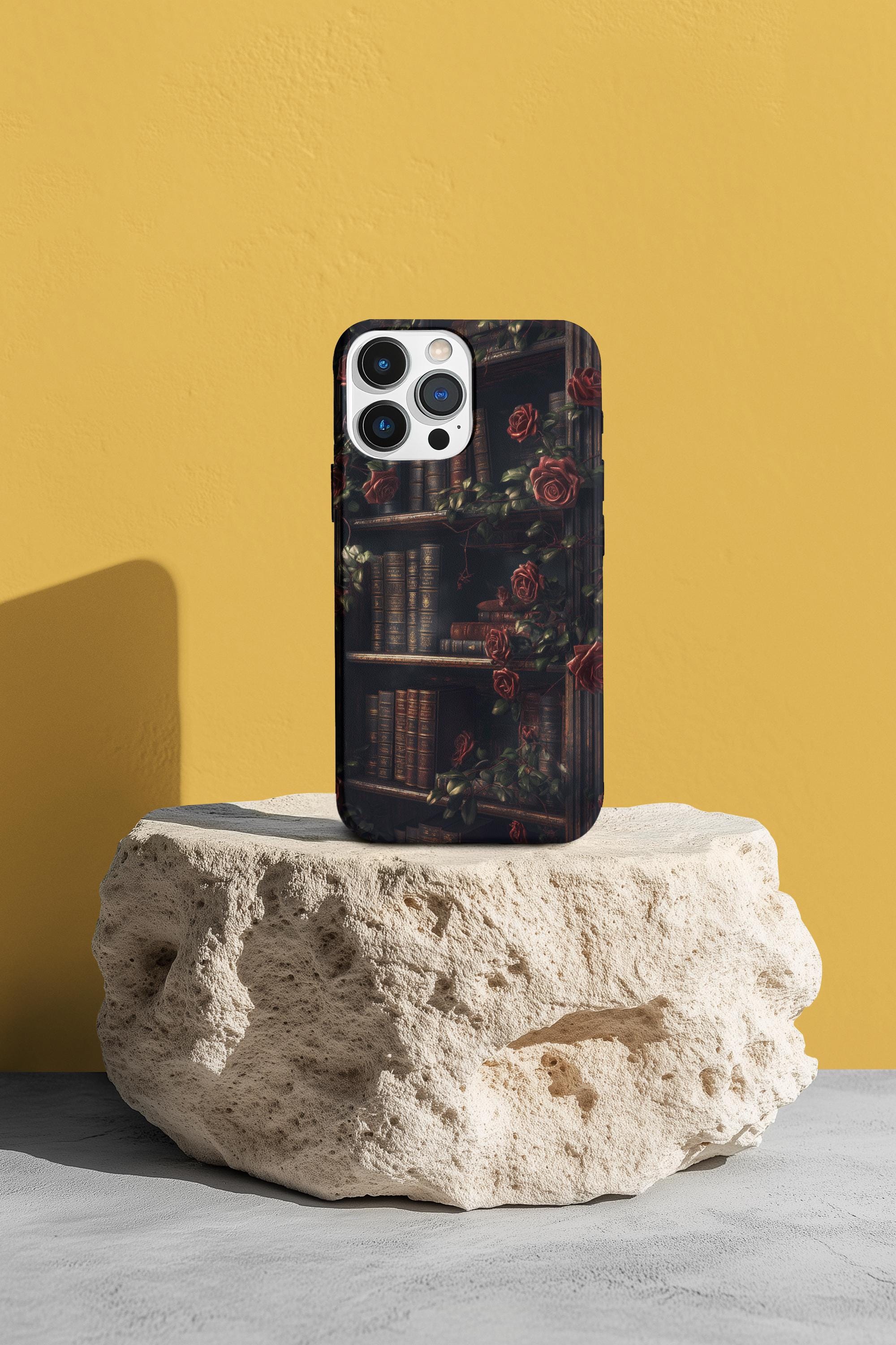 Gothic Rose Bookshelf Phone Case - Dark Academia Style