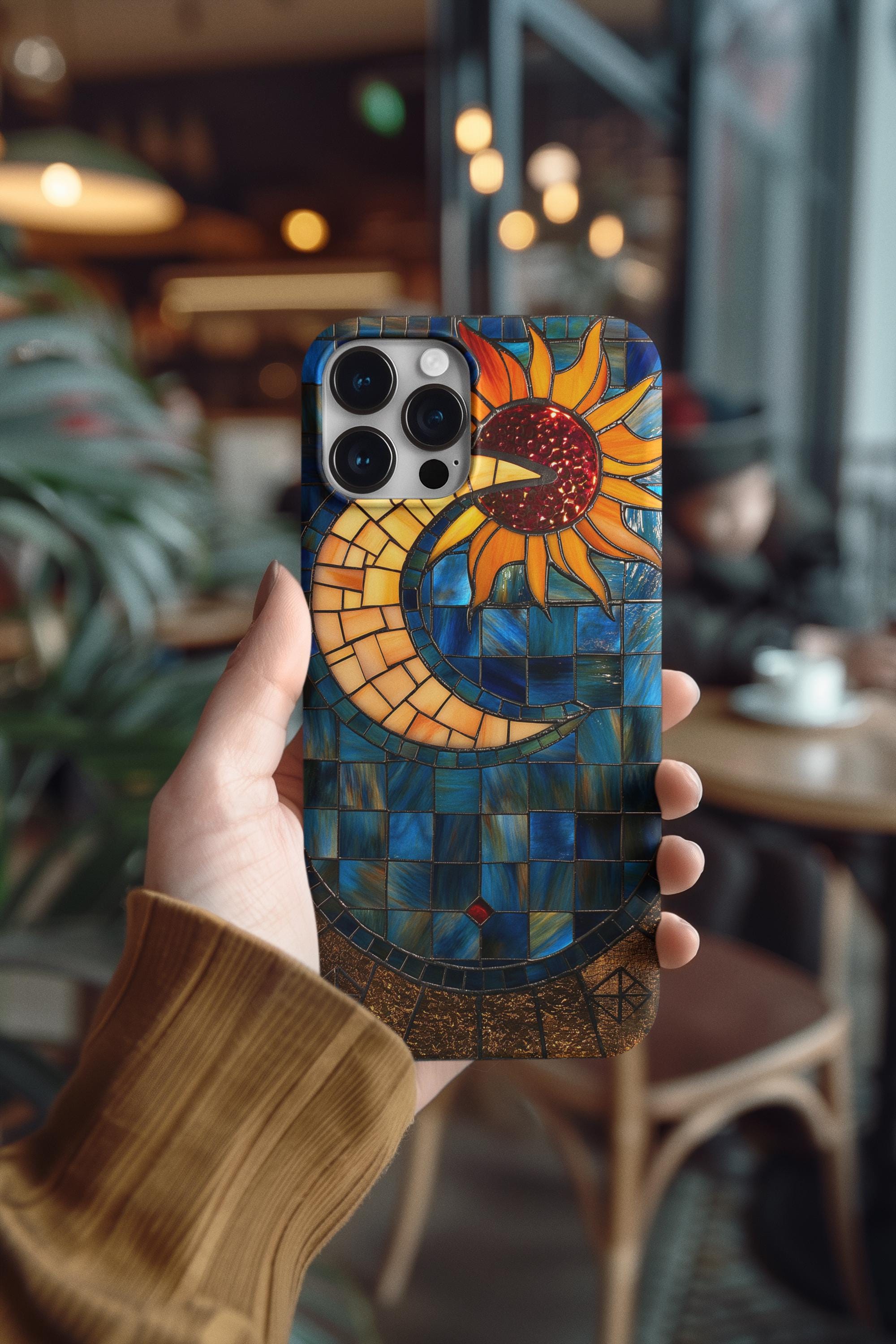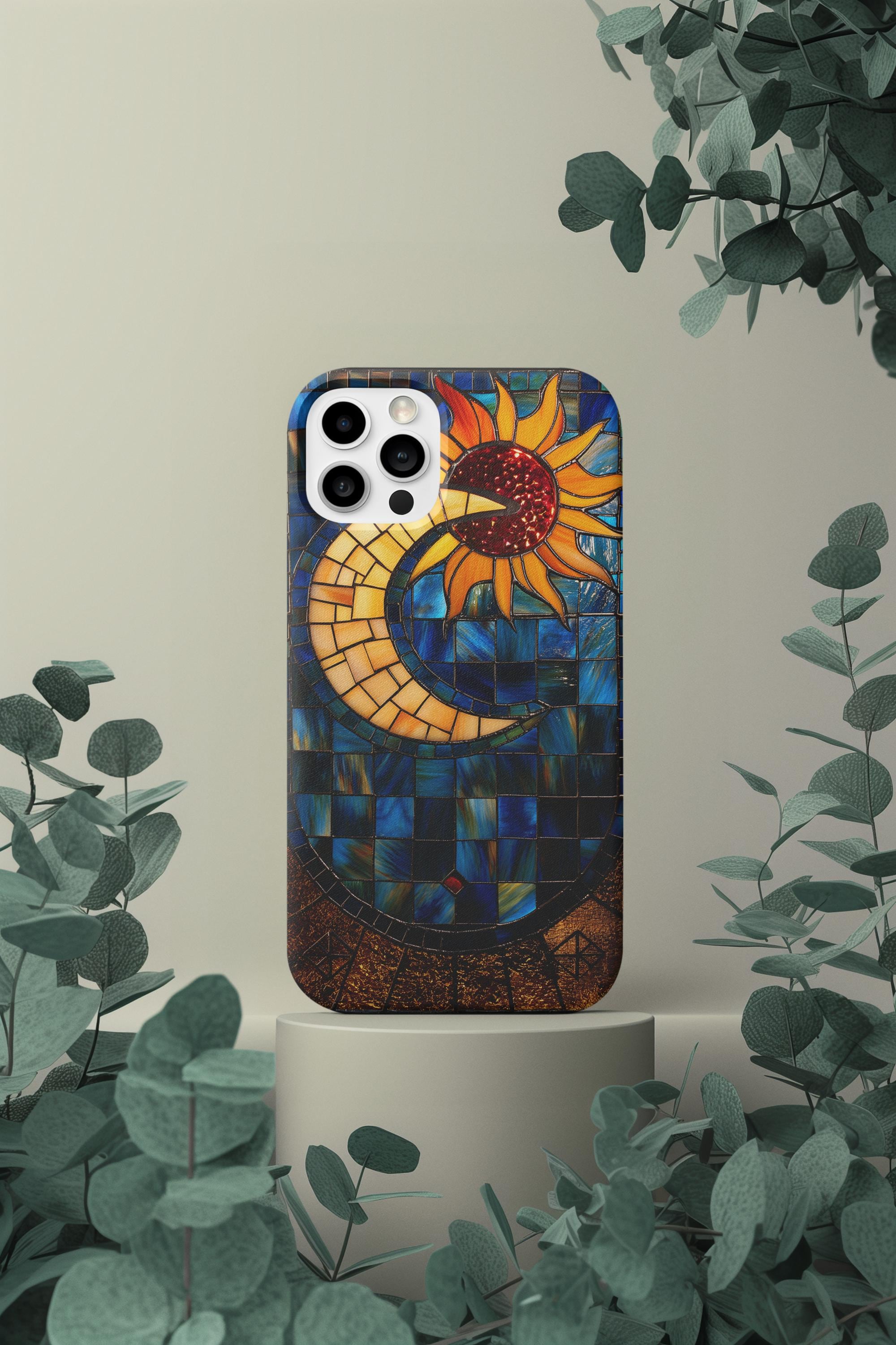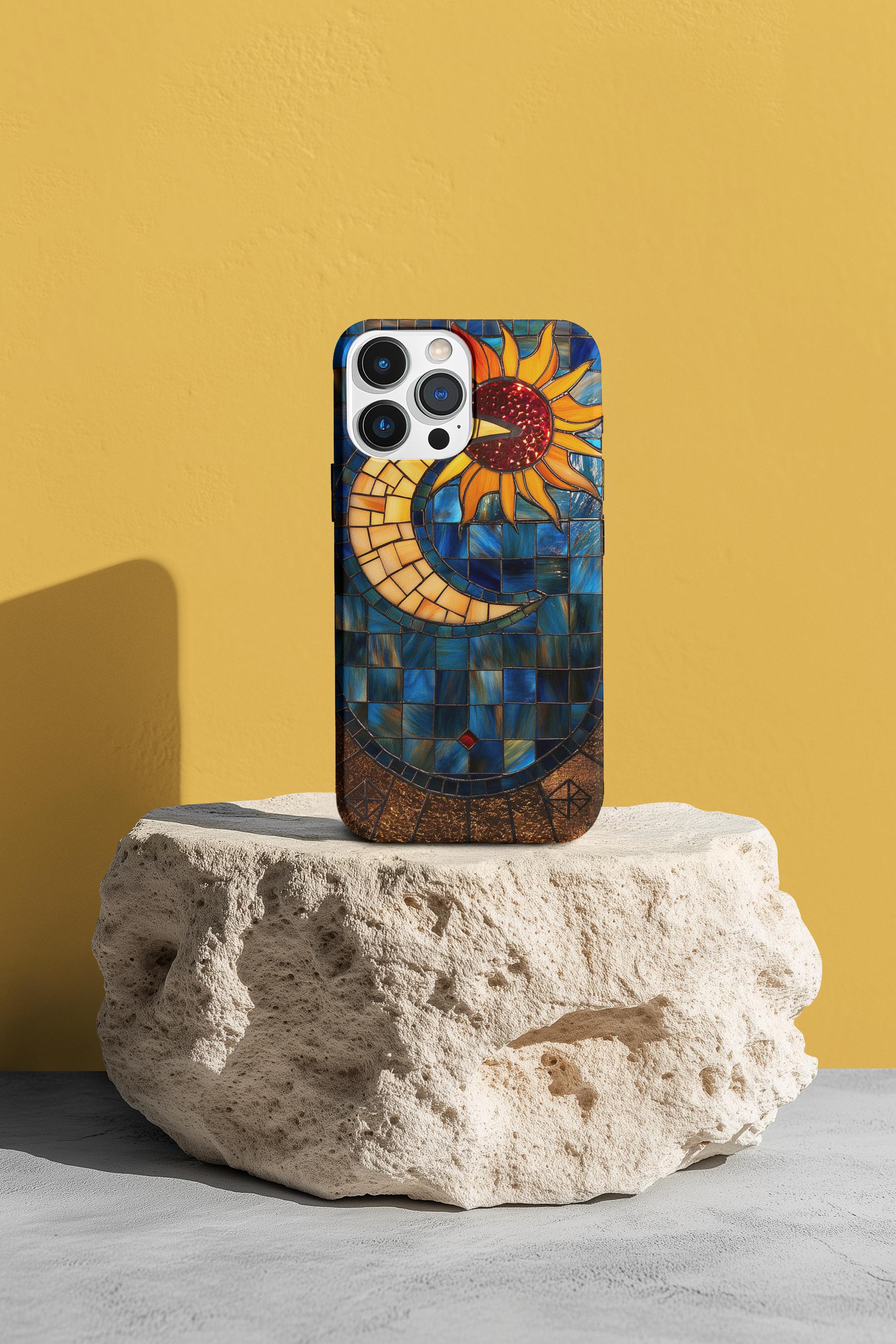 Stained Glass Sun & Moon Phone Case | Celestial Mosaic Art