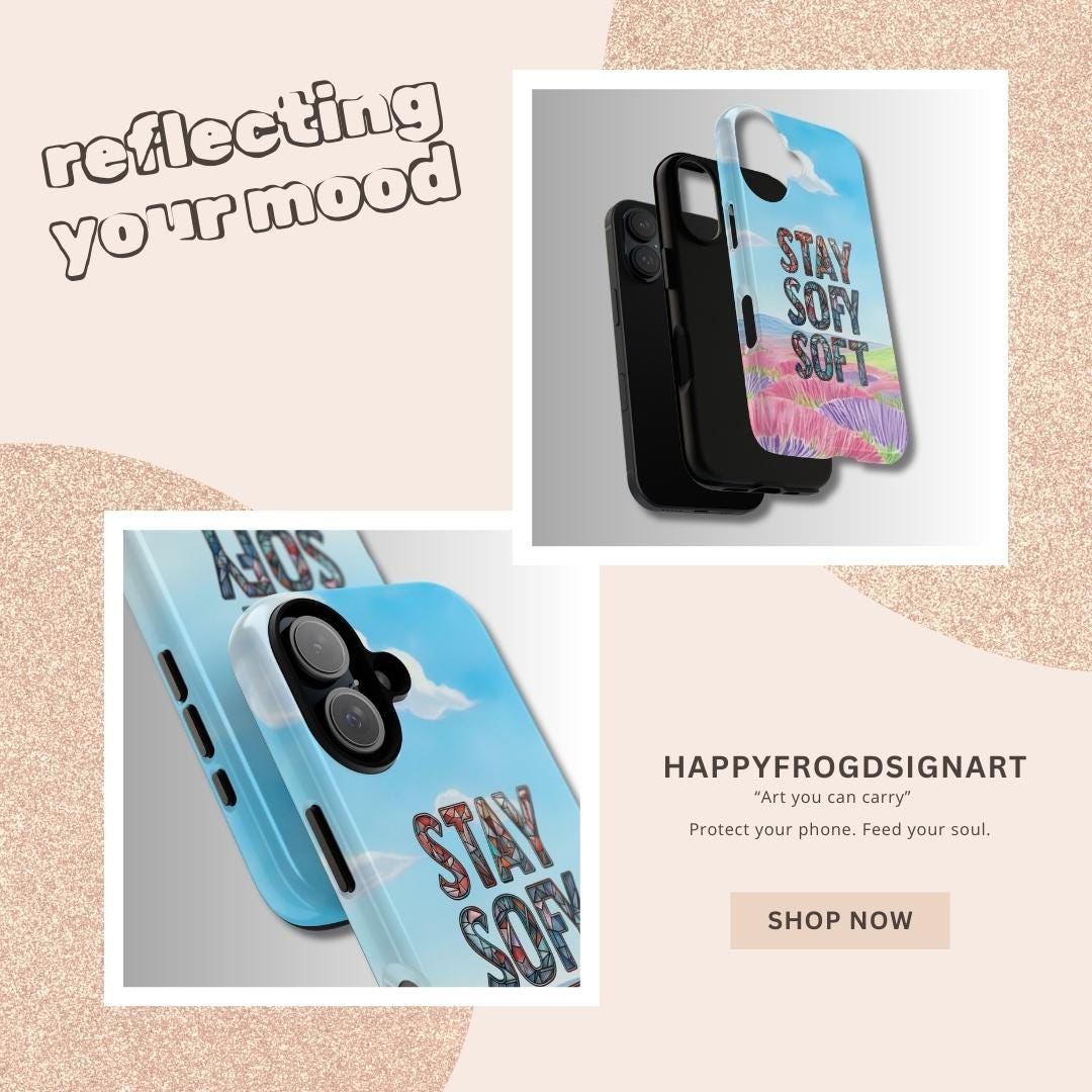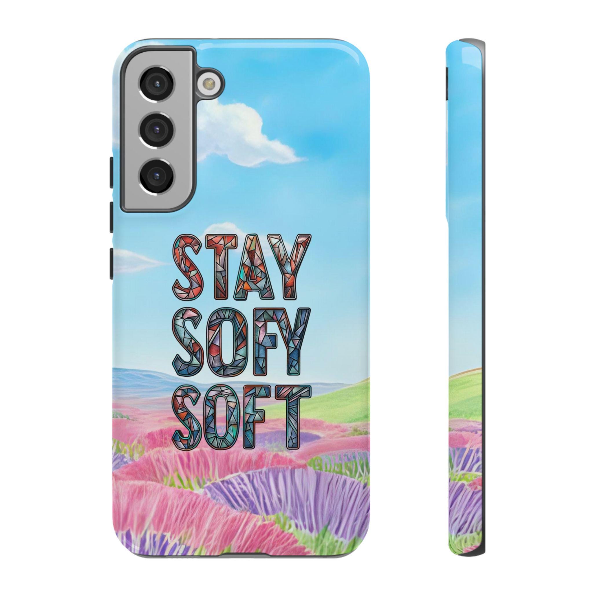 Escape to a world of peace every time you look at your phone. This exclusive HappyFrogDesignArt case combines a breathtaking landscape—vibrant lavender fields under a soft blue sky—with a powerful, gentle reminder: Stay Soft.