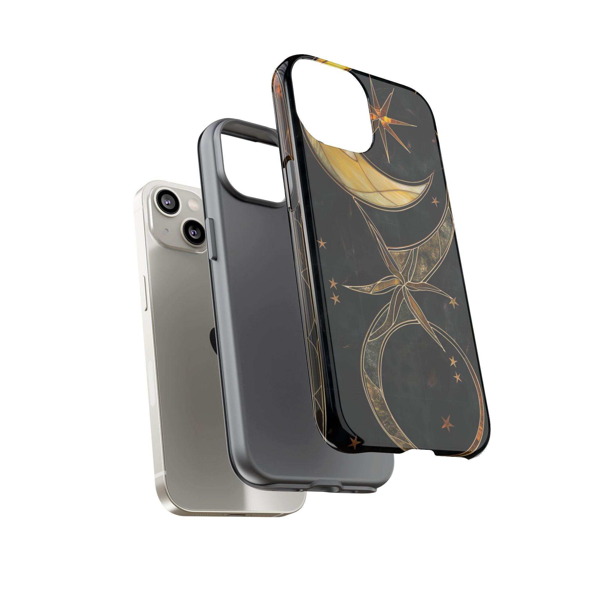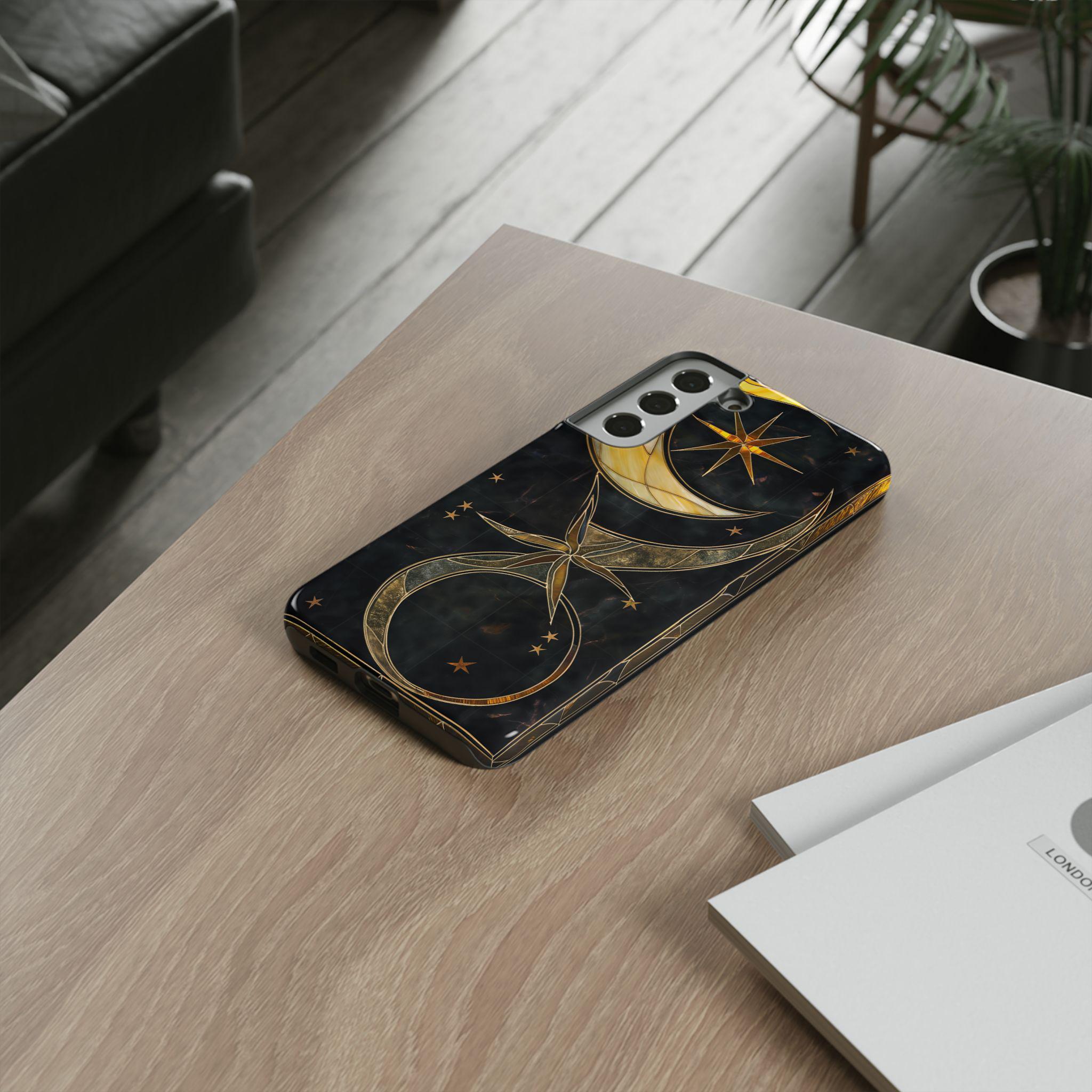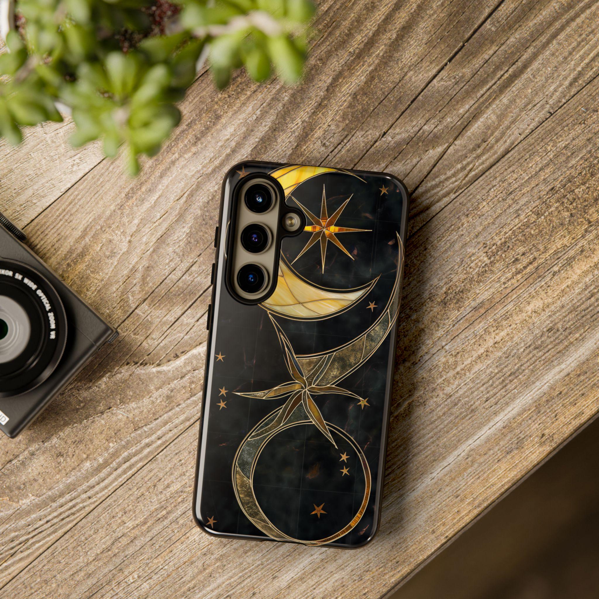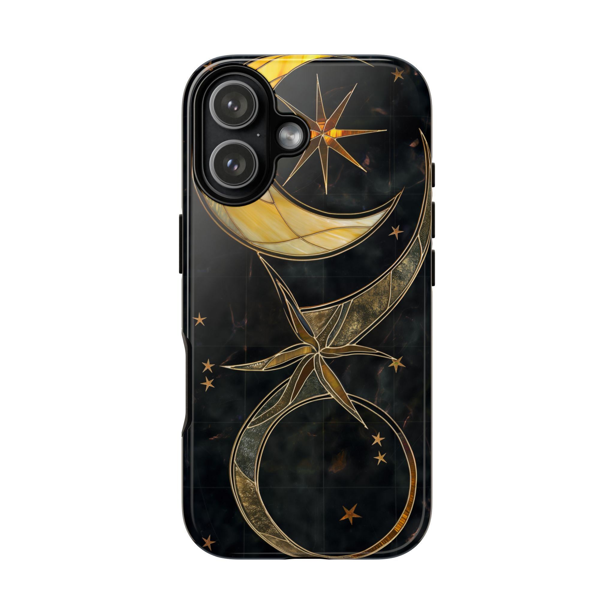 Celestial Stained Glass Crescent Moon Phone Case | Gold Starry Midnight