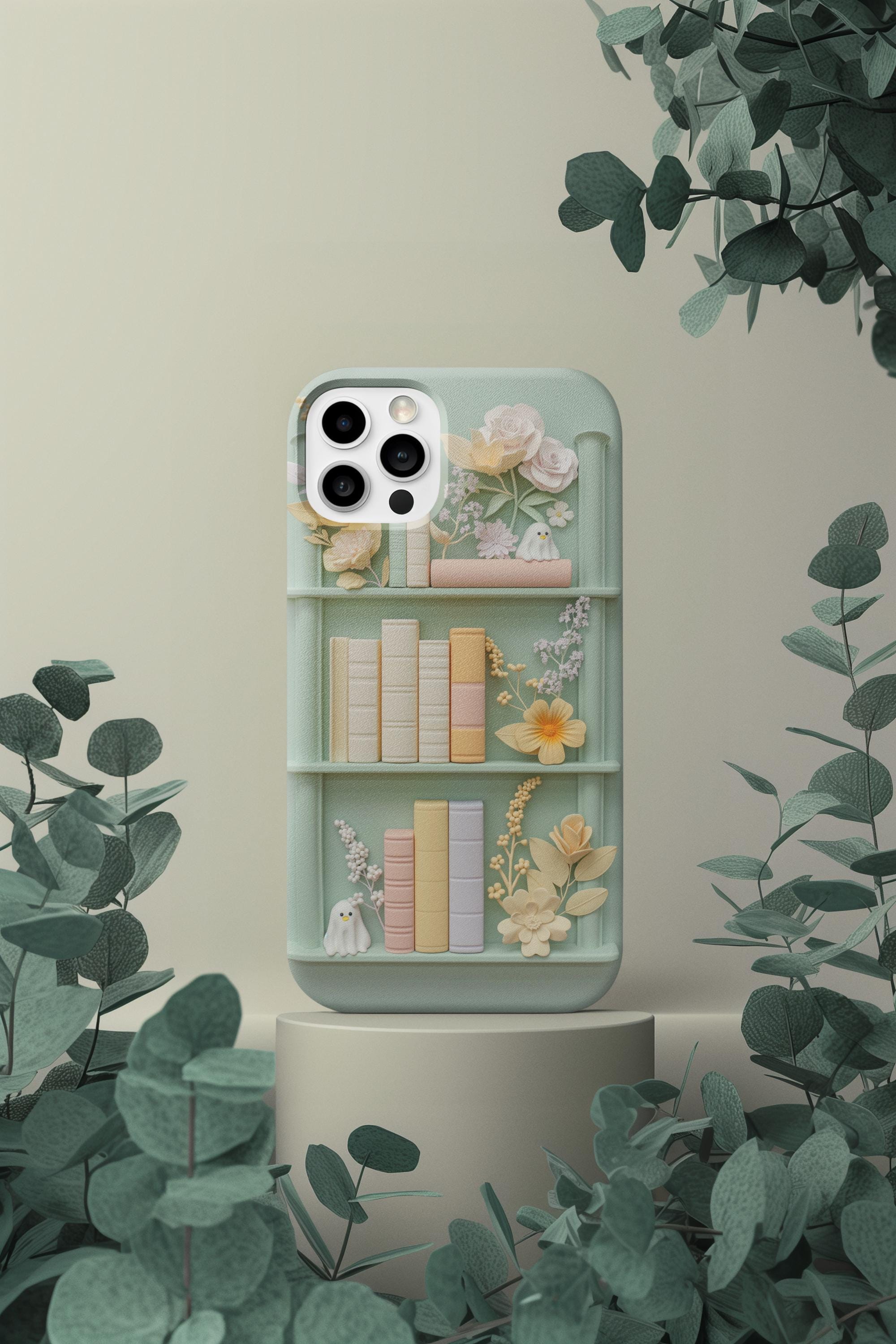 The Whimsical Library: 3D-Effect Pastel Bookshelf Case