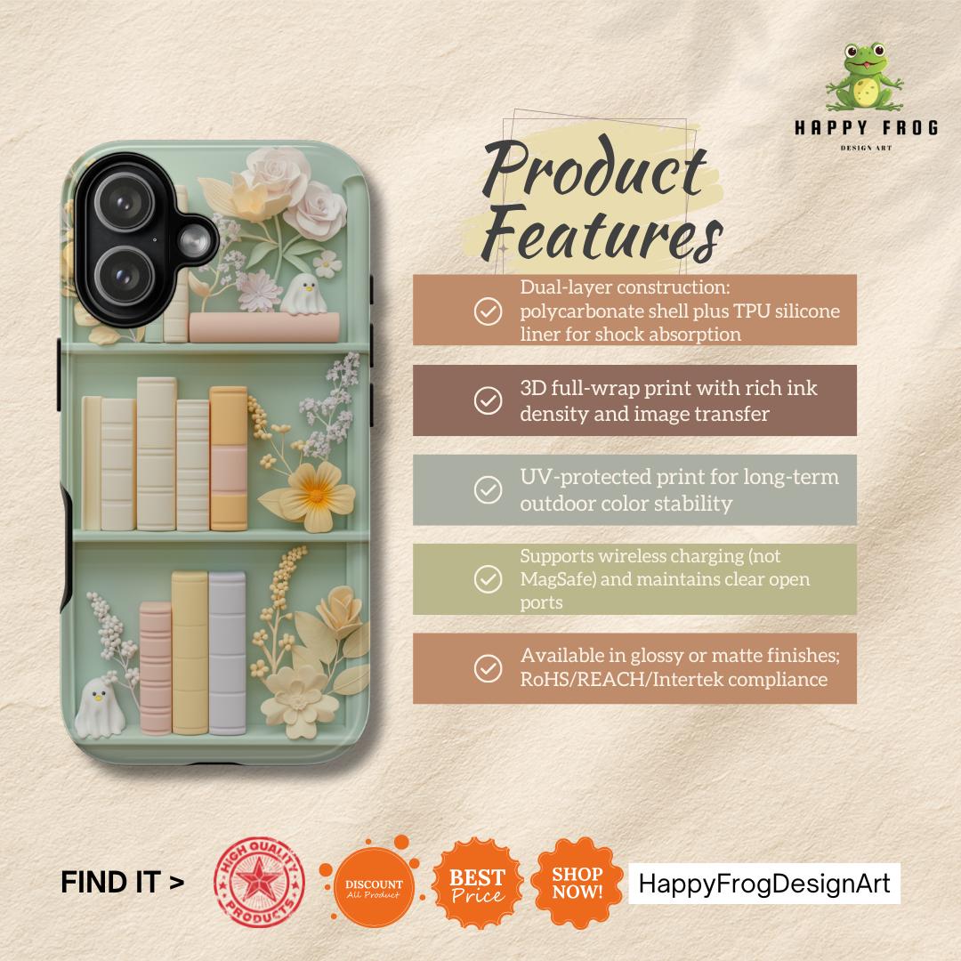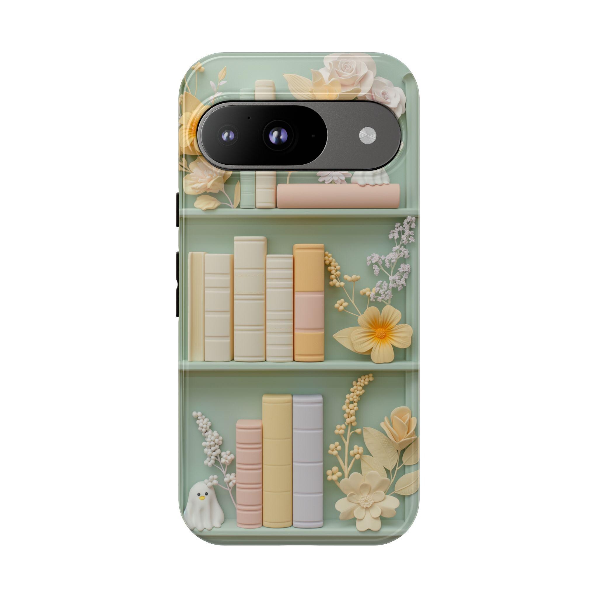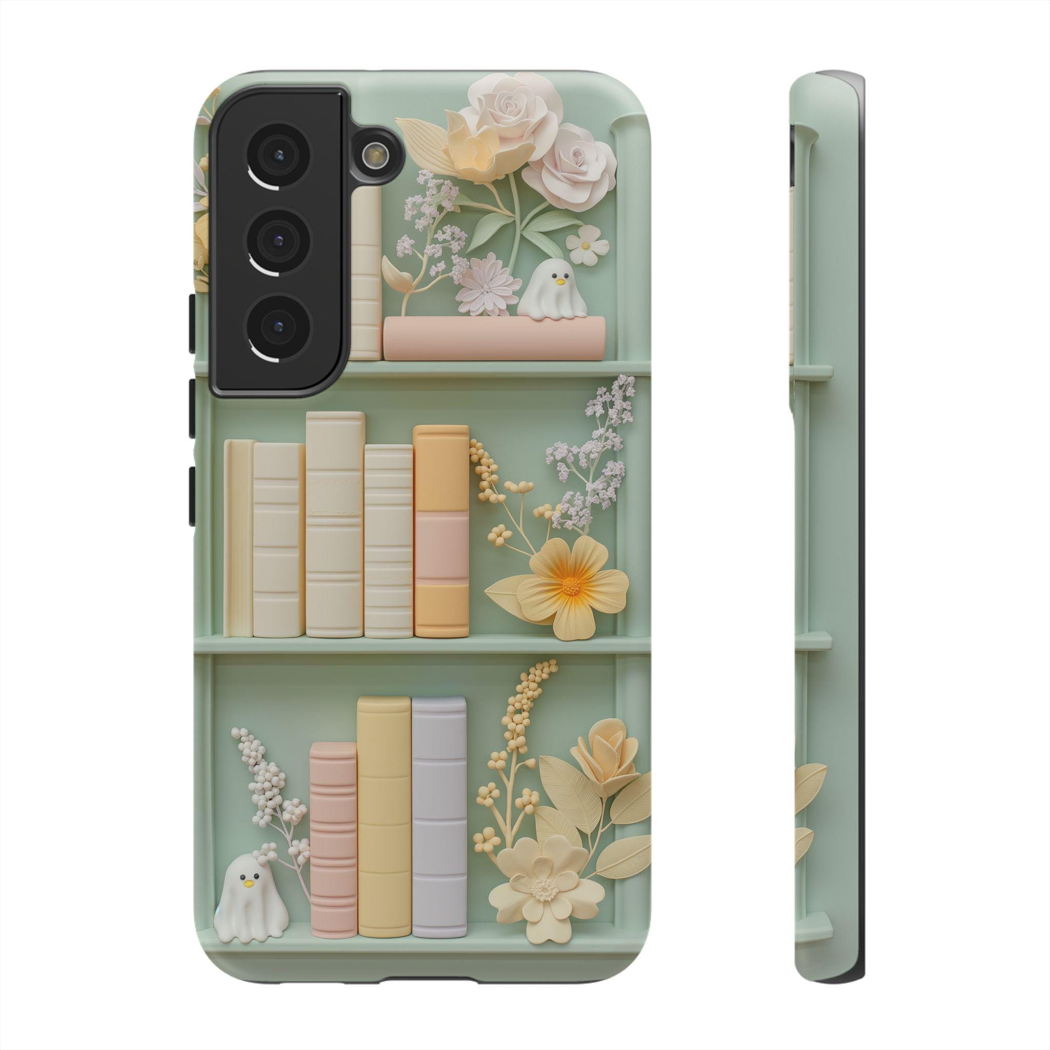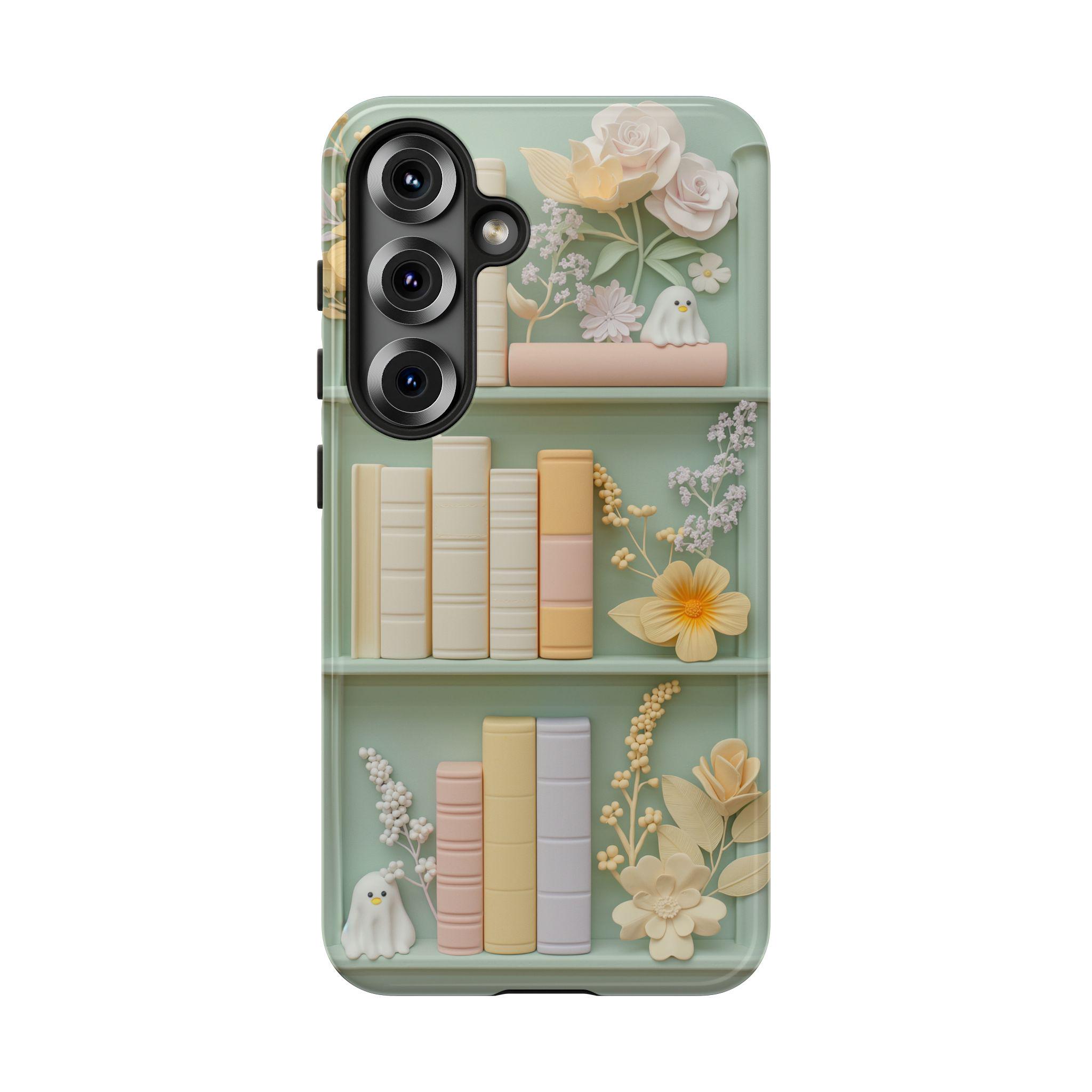 Pastel Claymorphism Books & Ghosts Tough Cases | Minimalist Floral Bookshelf