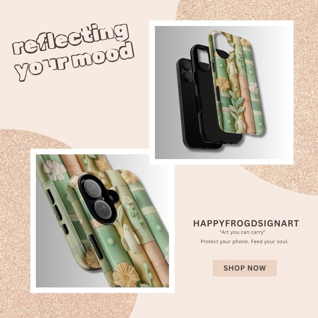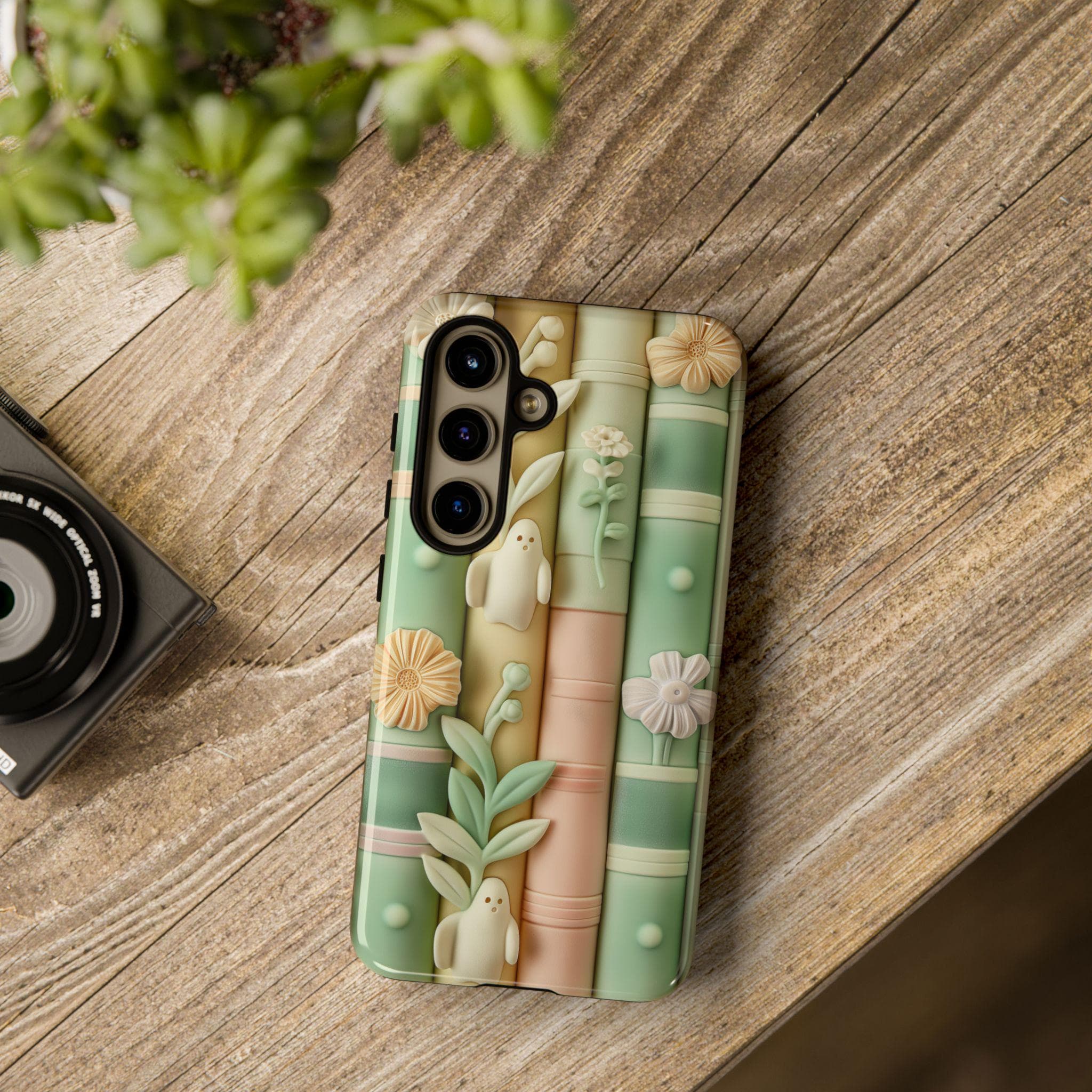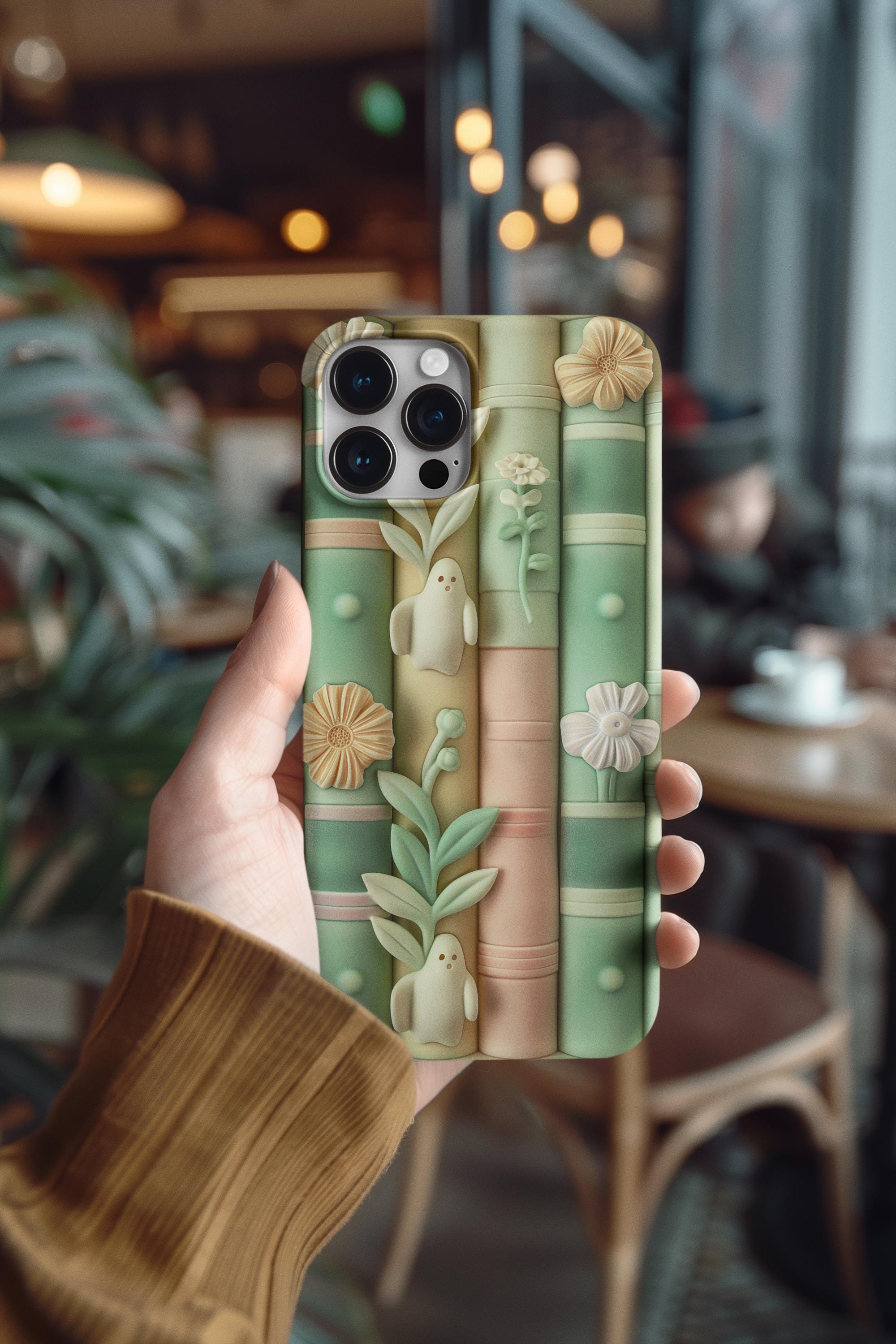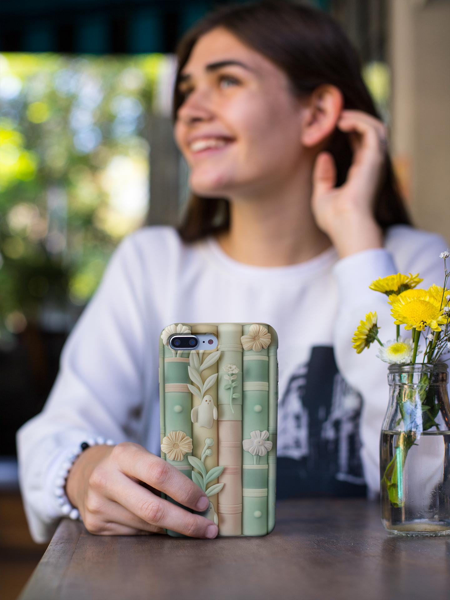 Carry a tiny, spellbound library in your pocket. This phone case wraps pastel-toned books, delicate blooms, and shy ghostly figures in a soft claymorphism 3D illusion that feels whimsical and calm. Run your fingers over the subtle texture and you’ll find a miniature scene of quiet reading nooks and hidden spirits — a gentle reminder to slow down and let imagination breathe. For lovers of cozy aesthetics and light, dreamy design, this case turns a daily essential into a small, personal world you’ll smile at every time you reach for your phone.