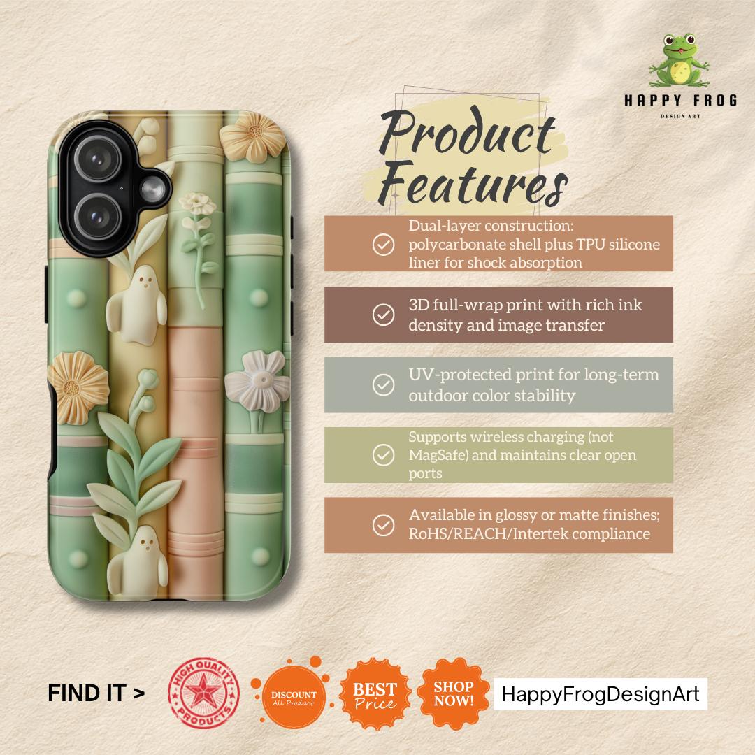 Carry your own secret sanctuary in your pocket. This exclusive HappyFrogDesignArt creation brings the warmth of a sun-drenched library to your daily life. Featuring a soft pastel palette and a unique "clay-style" 3D illusion, this case is designed for those who find magic in books and peace in minimalist art.