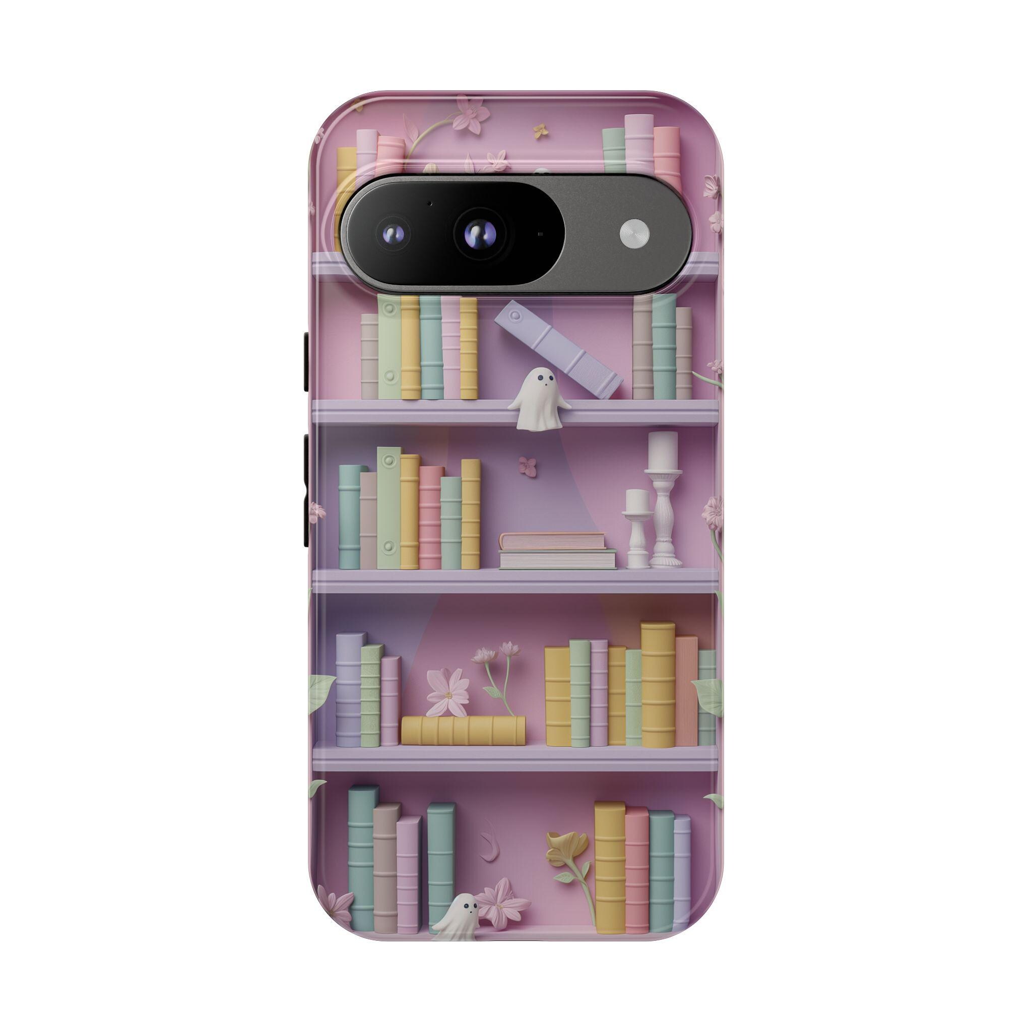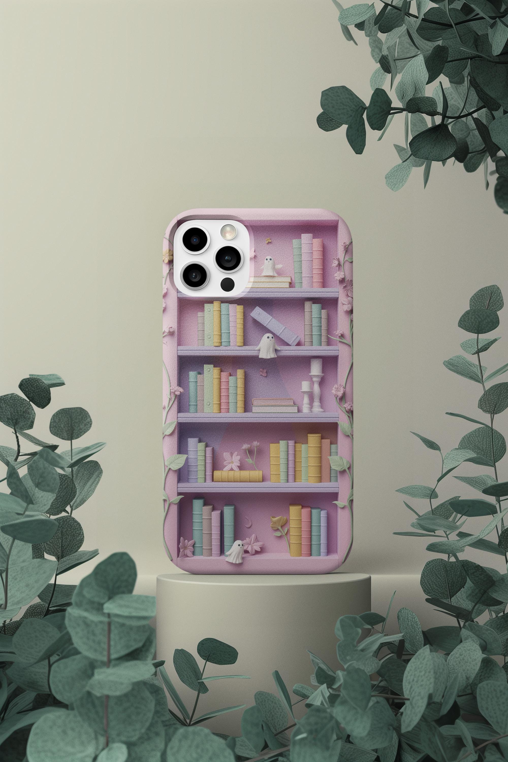 The Whimsical Library: 3D-Effect Pastel Bookshelf Case