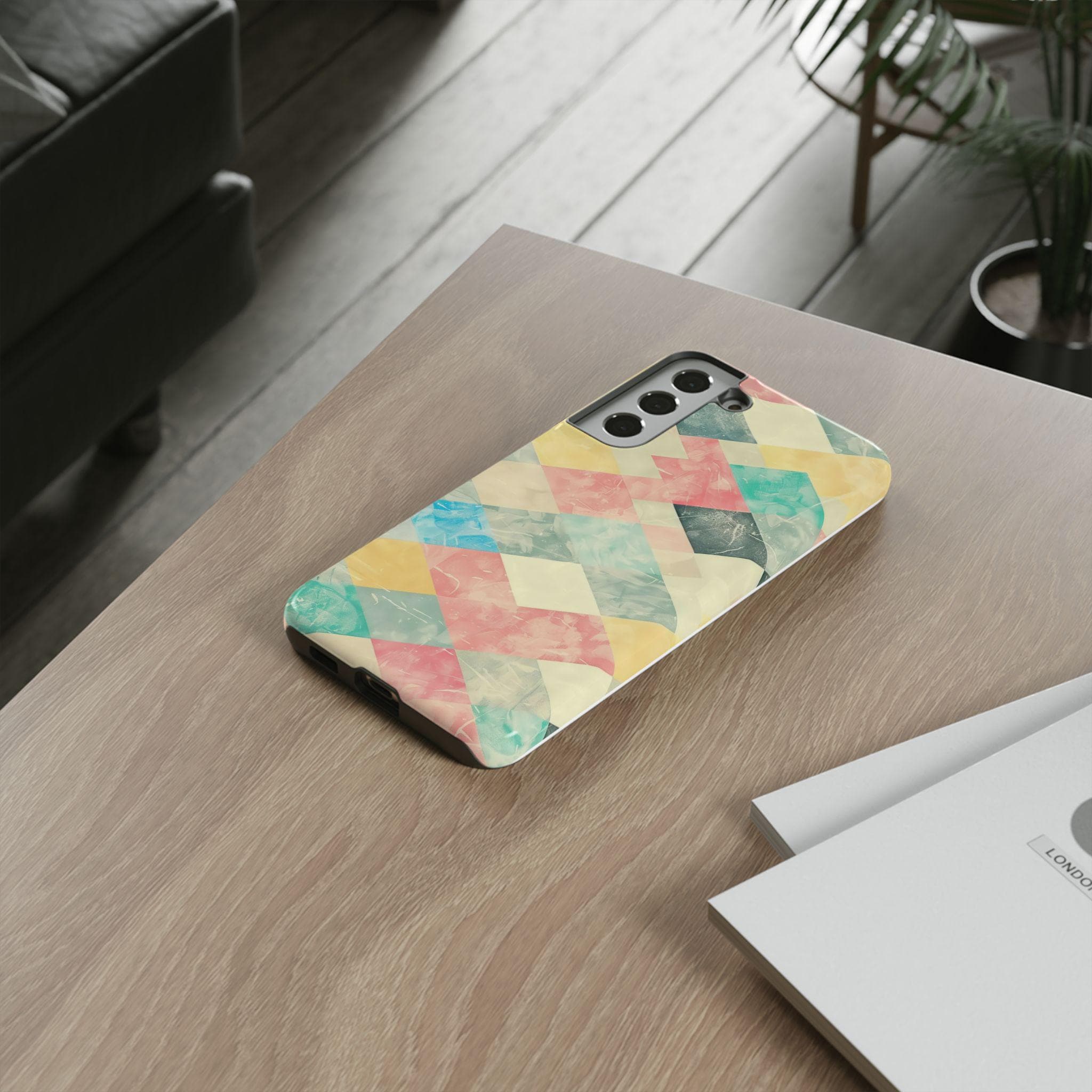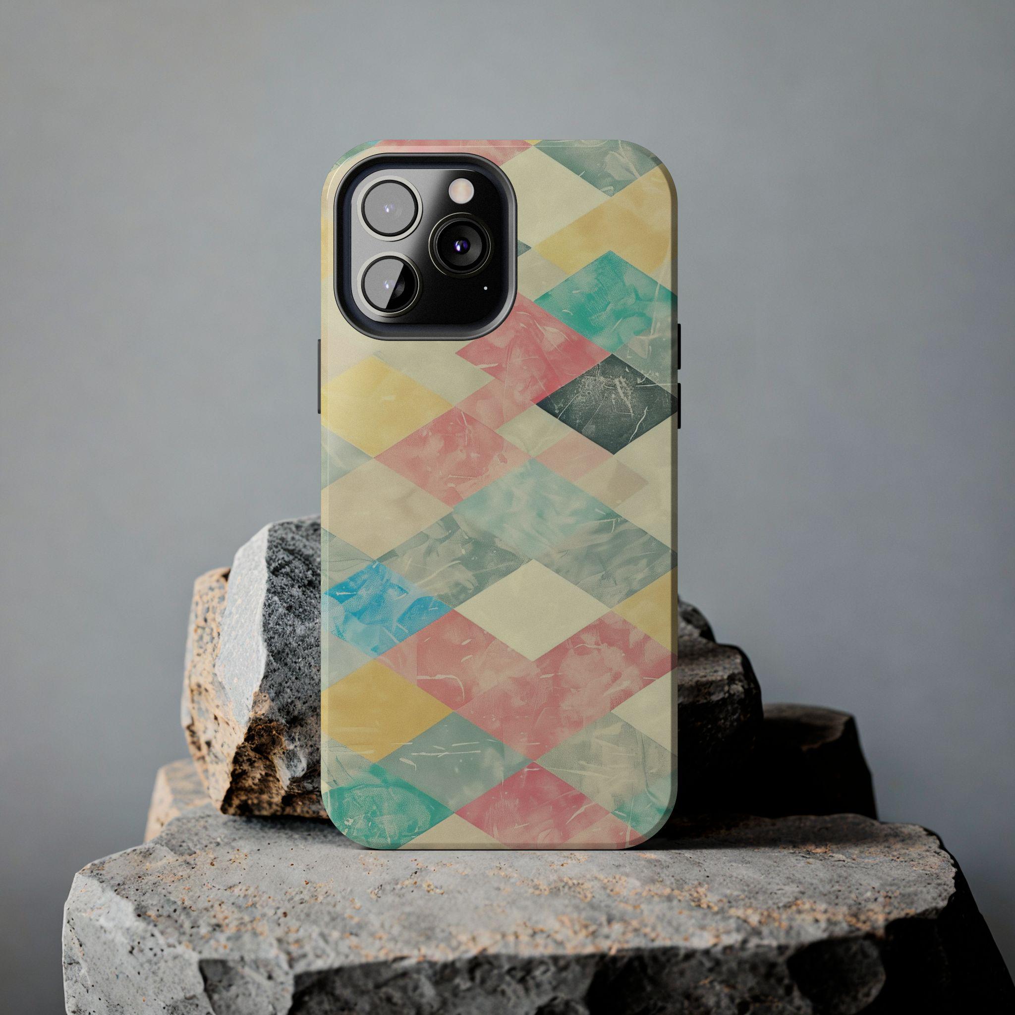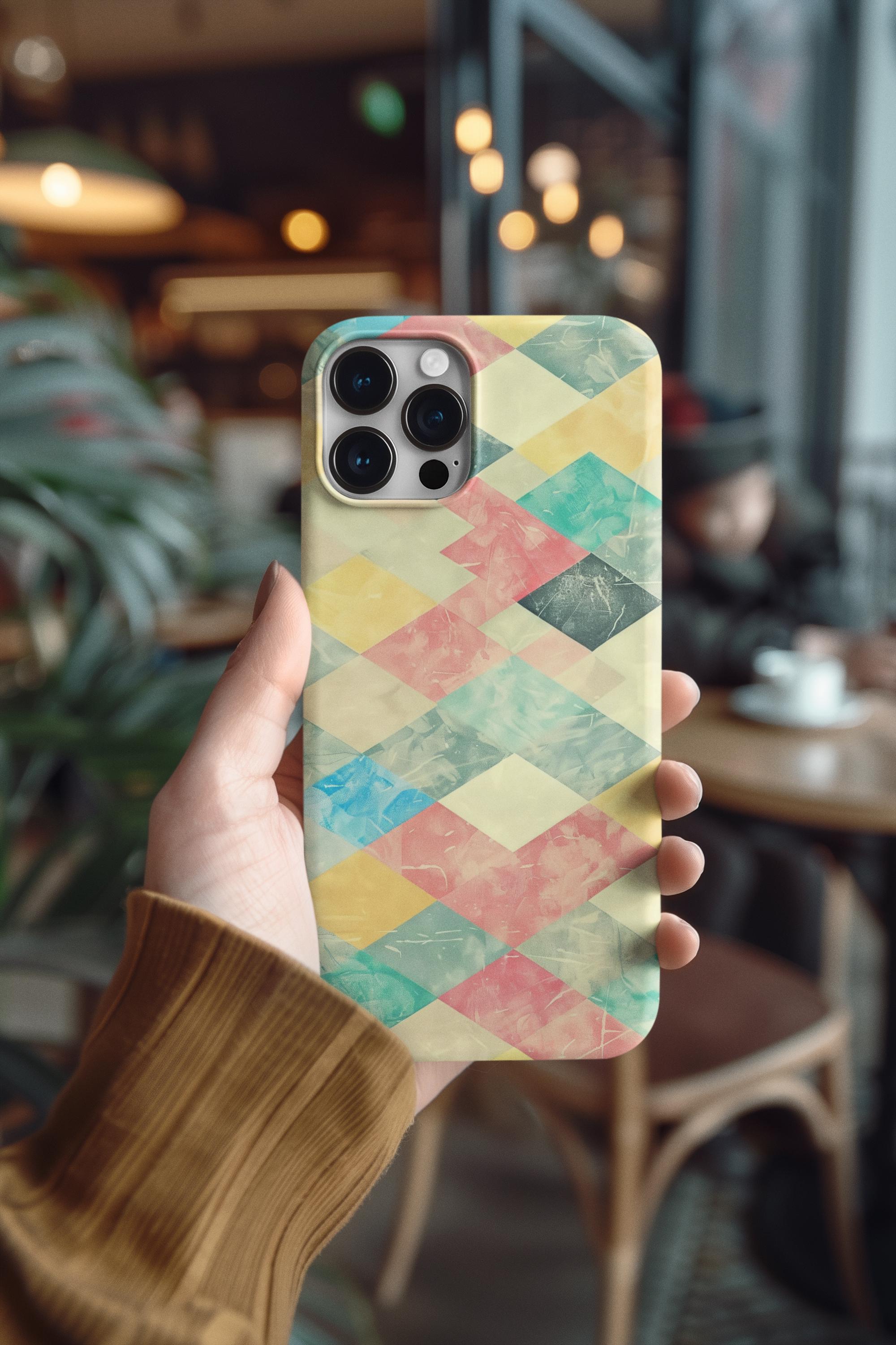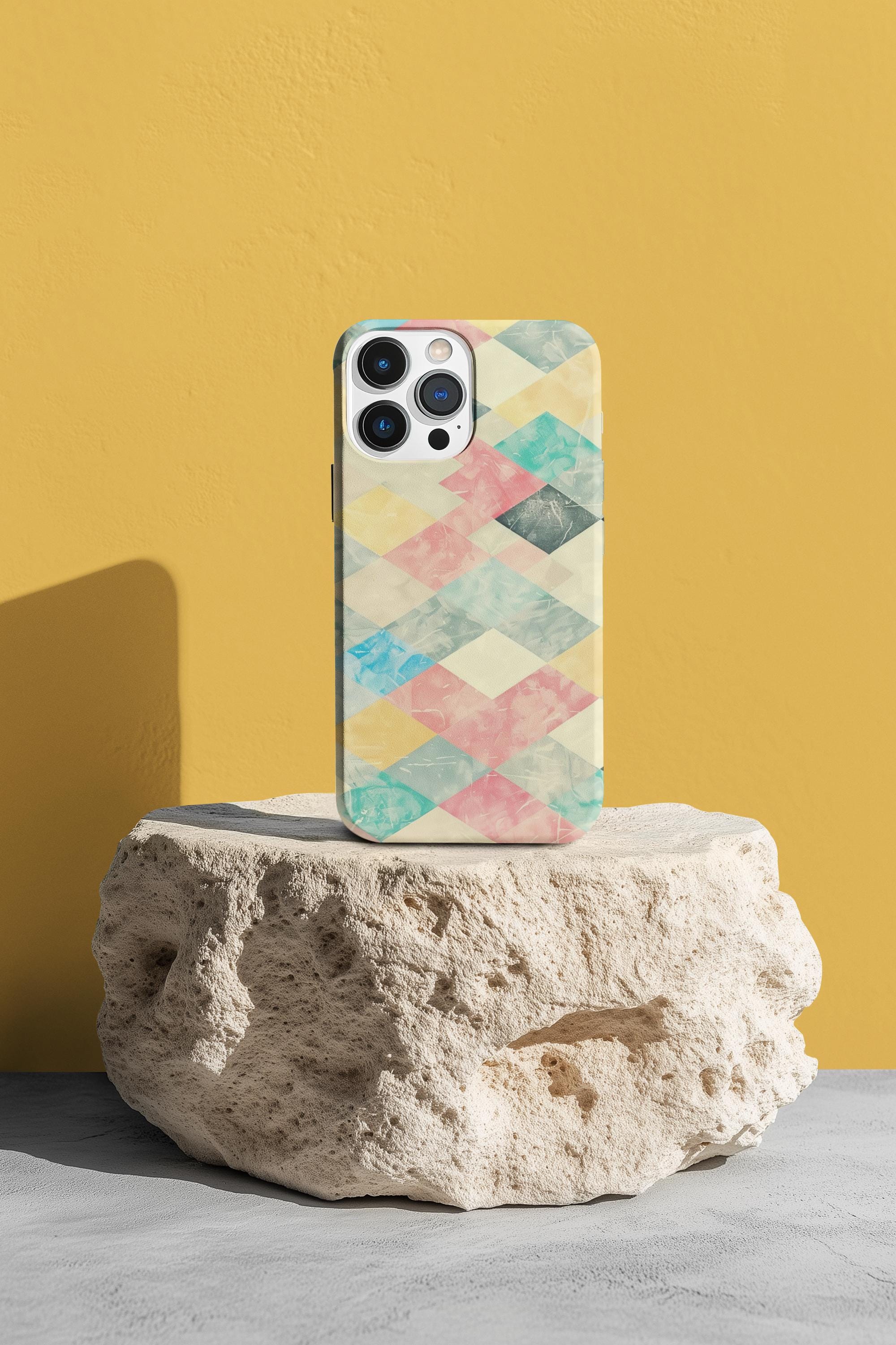 This protective phone case blends vintage baklava geometry with modern abstract art. Soft pastel gradients and marbled veins give each case a lived-in, textured look that feels both retro and fresh. The wraparound design flows across the shell, so the pattern reads seamlessly from edge to edge. It’s designed to sit comfortably in your hand while showing off a composed, artistic aesthetic—great for people who appreciate subtle color stories and tactile detail. The slightly aged finish makes everyday handling feel less precious and more personal; this case looks like it’s already part of your life the moment you put it on your phone.