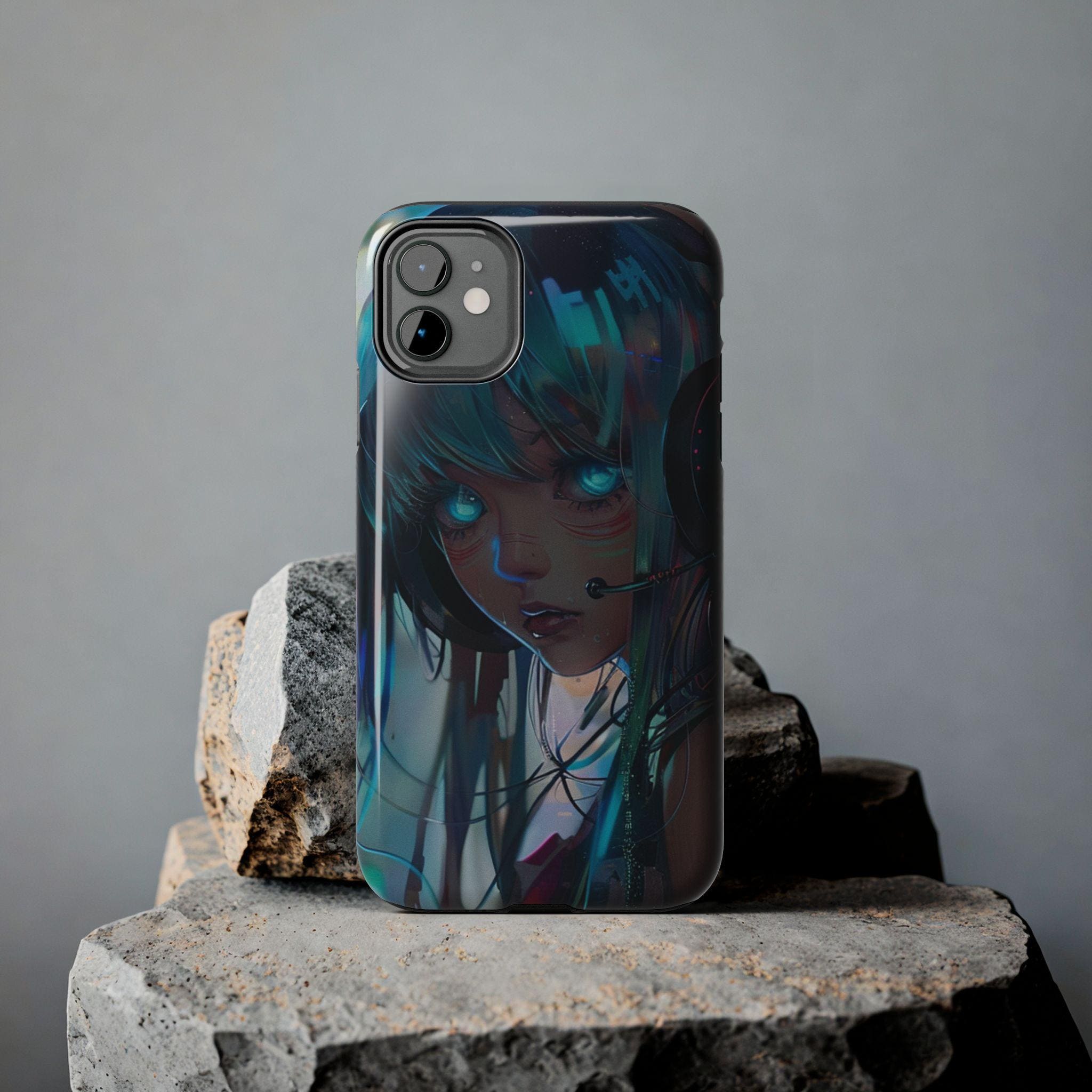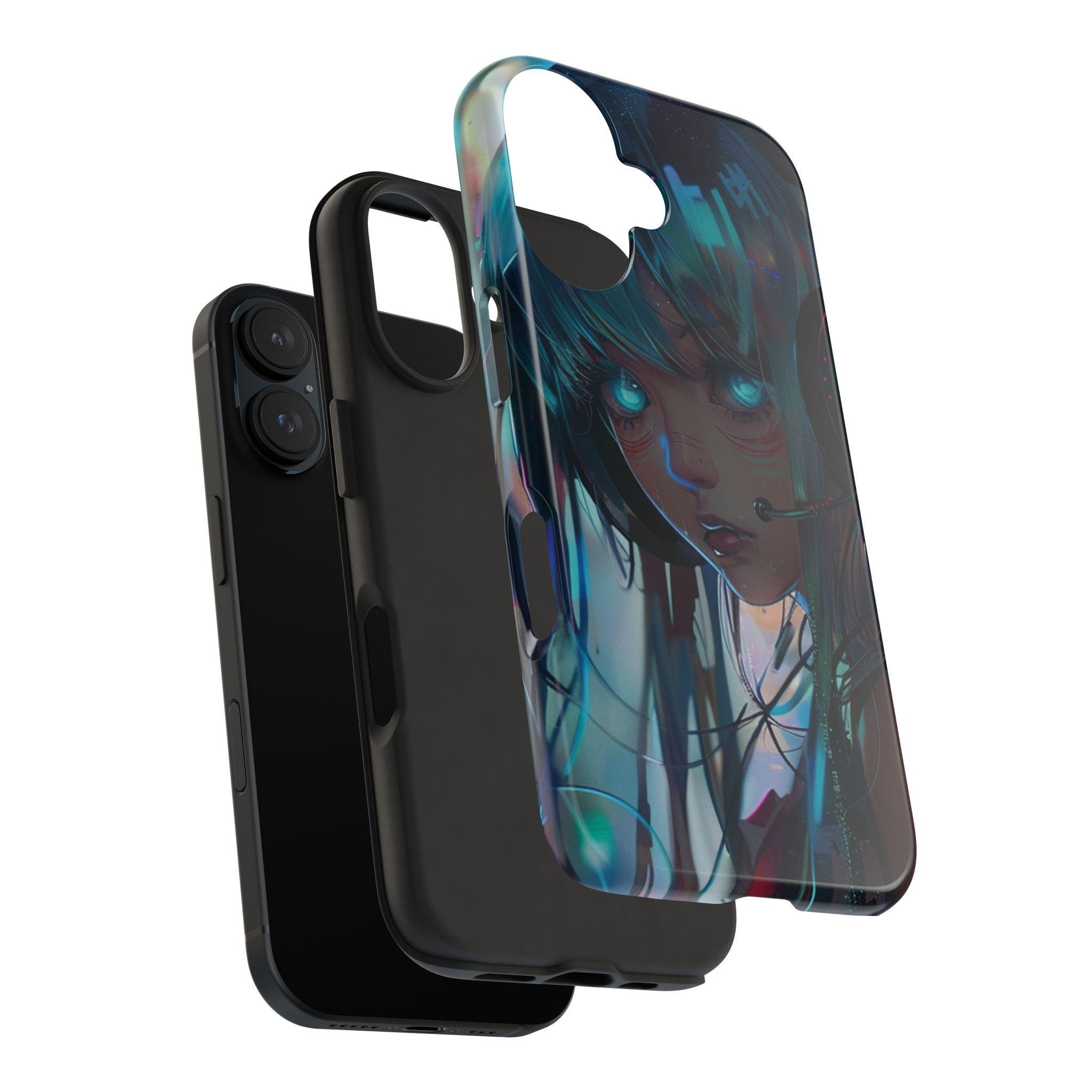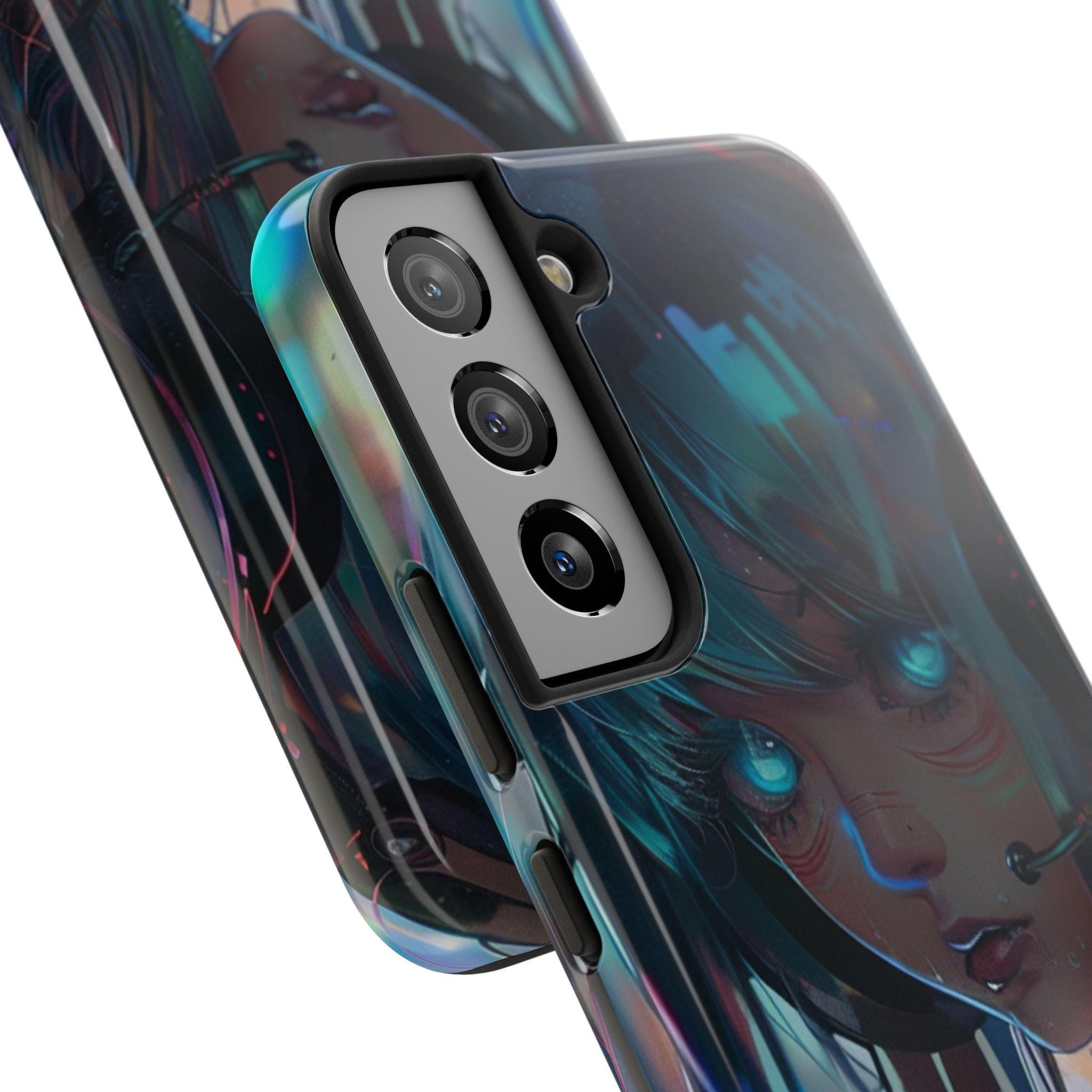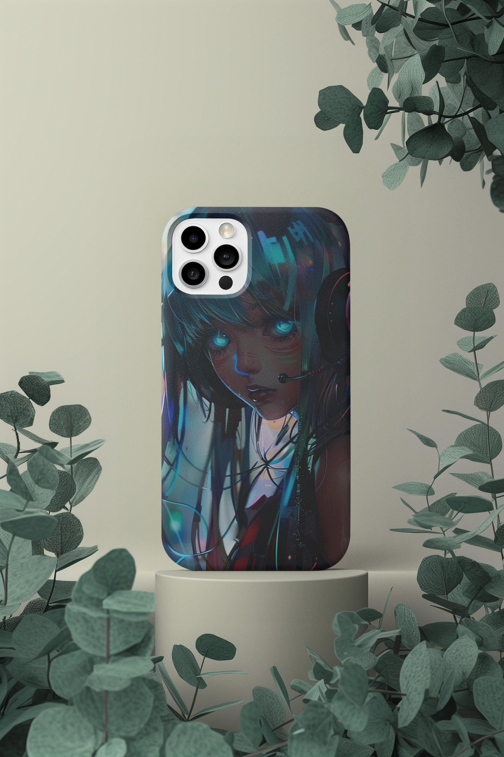 Cyberpunk Anime Glowing Eyes Phone Case | Digital Portrait, Wet Effect