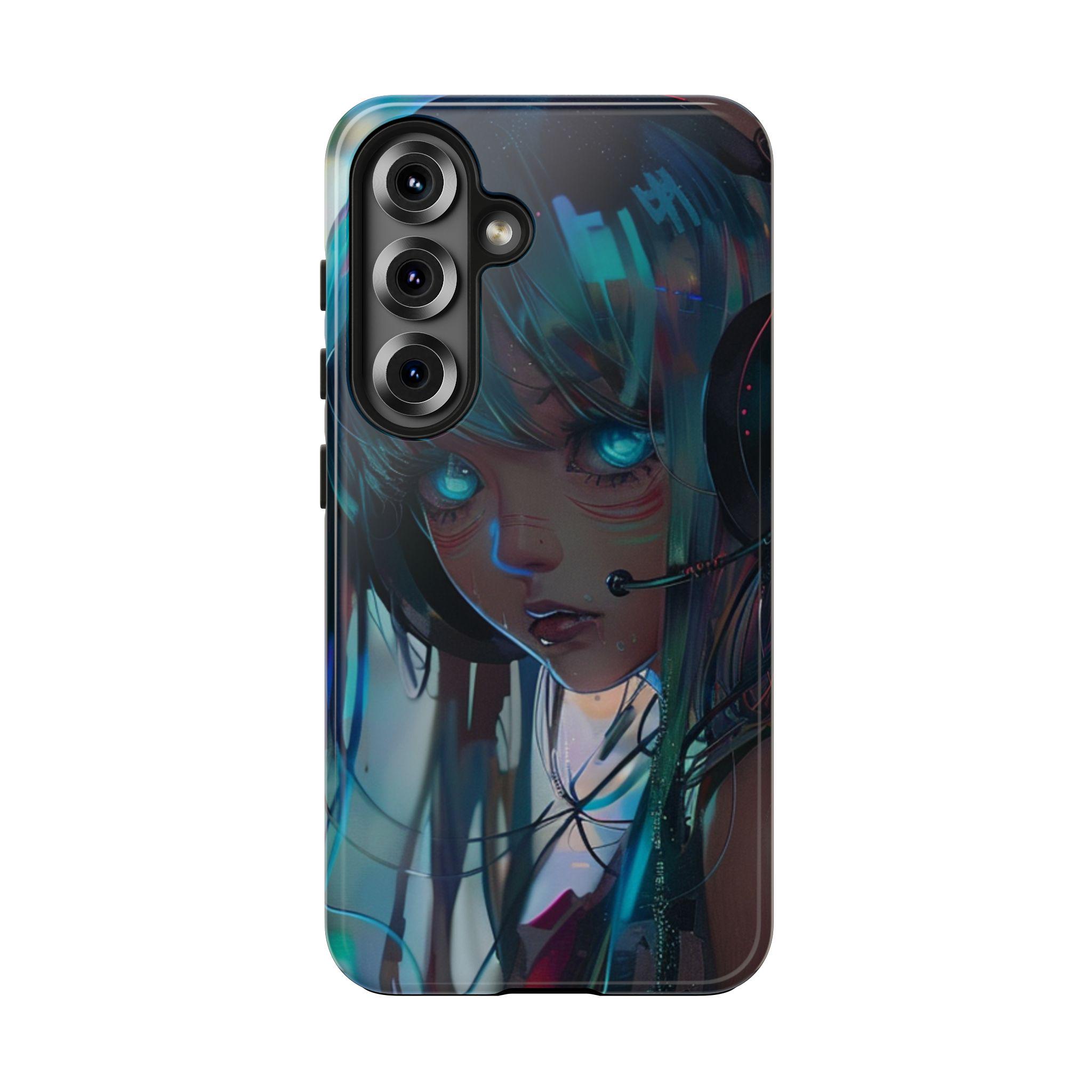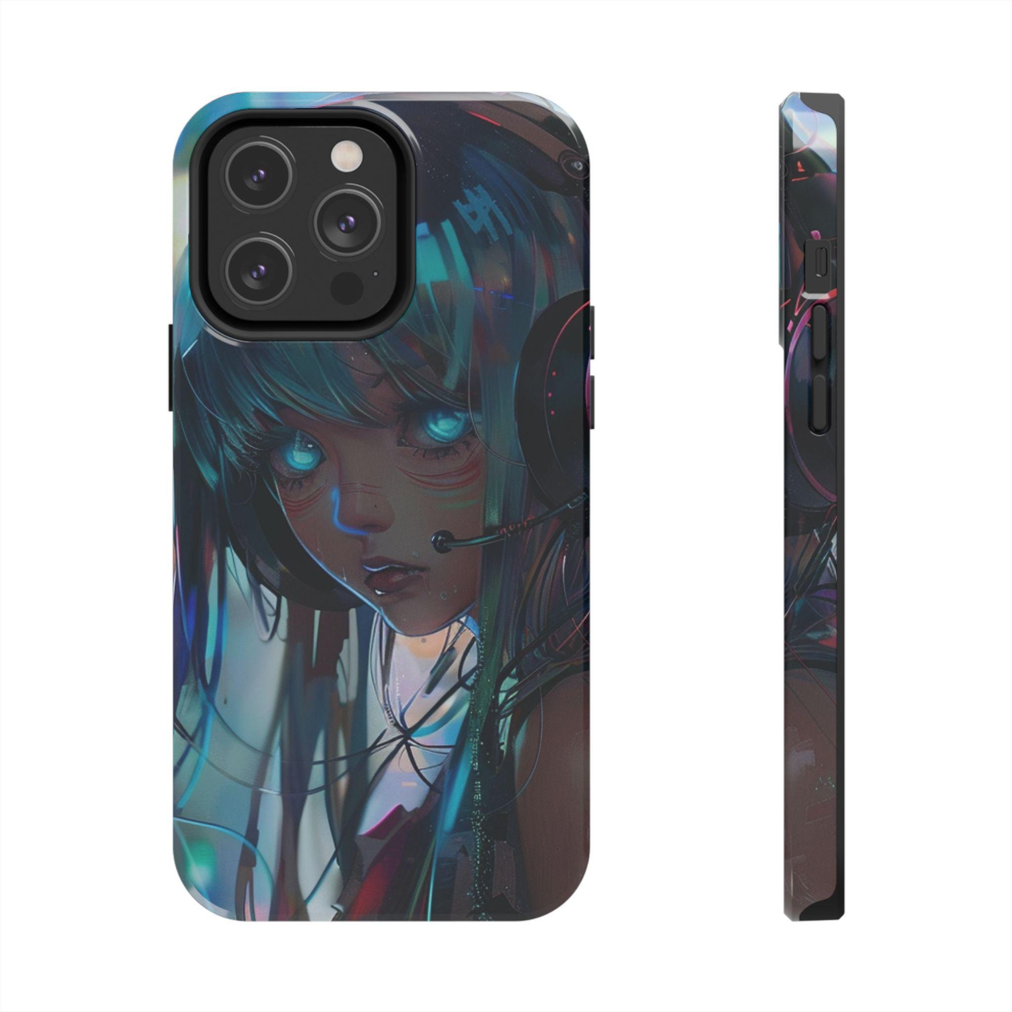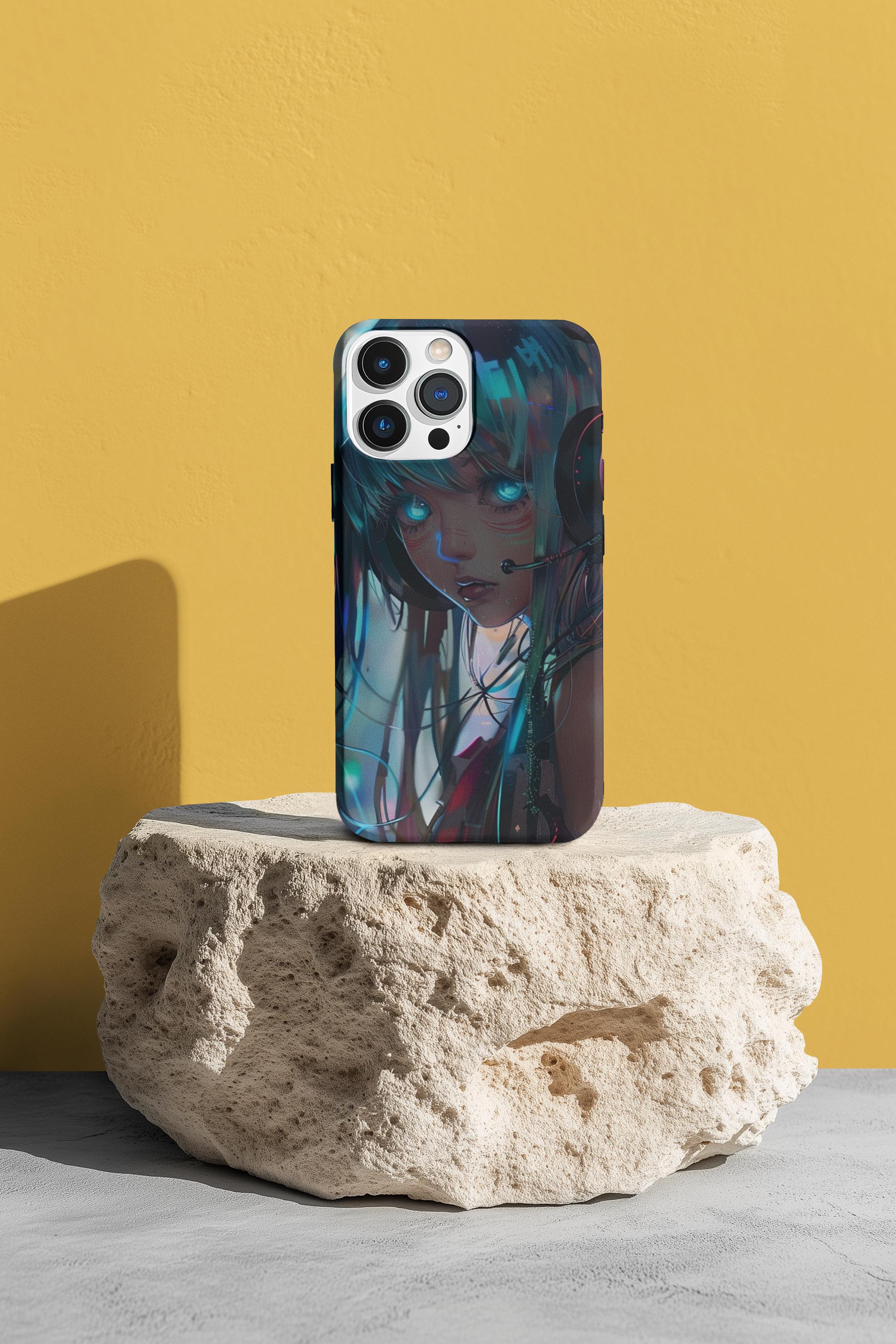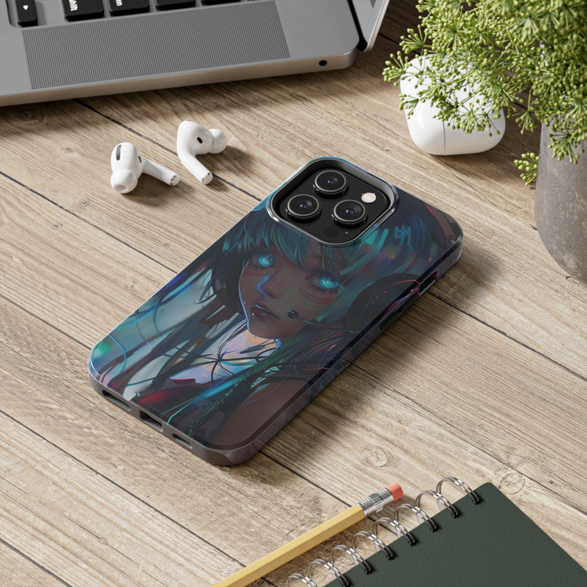 Neon Dreams: Futuristic Cyberpunk Anime Portrait Case
