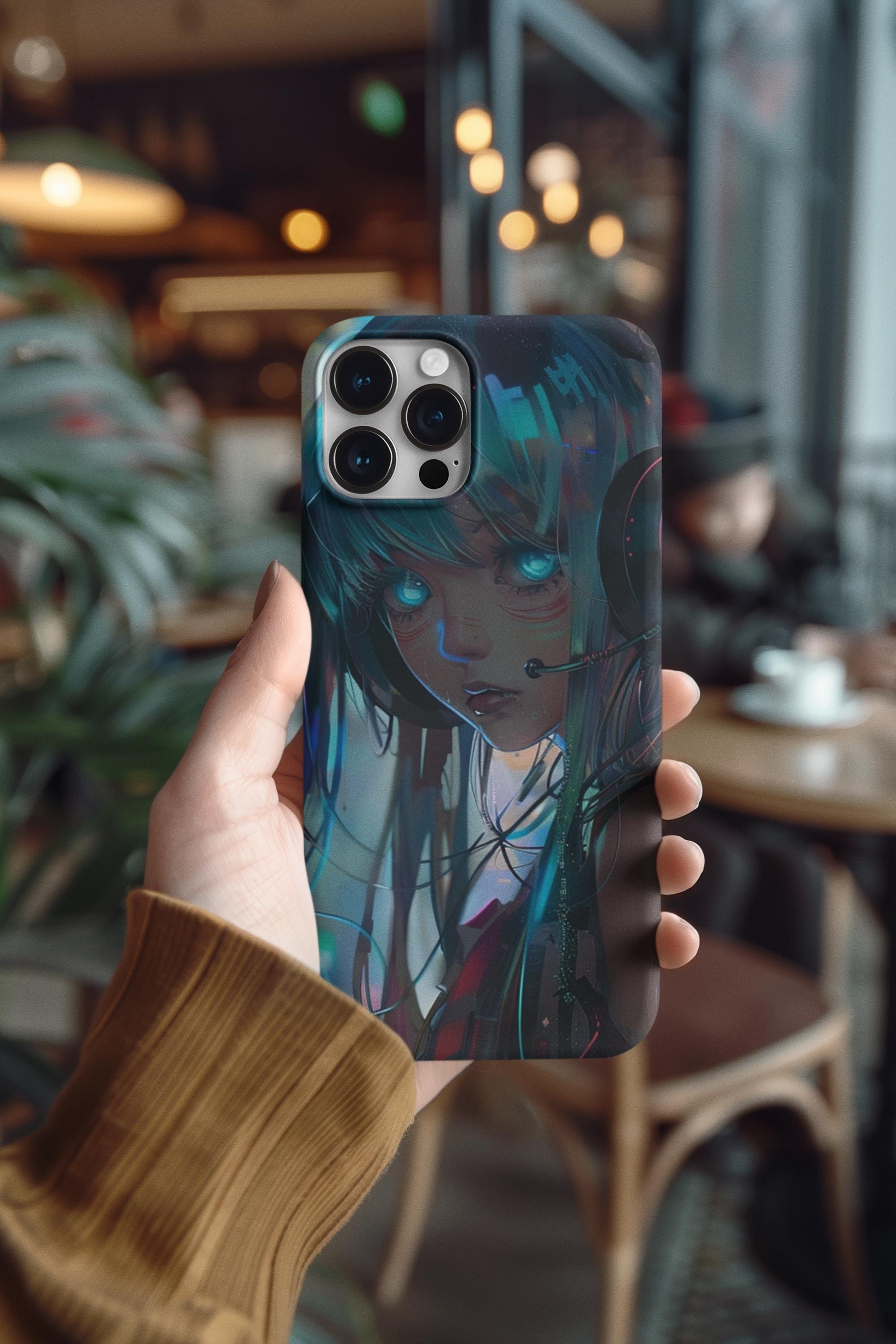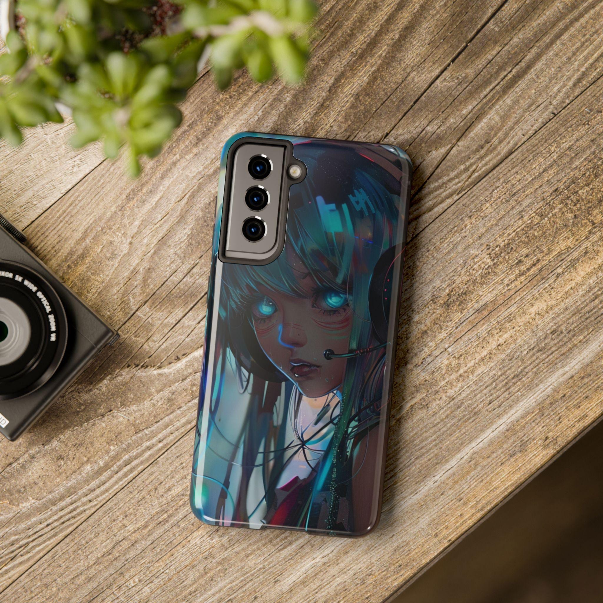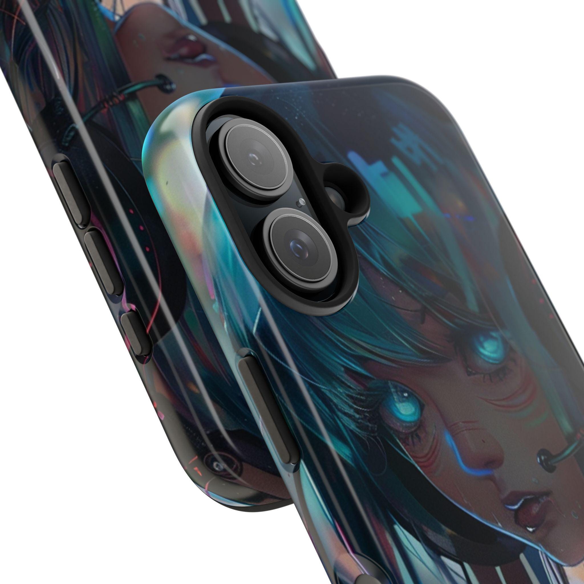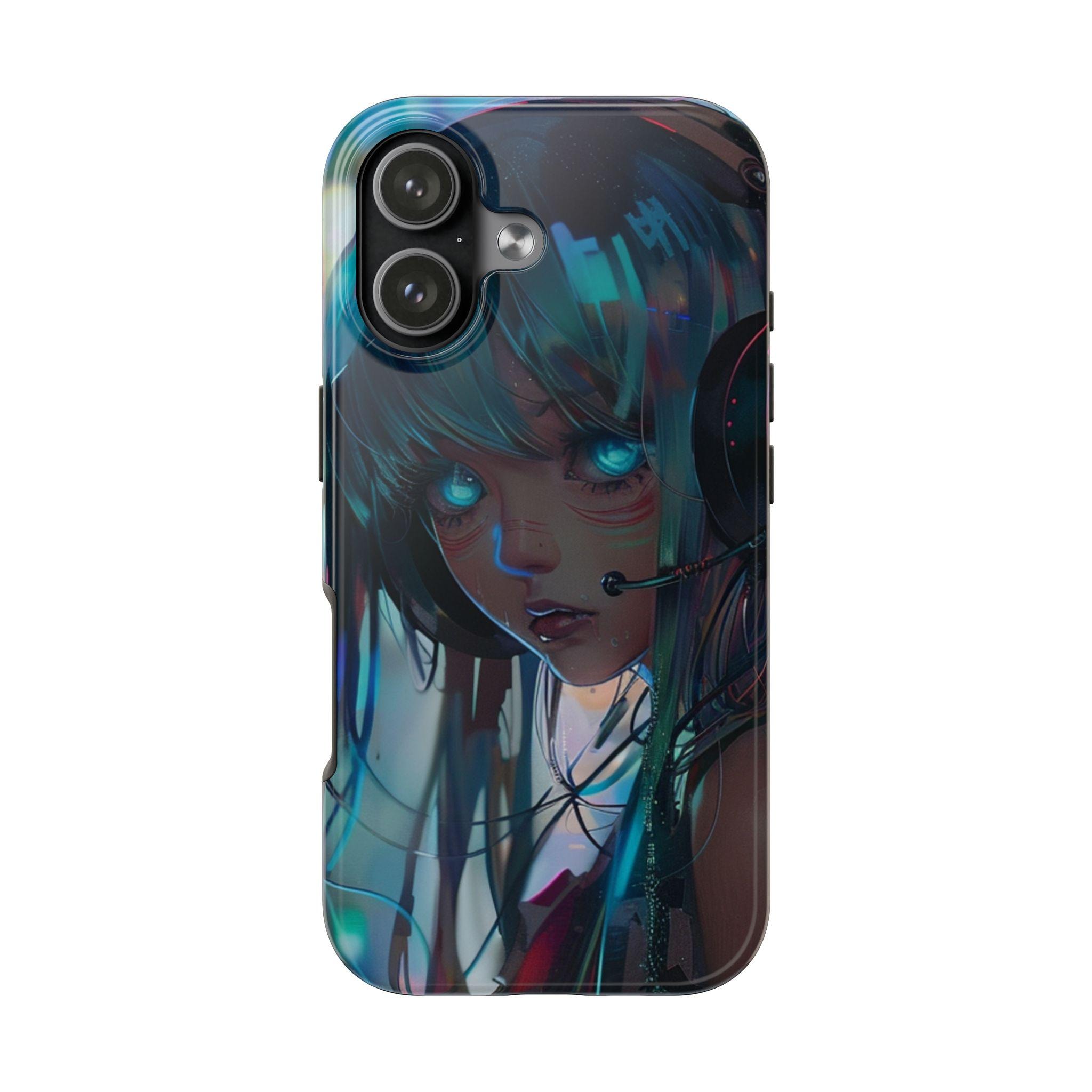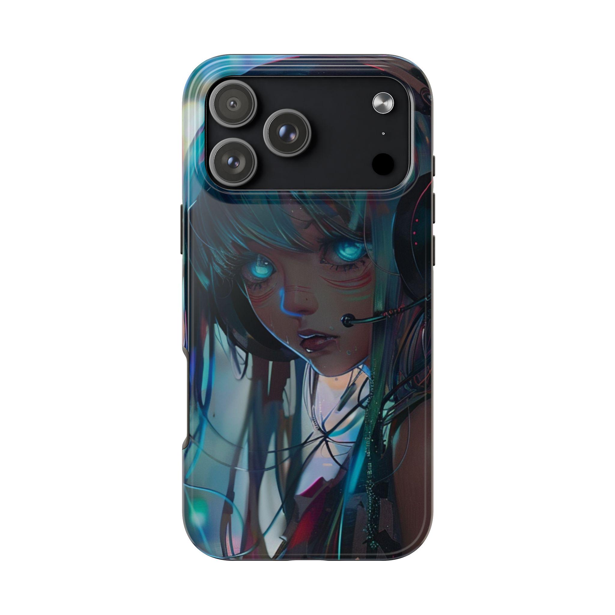 Neon Dreams: Futuristic Cyberpunk Anime Portrait Case