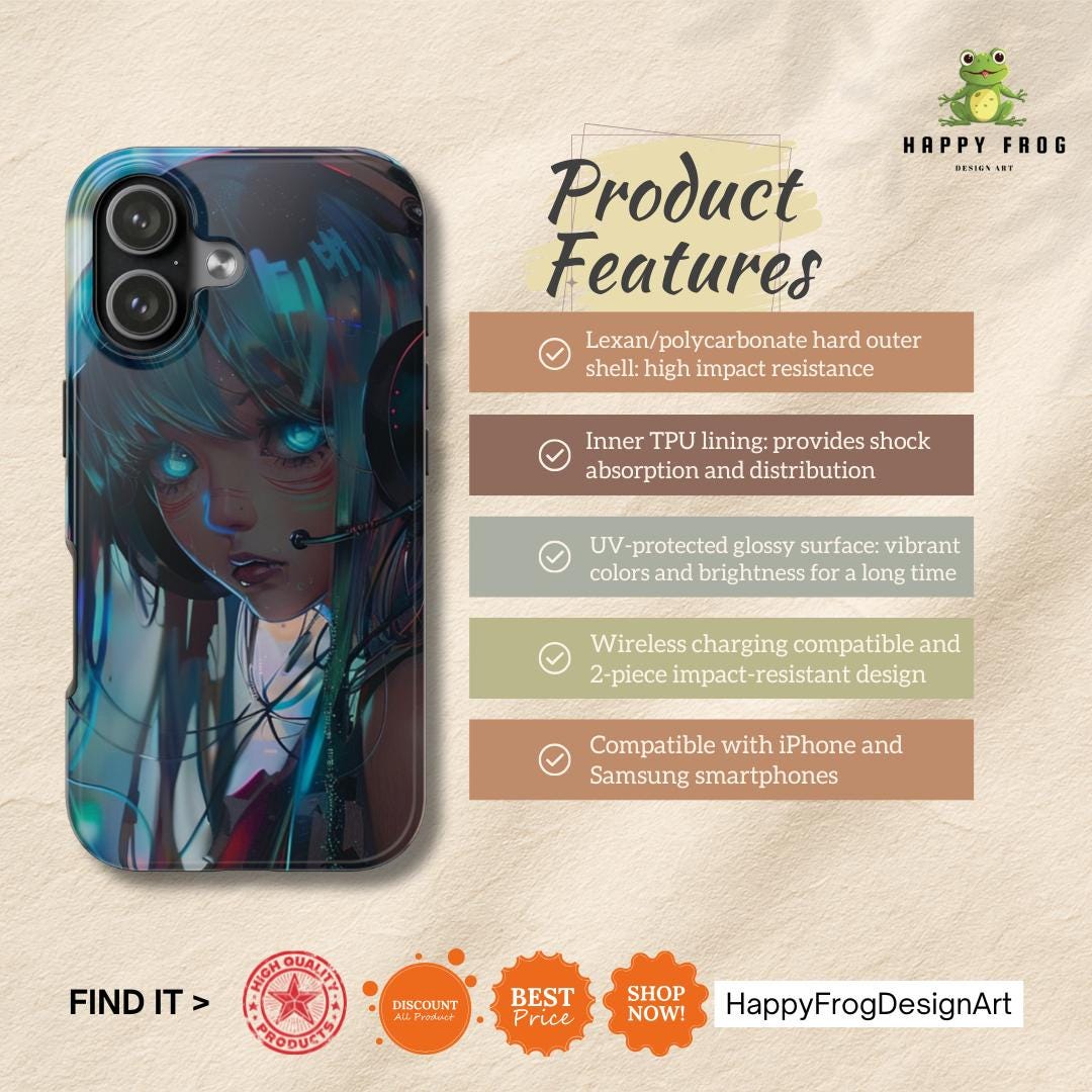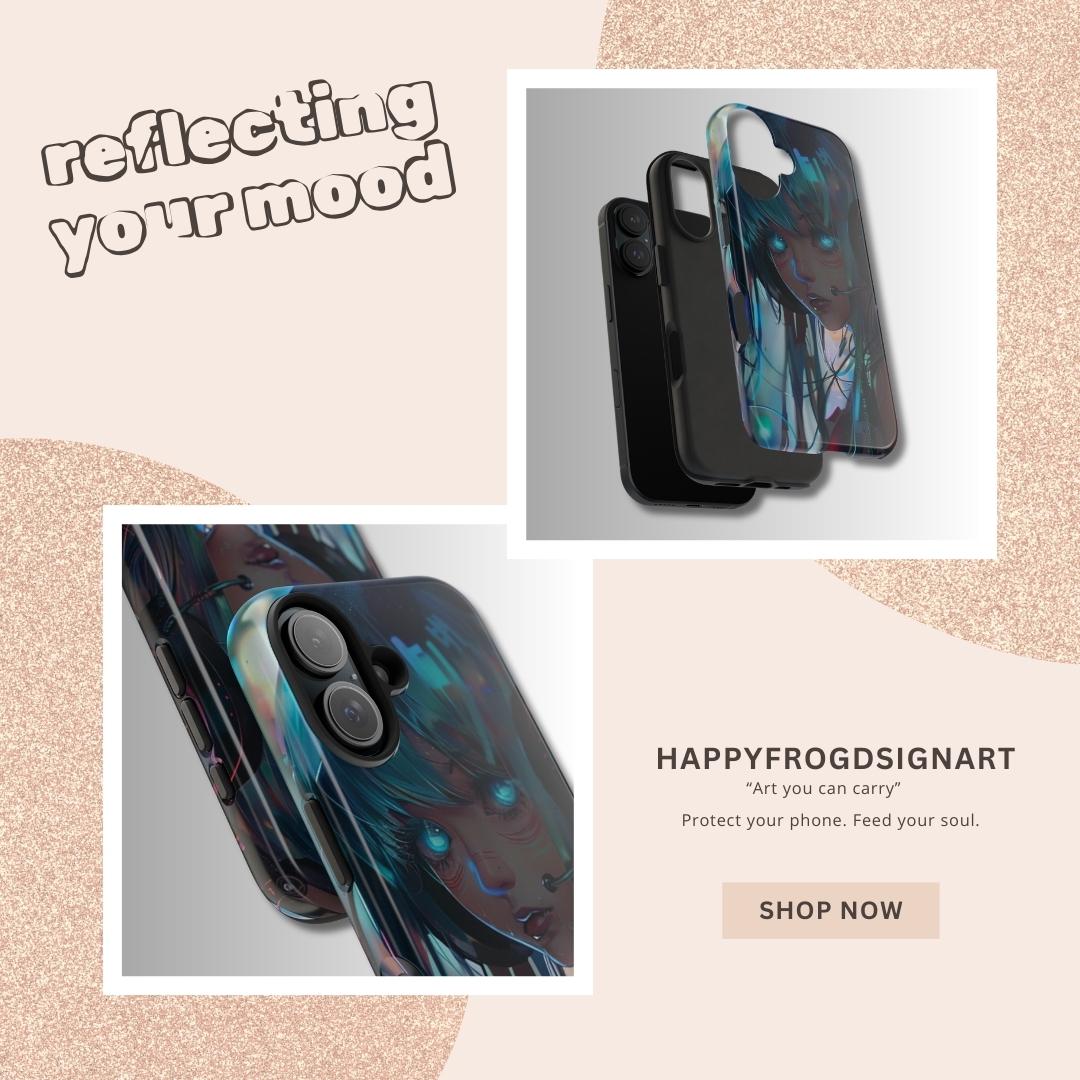 Step into the future with HappyFrogDesignArt. Our latest series blends the raw emotion of anime with the electric energy of a cyberpunk metropolis. Whether you're a gamer, an anime lover, or a fan of futuristic aesthetics, these high-contrast cases are designed to make your phone a piece of digital art.