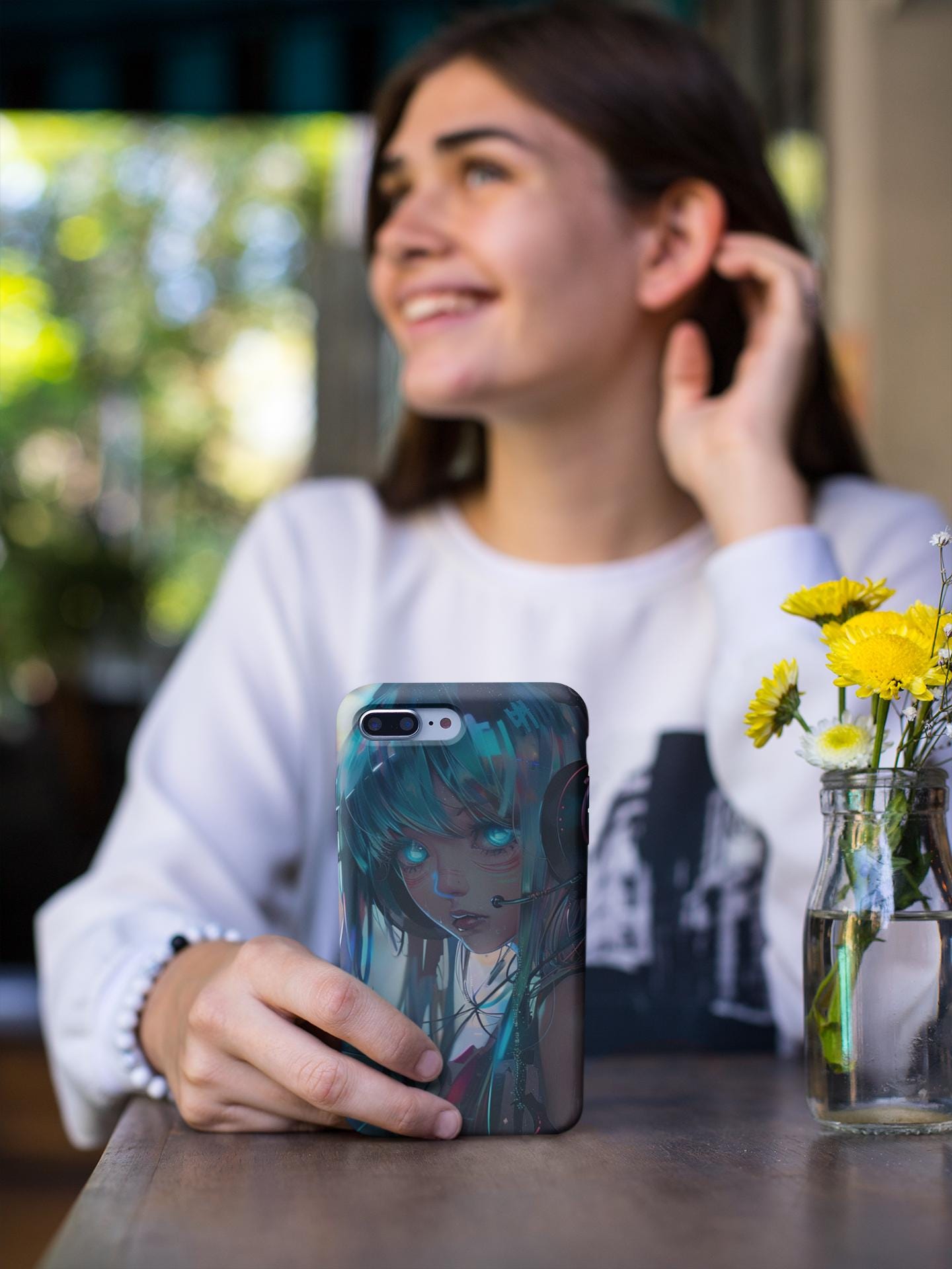 A phone case with neon eyes that stare directly, carrying the spirit of cyberpunk anime. Bright, wet-effect digital portraits shimmer against the city lights at night; conveying energy and emotion with every touch. The hard outer shell deflects impacts while the flexible TPU lining absorbs shocks. The lay-flat bezel protects the screen and the UV-resistant glossy surface ensures vibrant colors in street photos. Your phone is no longer just an accessory, but a character telling the story of the night.