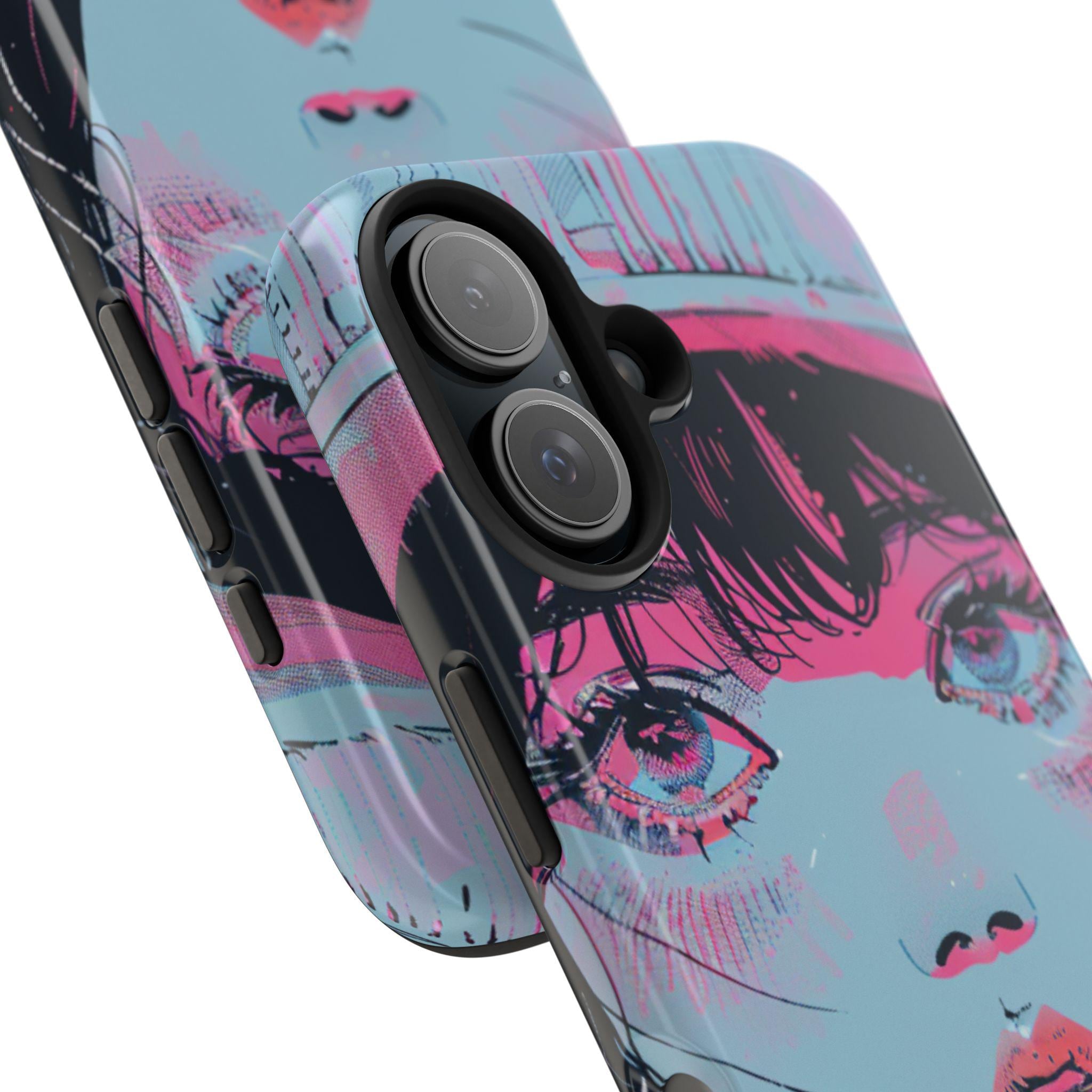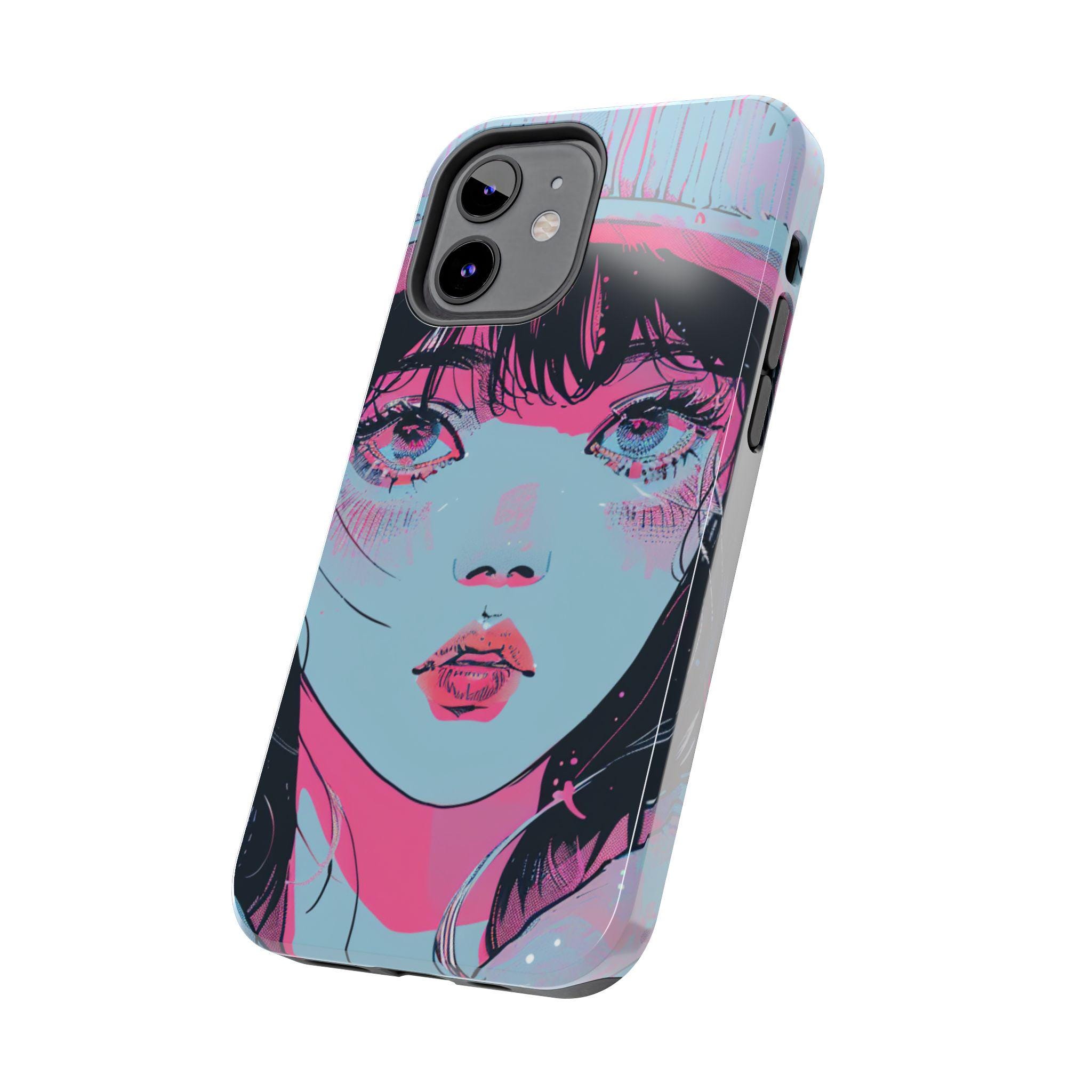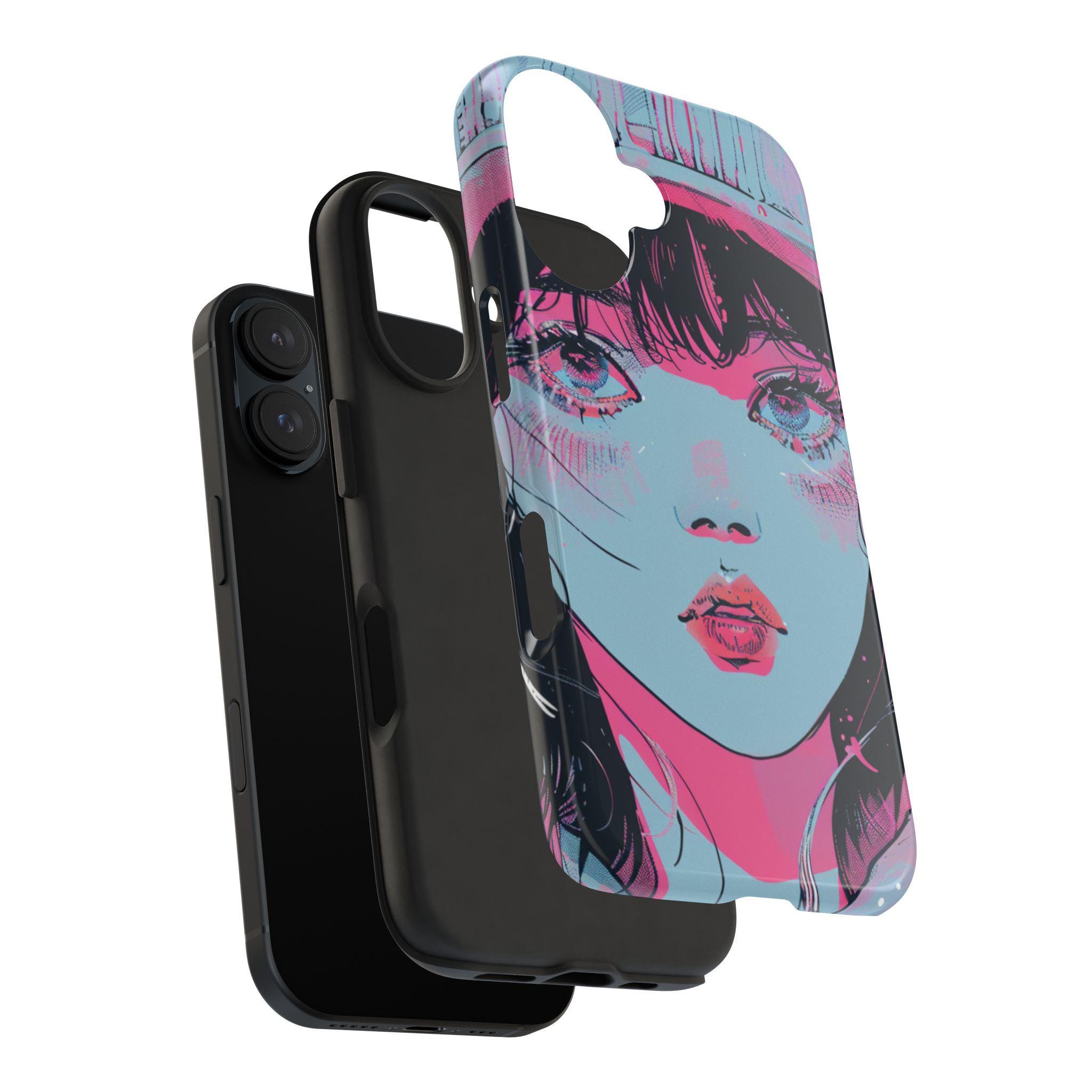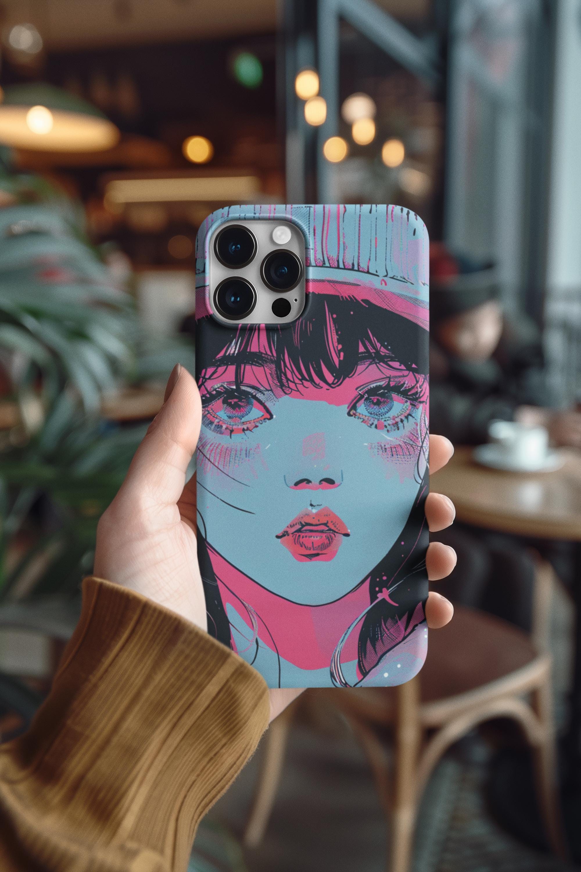 This sturdy phone case wears bold, sketchy brushstrokes like an attitude. The retro-anime portrait—rendered in aqua, neon pink, and black—feels both nostalgic and electric, a handheld piece of graphic art that catches the eye without shouting. The two-piece shell hugs the phone while the flexible rubber liner soaks up shocks, and the lay-flat bezel keeps the screen safe from everyday scuffs. Weather-resistant UV protection keeps the colors vivid, and the glossy finish deepens the neon contrast for a striking, gallery-ready look. For people who treat their phone as an extension of personal style, this case blends art and armor in one confident package.