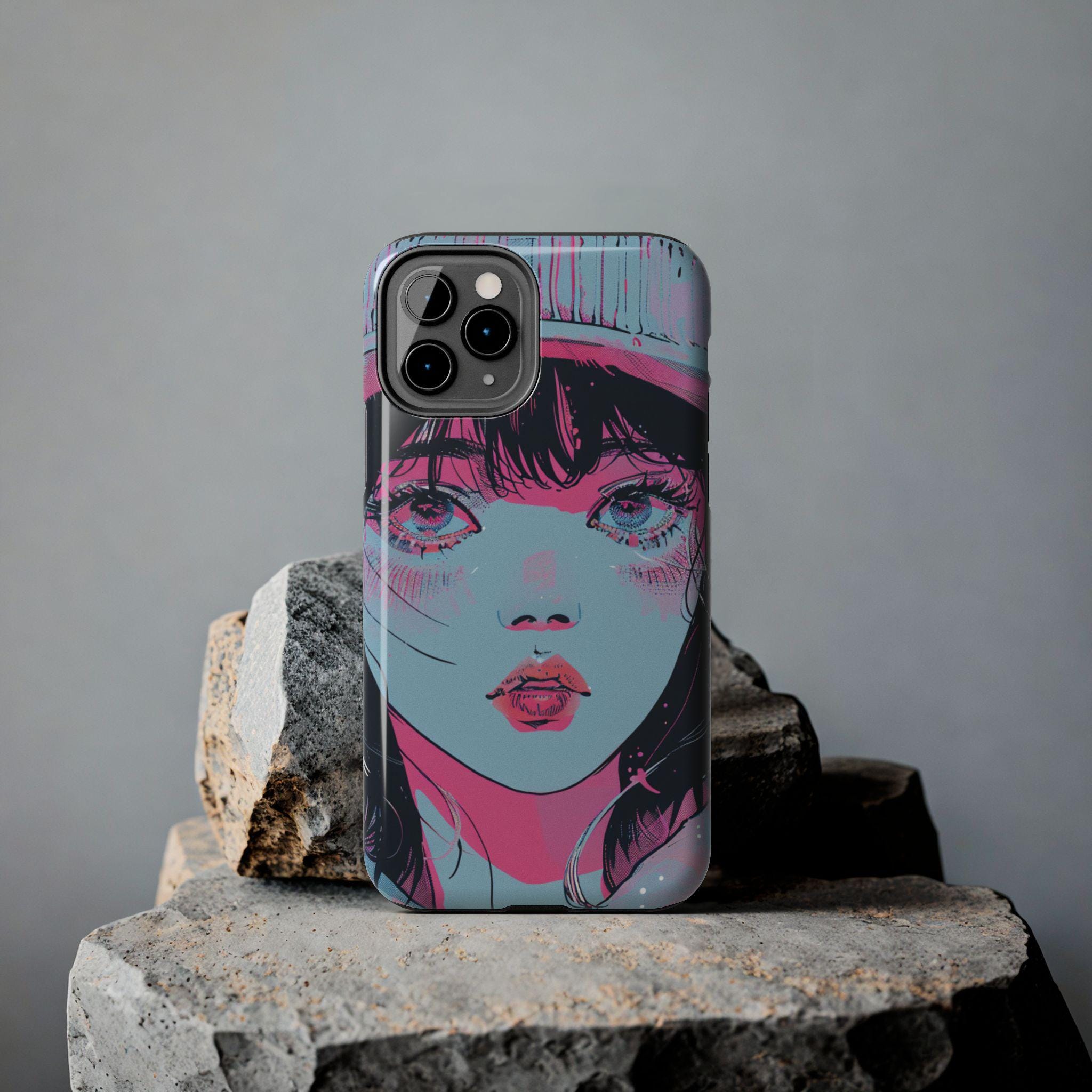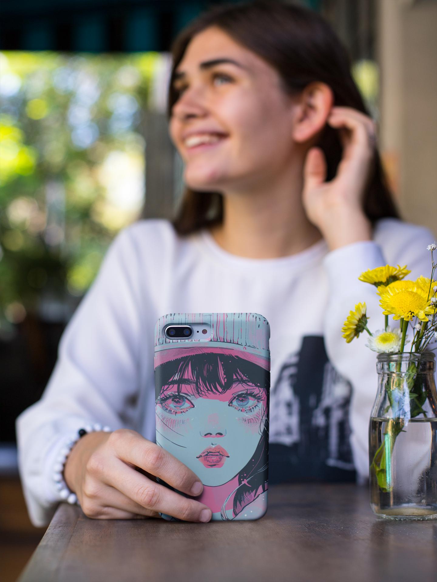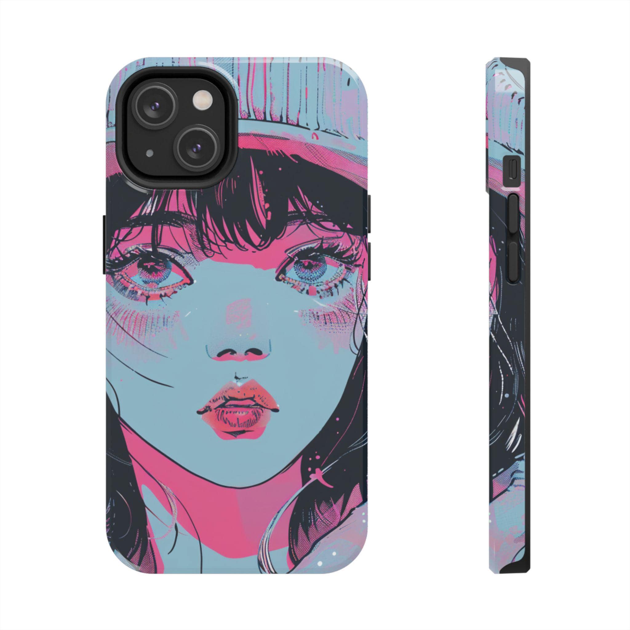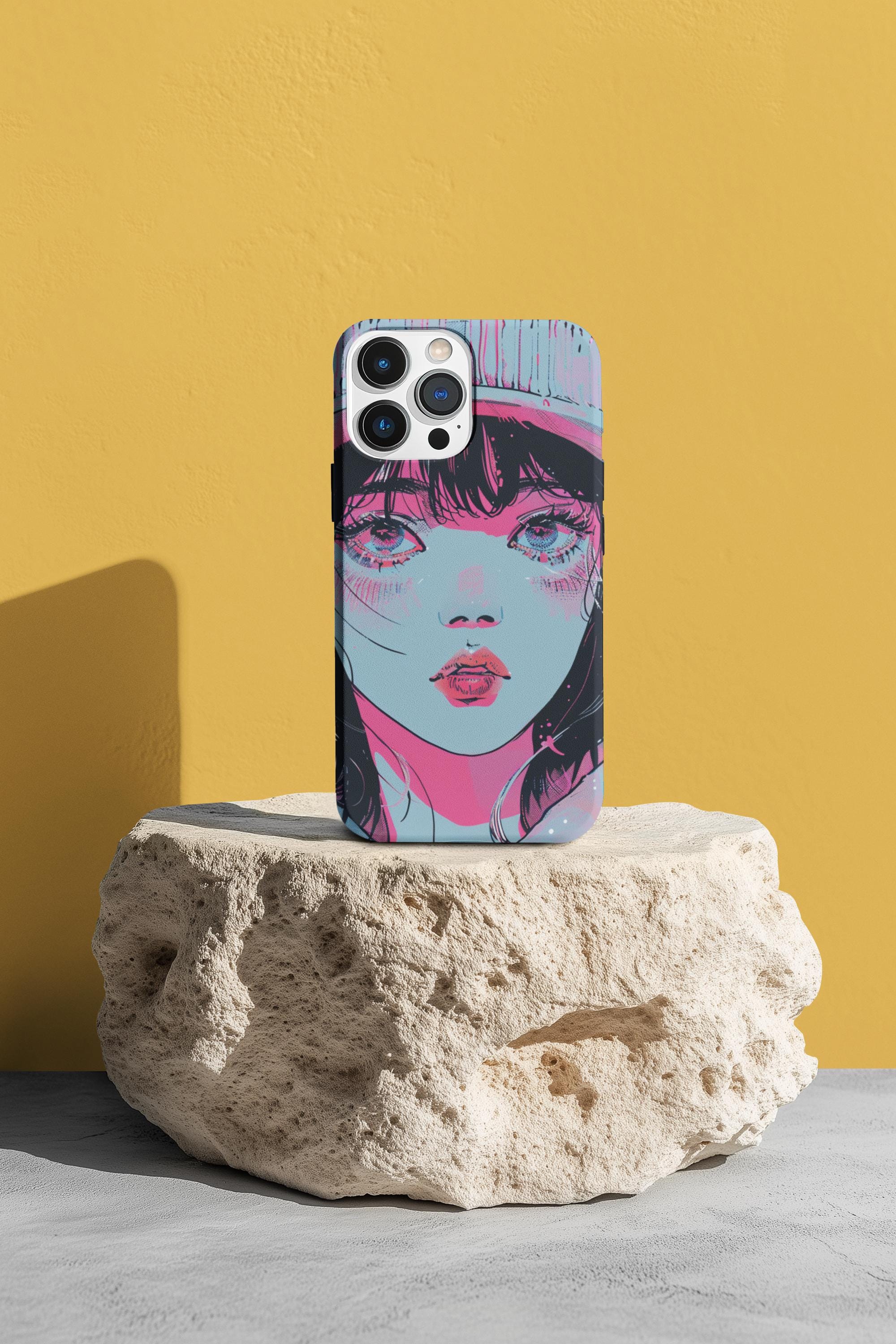 This sturdy phone case wears bold, sketchy brushstrokes like an attitude. The retro-anime portrait—rendered in aqua, neon pink, and black—feels both nostalgic and electric, a handheld piece of graphic art that catches the eye without shouting. The two-piece shell hugs the phone while the flexible rubber liner soaks up shocks, and the lay-flat bezel keeps the screen safe from everyday scuffs. Weather-resistant UV protection keeps the colors vivid, and the glossy finish deepens the neon contrast for a striking, gallery-ready look. For people who treat their phone as an extension of personal style, this case blends art and armor in one confident package.