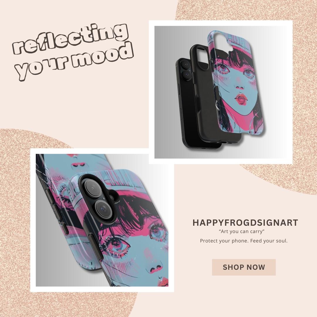 Make a statement with a touch of retro-modern flair. This exclusive HappyFrogDesignArt creation features a striking graphic portrait that blends classic manga sketches with bold, pop-art colors. It’s chic, it’s edgy, and it’s the perfect art piece for your daily tech.