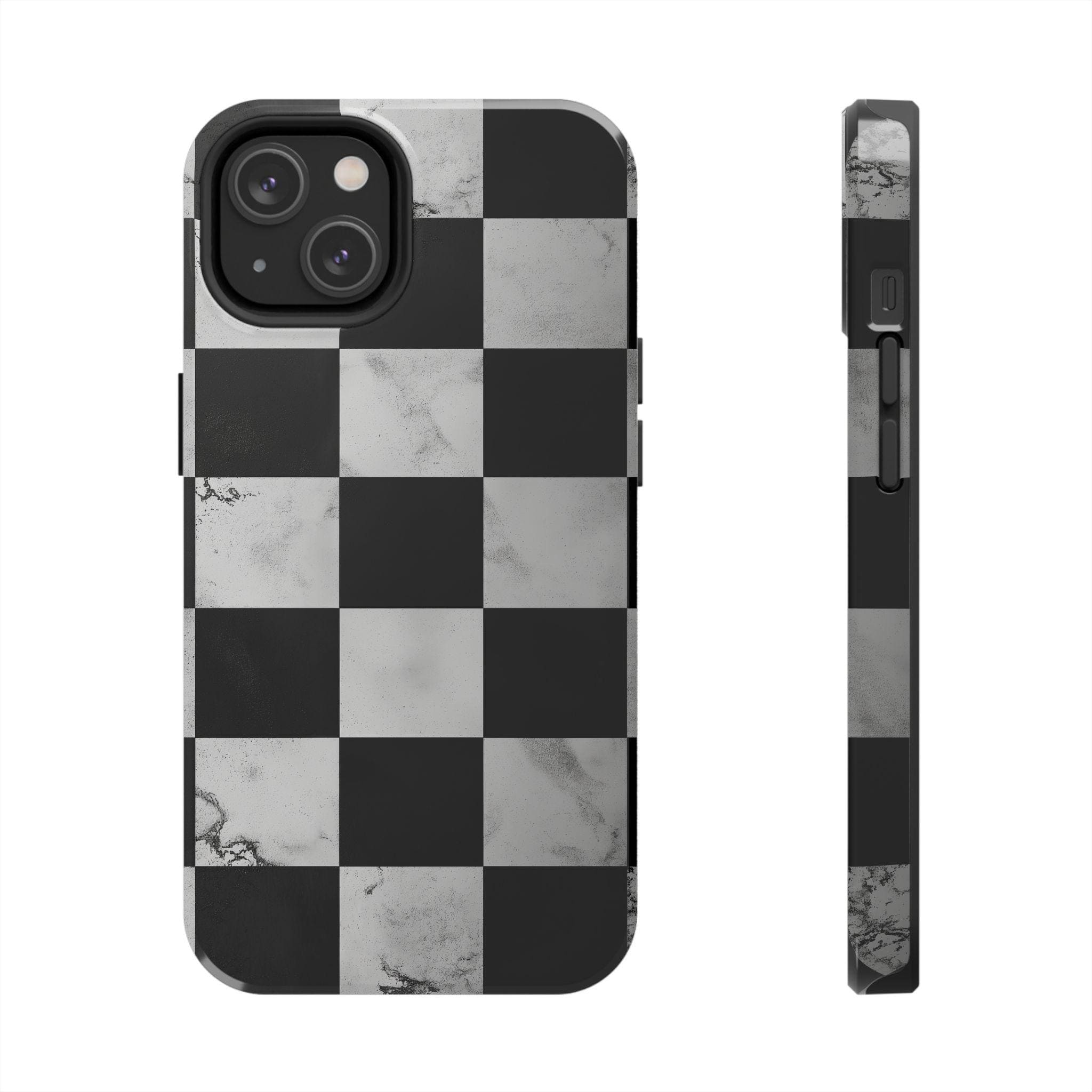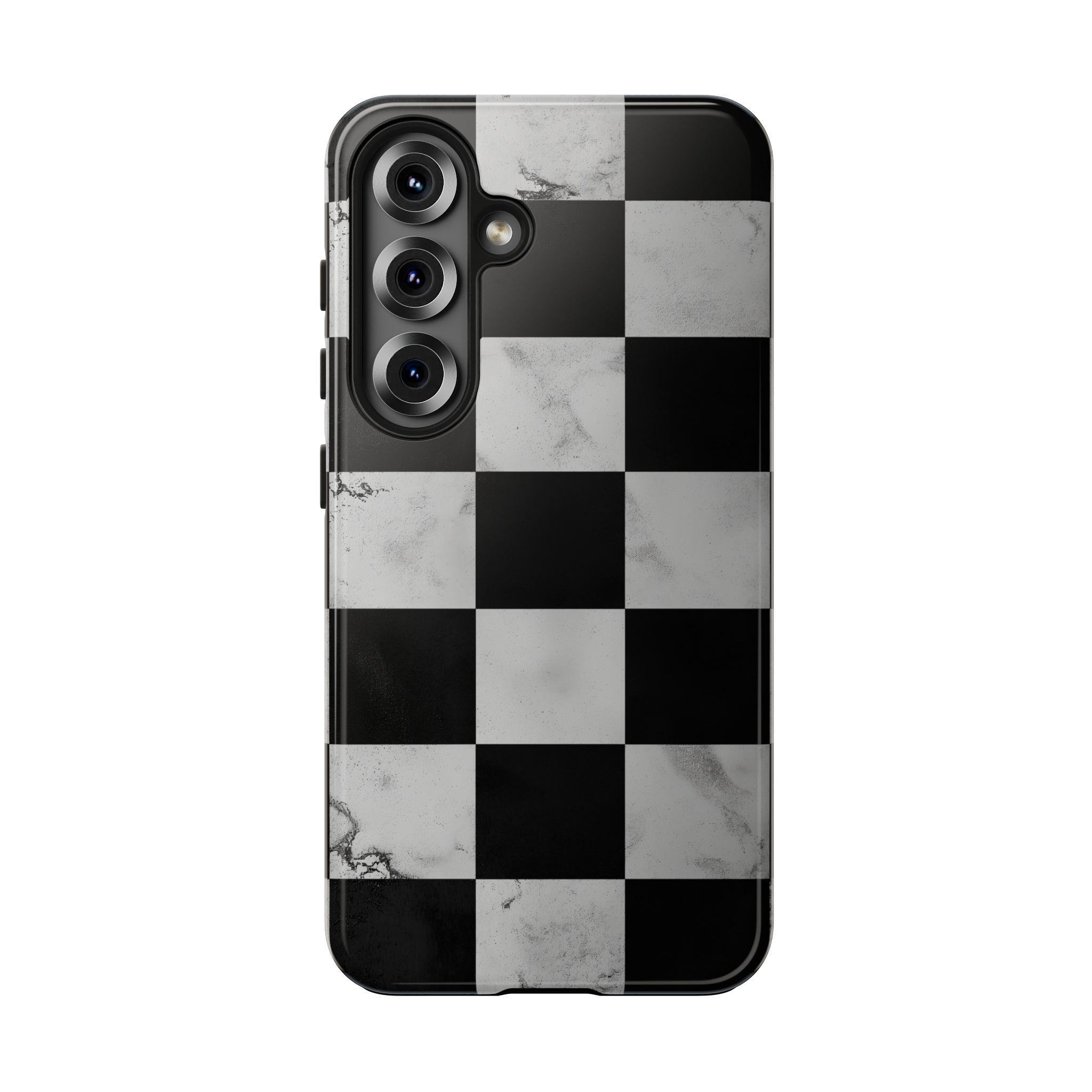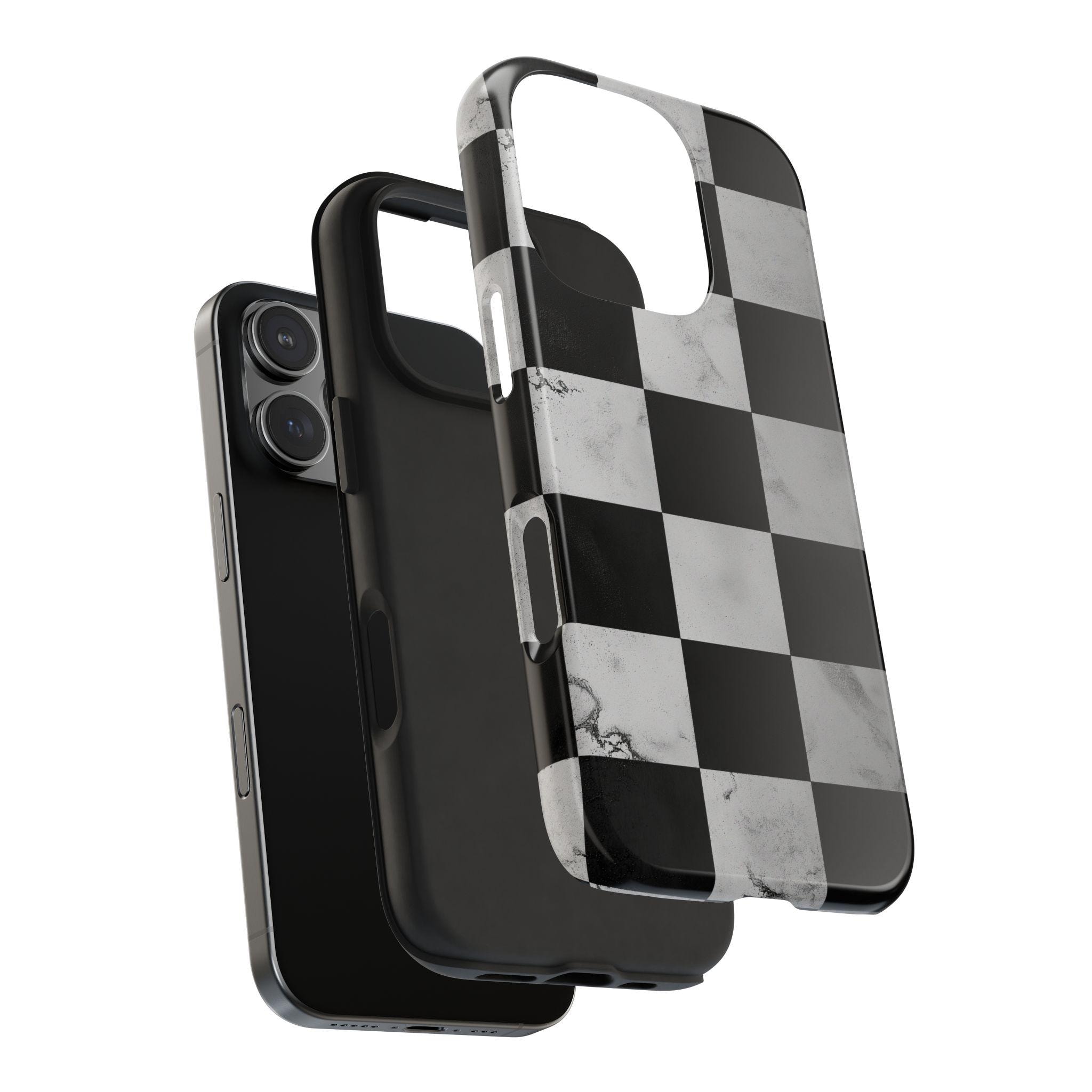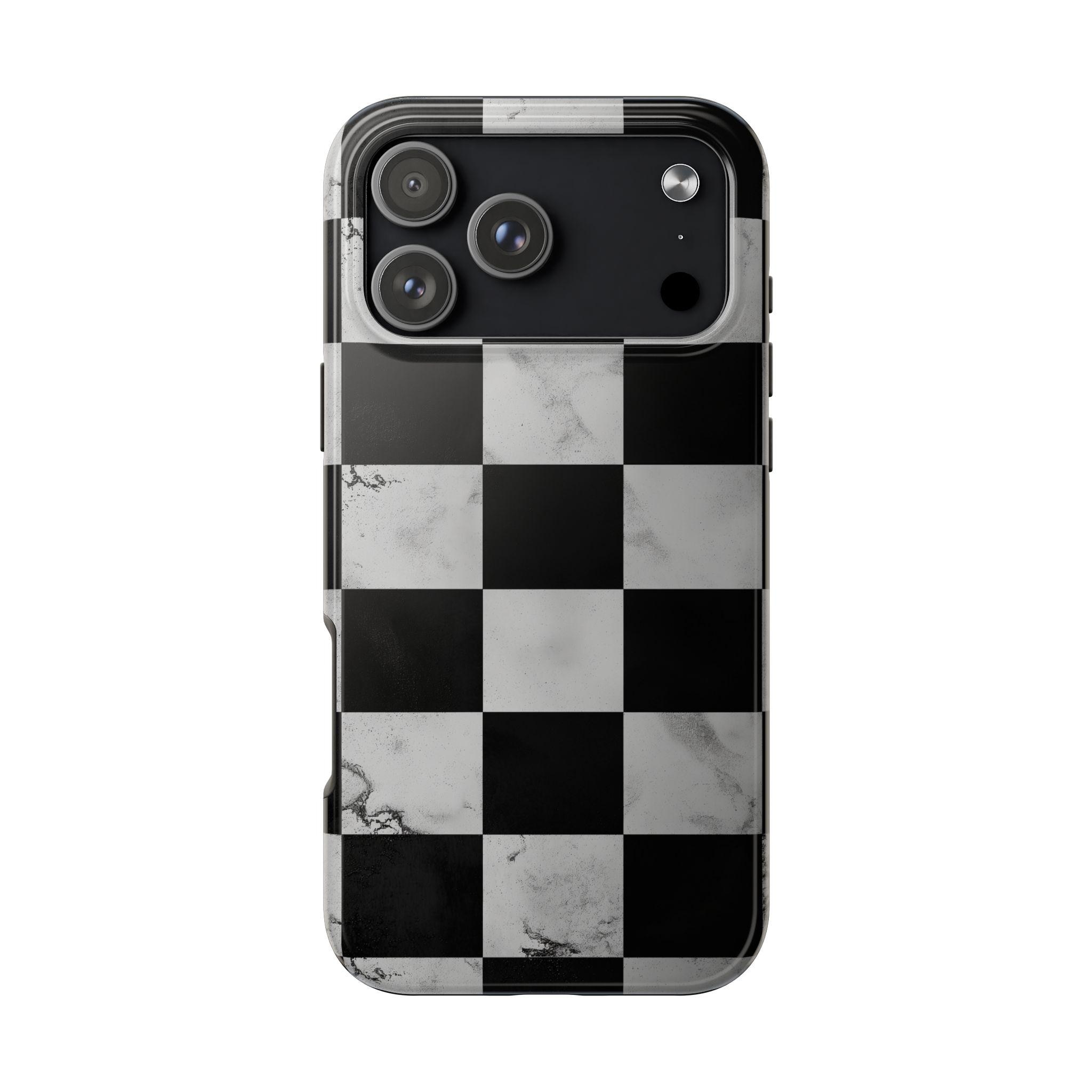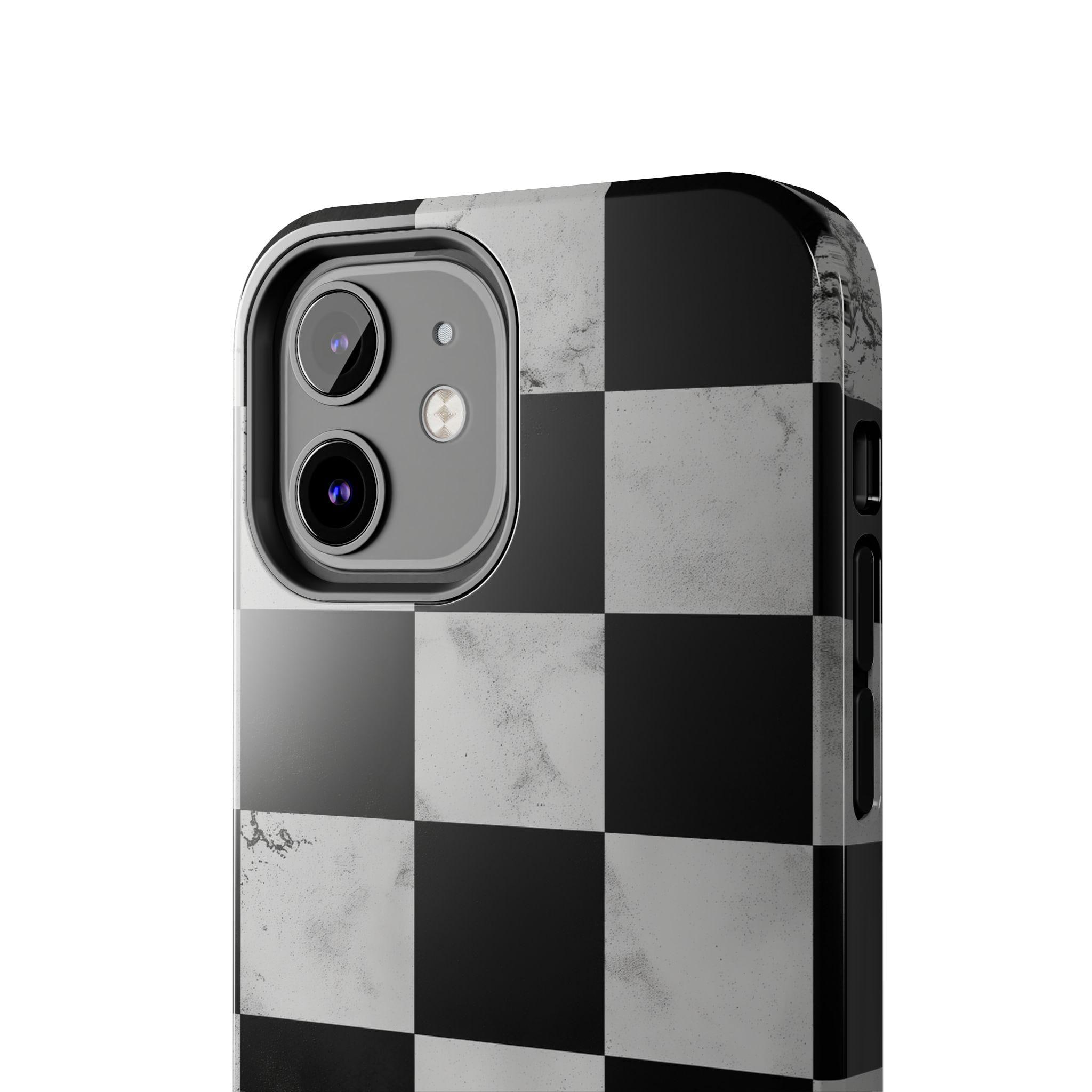 Marble Grunge Checkerboard Tough Phone Case | Racing-Inspired Minimalist