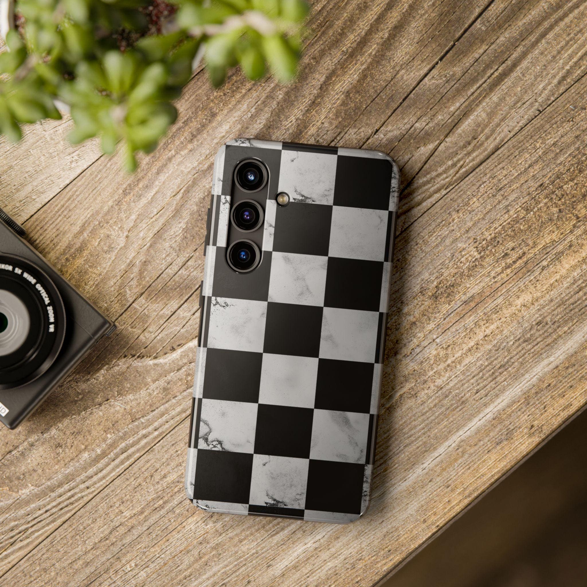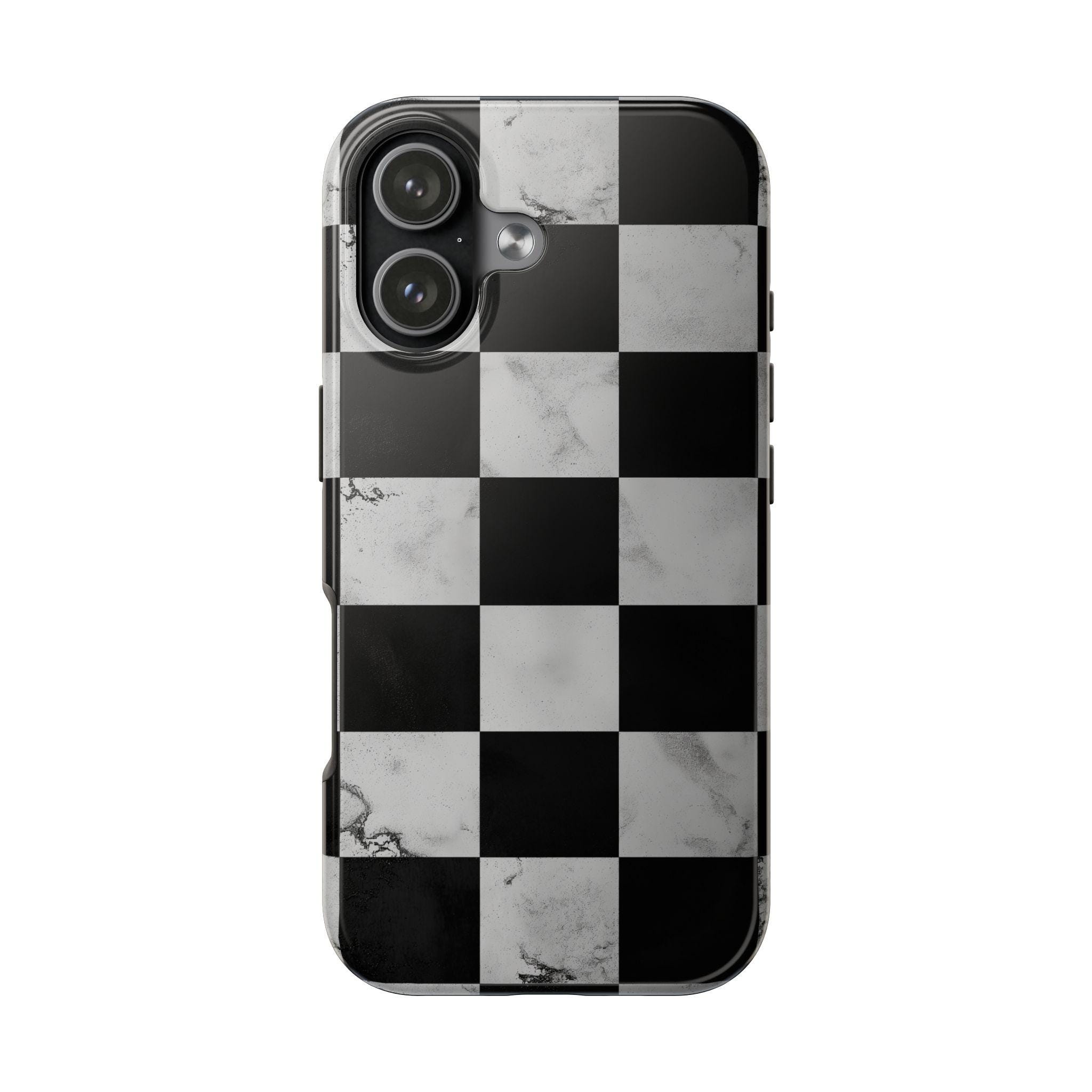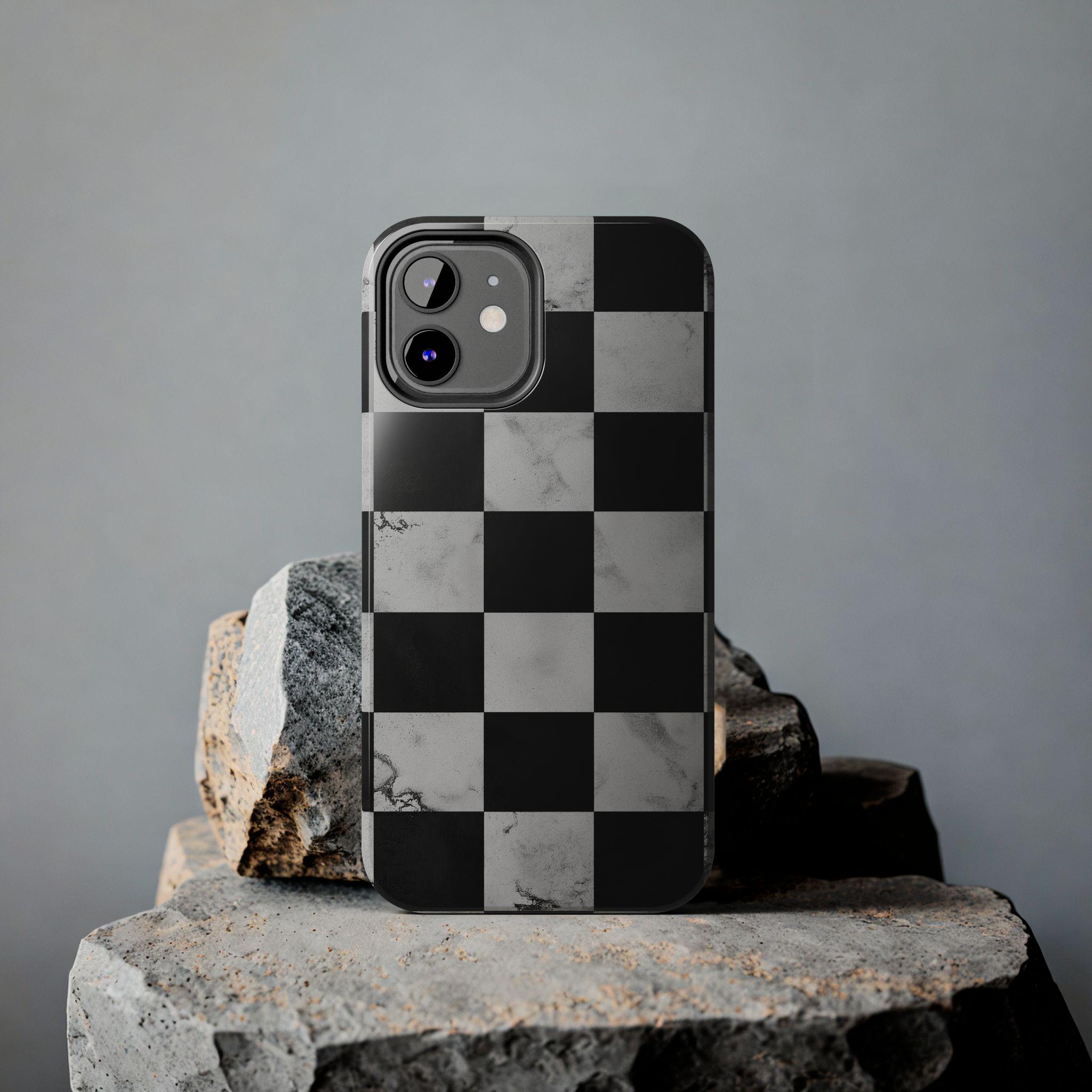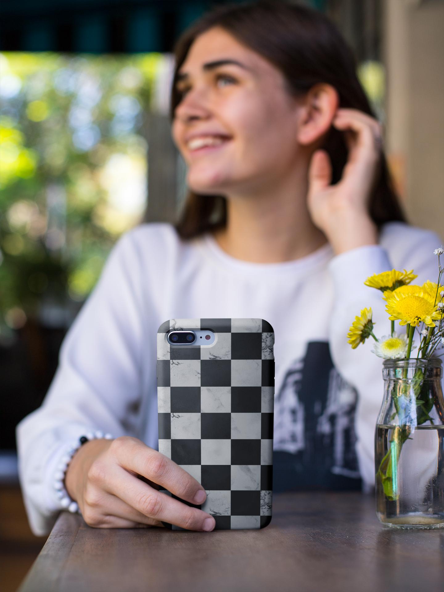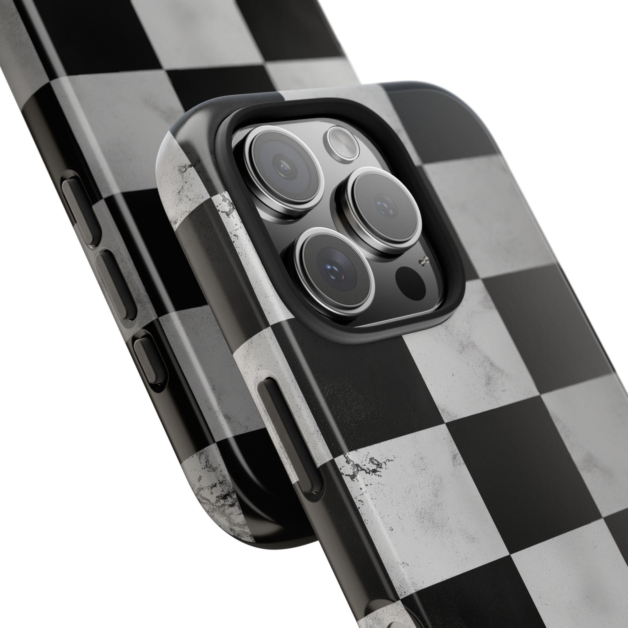 Marble Grunge Checkerboard Tough Phone Case | Racing-Inspired Minimalist
