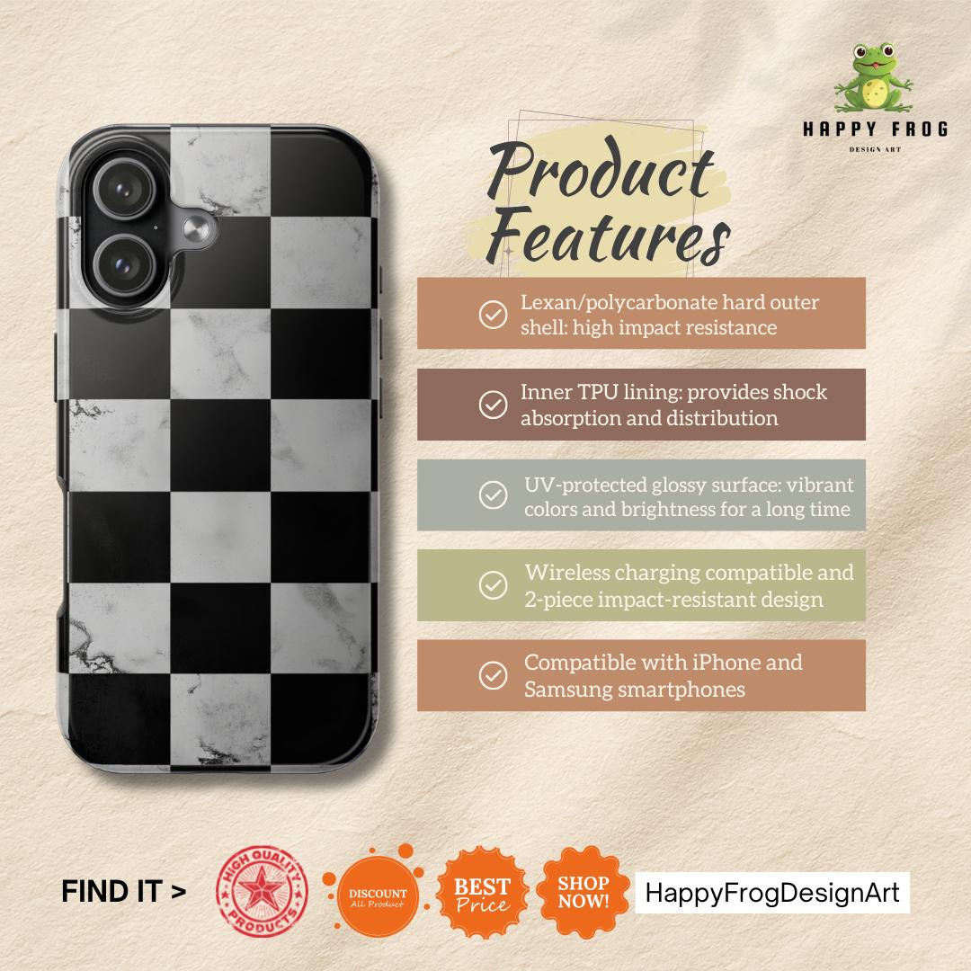 Where racing heritage meets modern luxury. This exclusive HappyFrogDesignArt creation re-imagines the iconic checkered flag with a sophisticated marble twist. Designed for those who appreciate clean lines, high contrast, and a touch of vintage speed, this case is a timeless accessory for your tech.