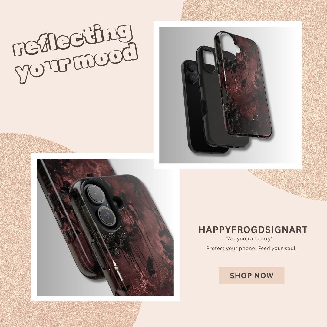 Wear your mystery and protect your tech with the dark elegance of HappyFrogDesignArt.