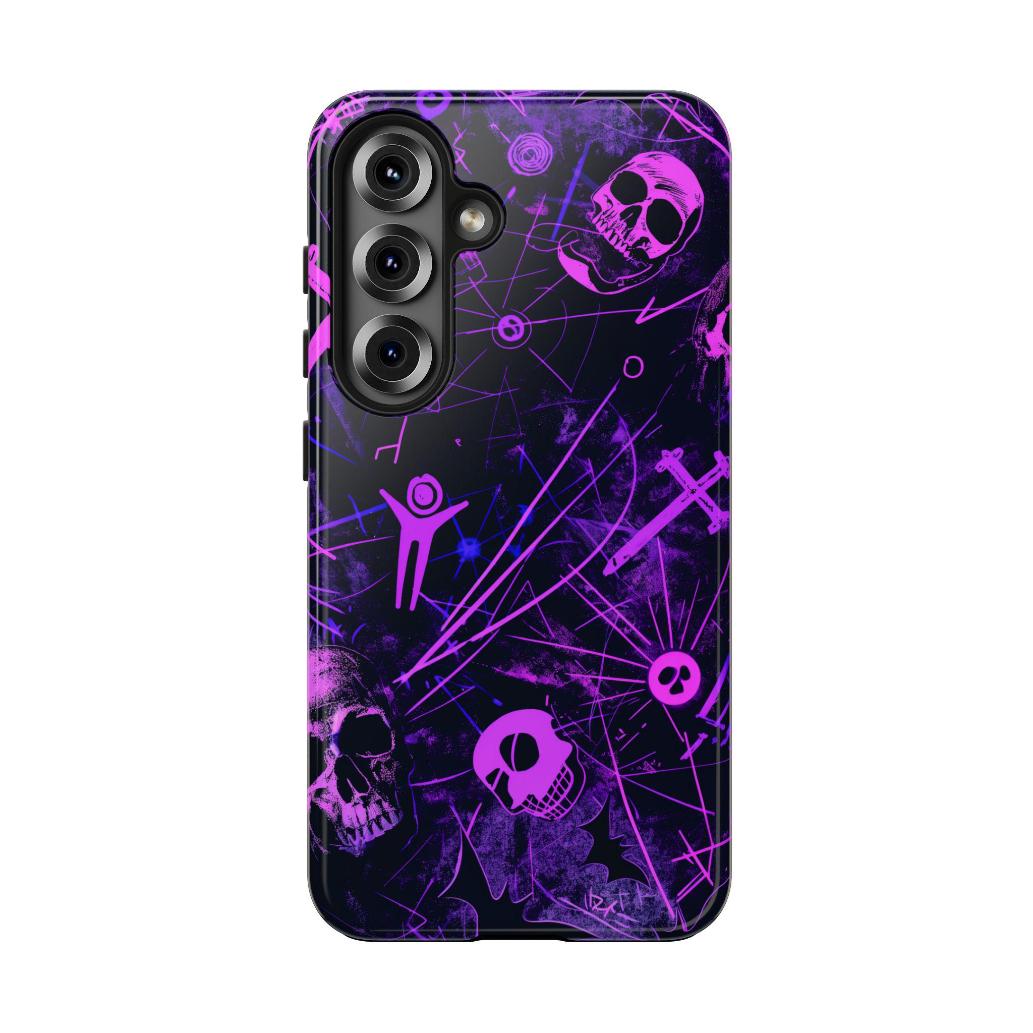 The Electric Afterlife: Neon Purple & Pink Cyber-Goth Skull Case