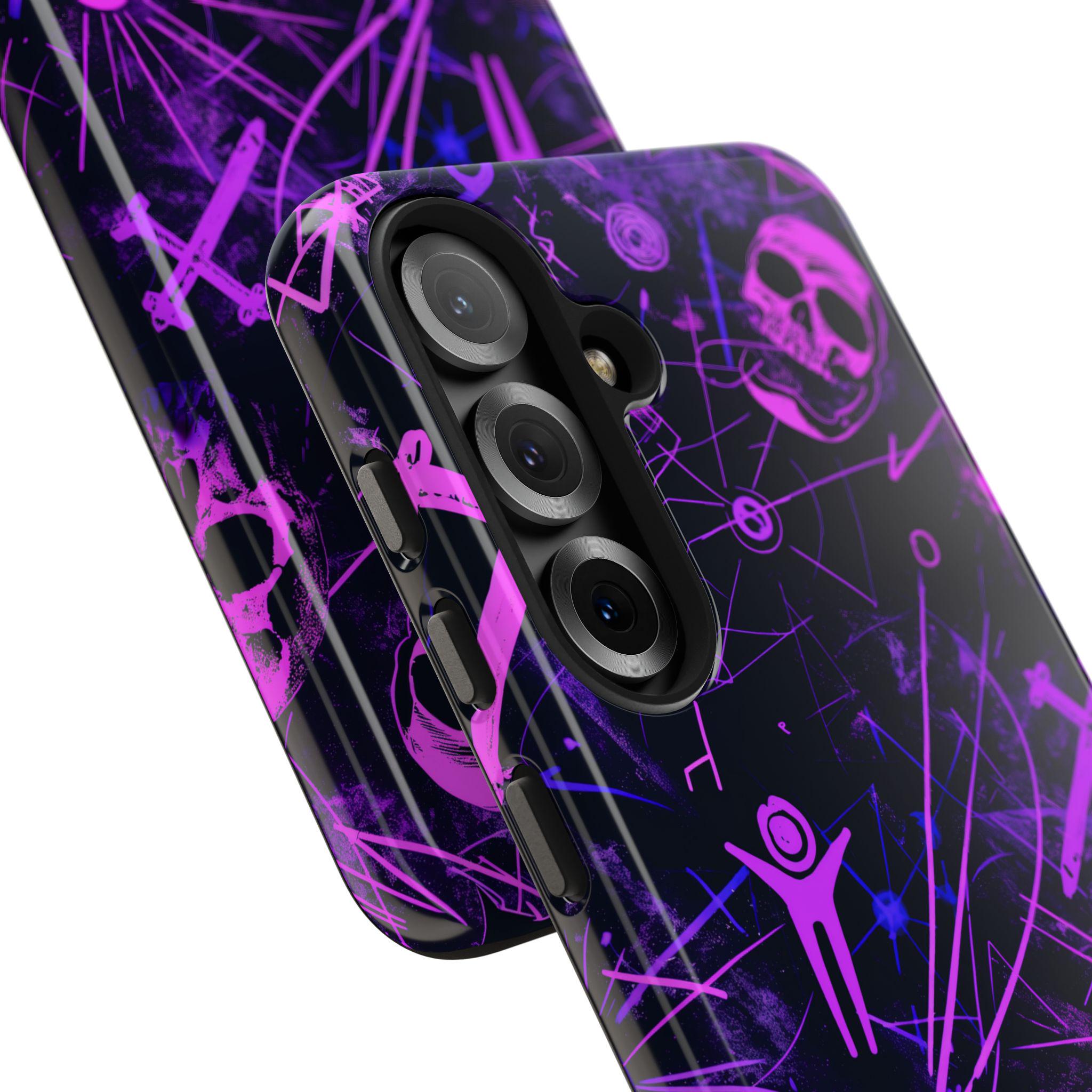 Neon Pink Skull Urban Gothic Phone Case | Purple Black Energy Lines