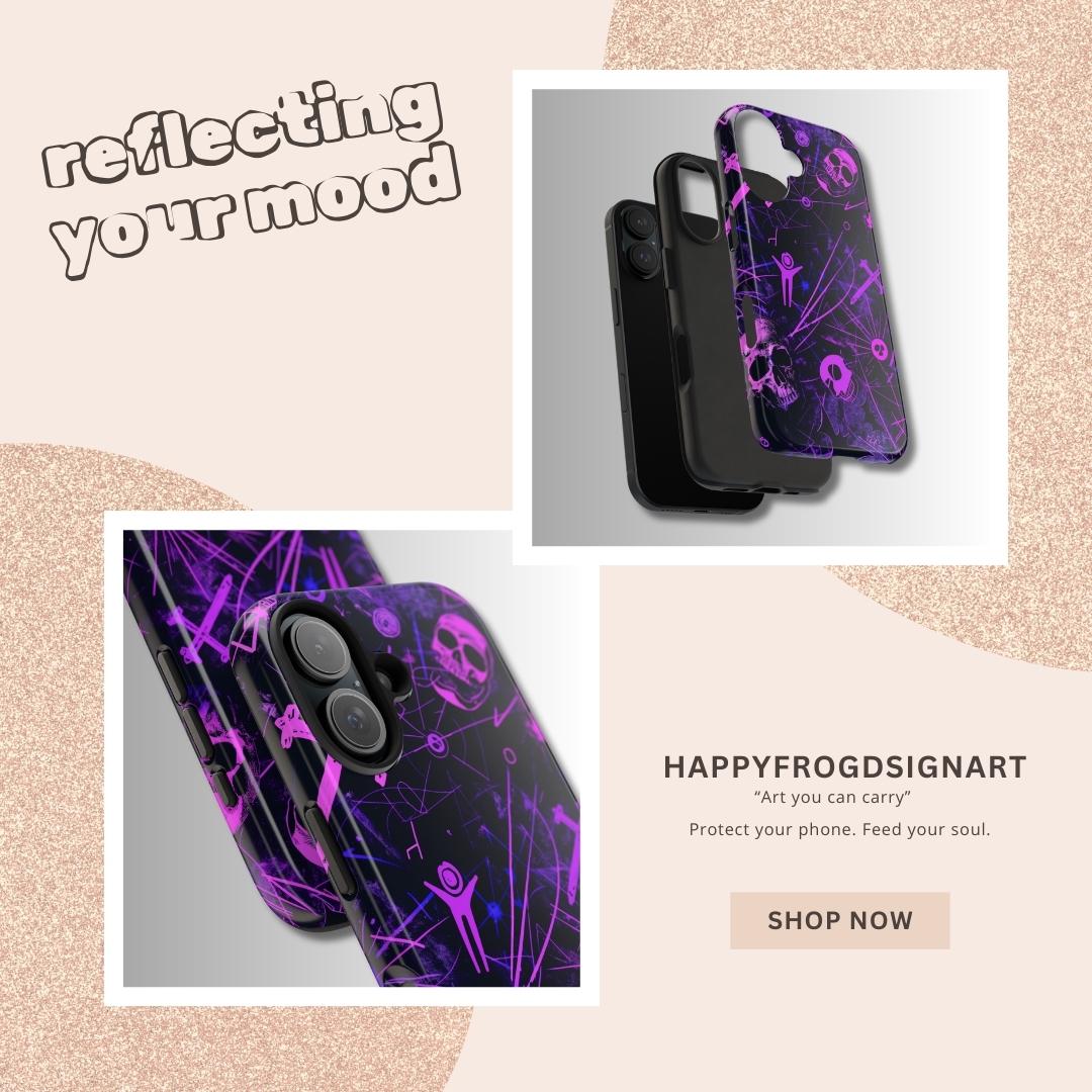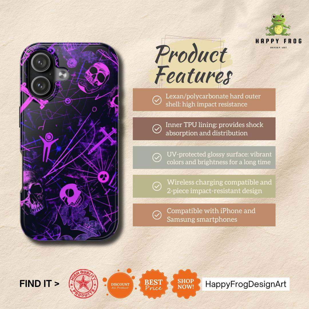 Plug into the dark energy! This exclusive HappyFrogDesignArt creation is where ancient mystery meets futuristic neon. Featuring glowing pink skulls and chaotic energy ley lines on a deep violet canvas, this case is designed for the night owls, the rebels, and the tech-wizards.