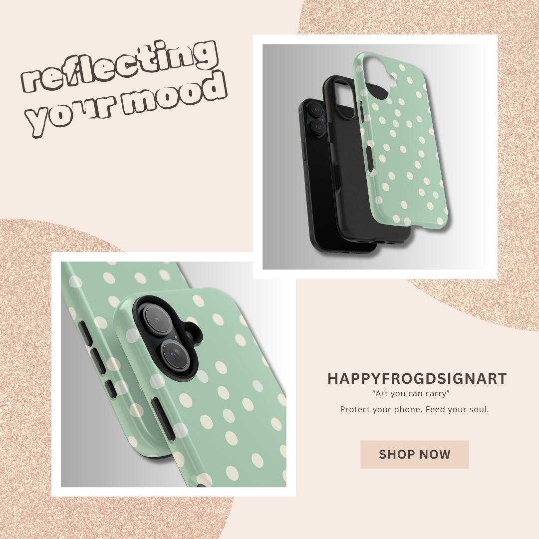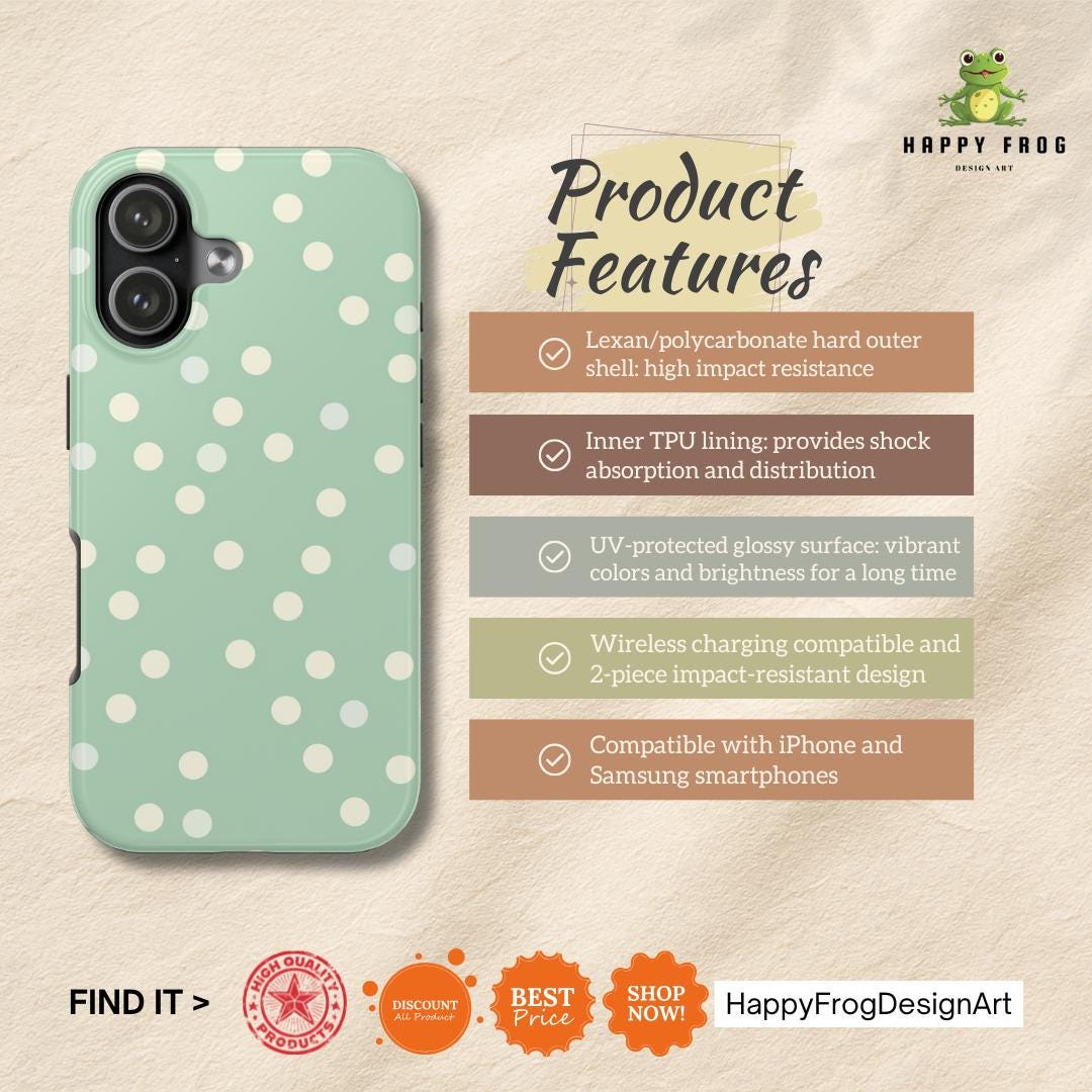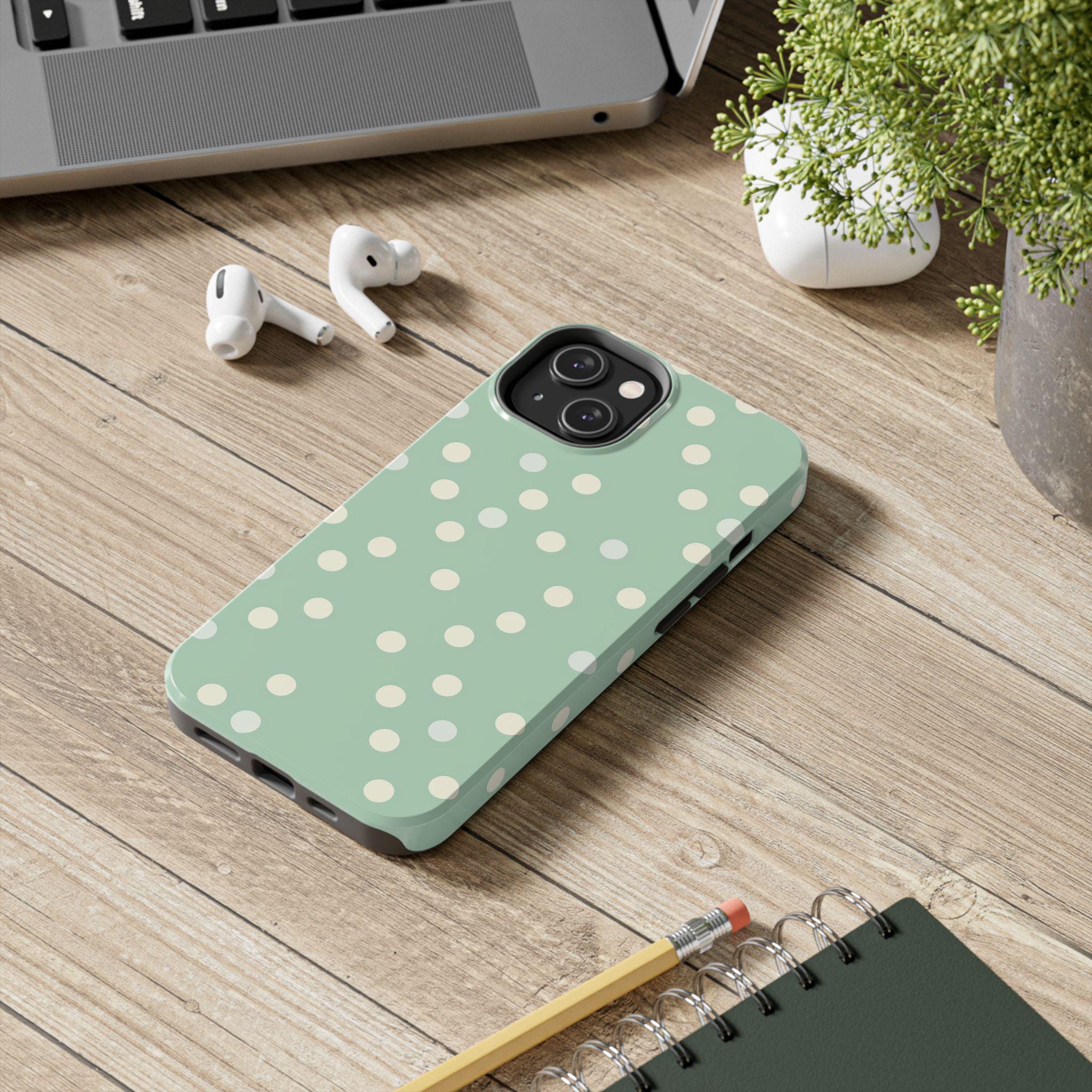 Ivory Polka Dot Sage Phone Case | Tough Phone Cases
