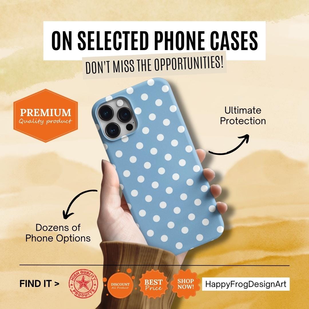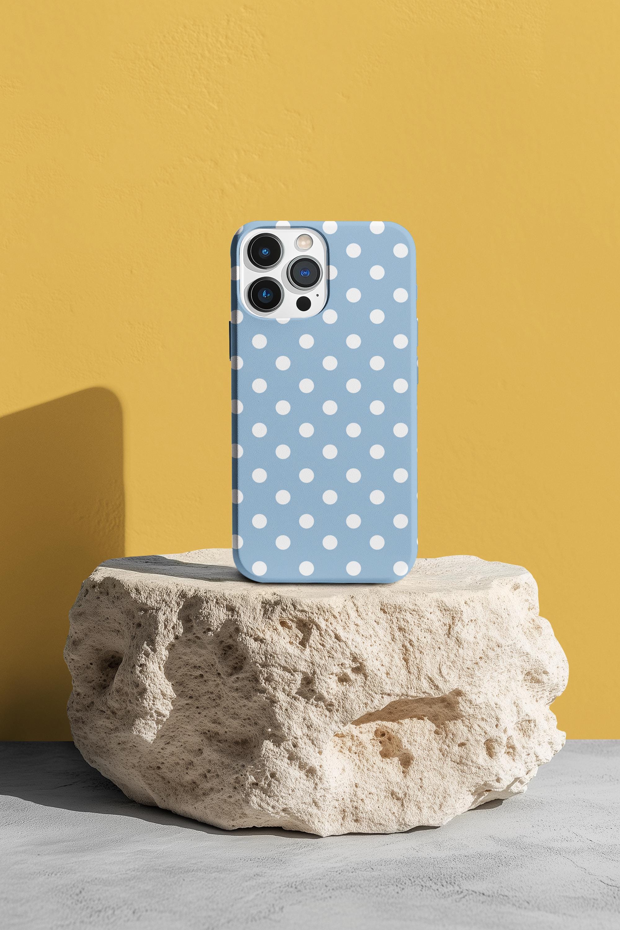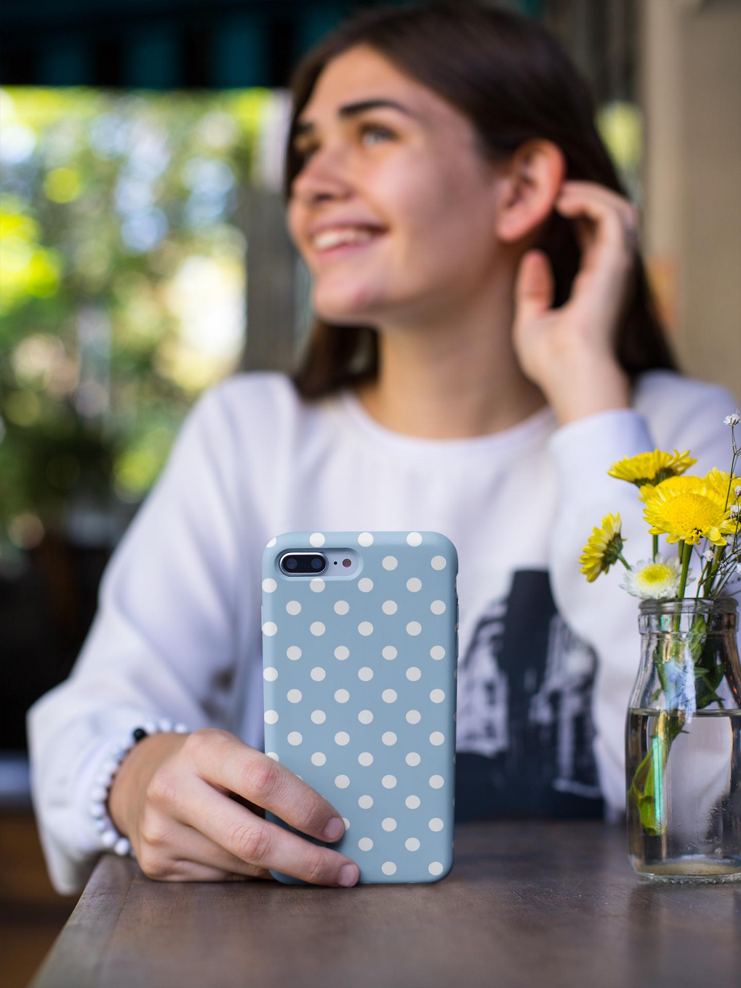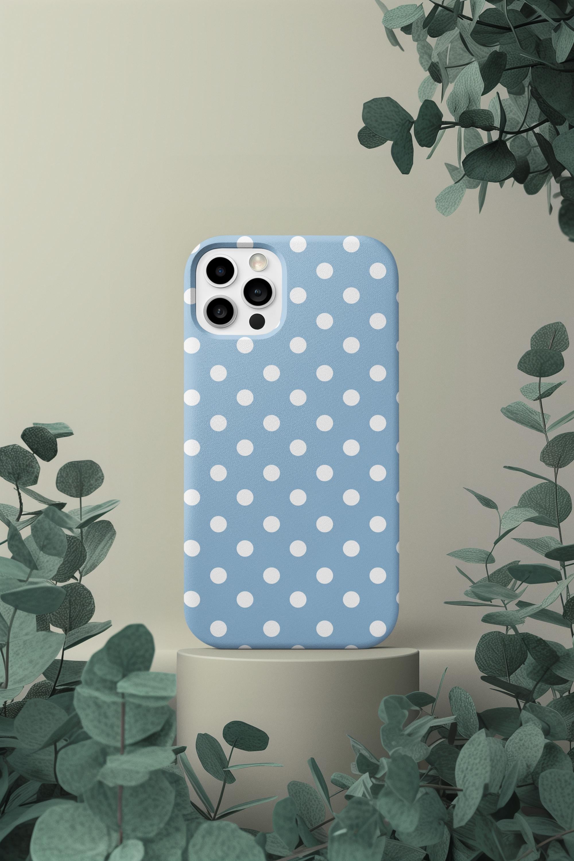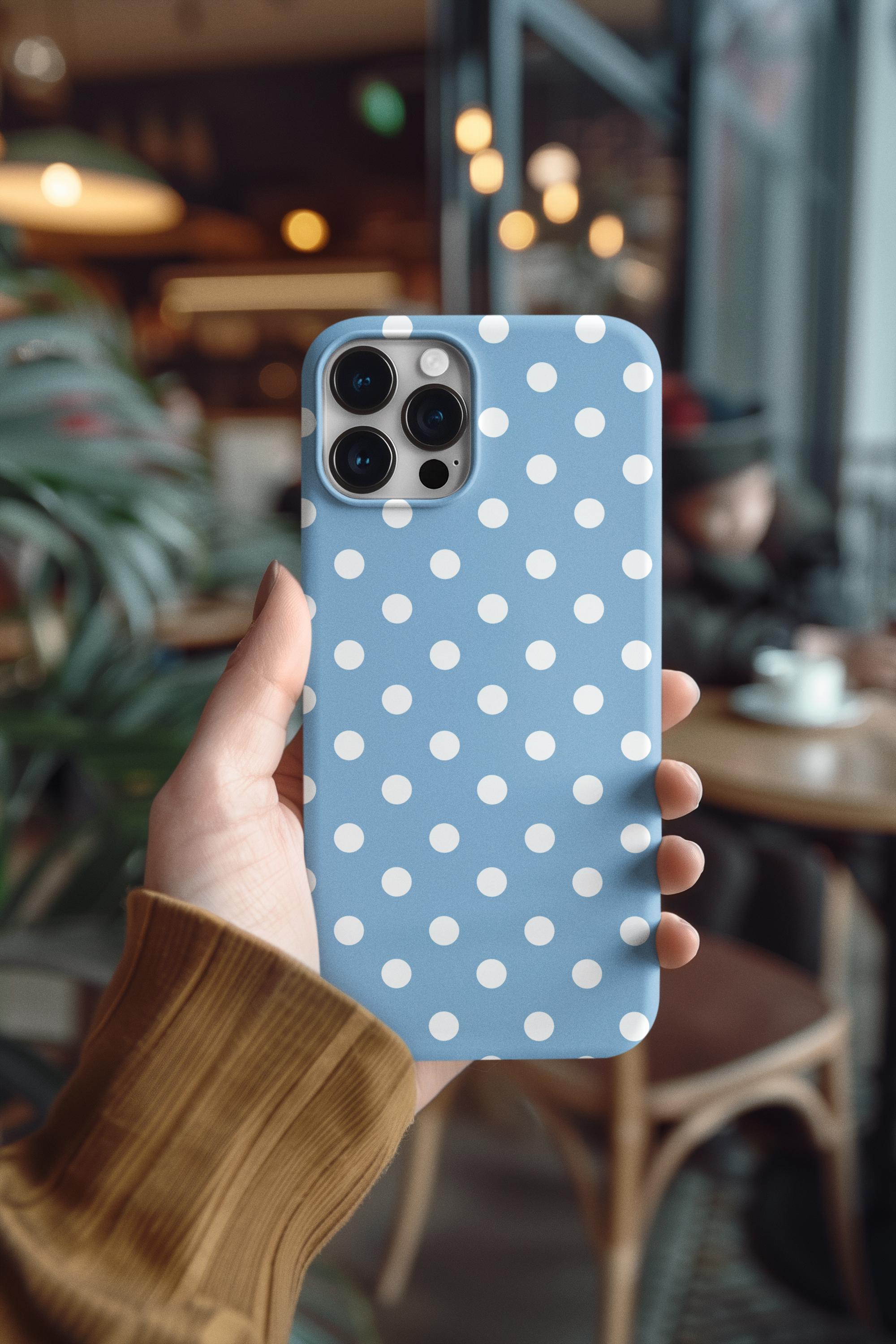 A cheerful, protective phone case that brings a soft, vintage vibe to your everyday carry. The glossy blue background dotted with crisp white polka dots feels playful and calm — like a clear spring morning. Slim but sturdy, the two-piece shell and flexible rubber liner work together to absorb shocks and keep your phone looking fresh. It lays flat to shield the screen from surface scratches and stays color-true outdoors thanks to UV protection. Compact, tactile, and quietly stylish, this case slips easily into a bag or pocket while giving your phone a tidy, feminine look that suits daily life and small celebrations.