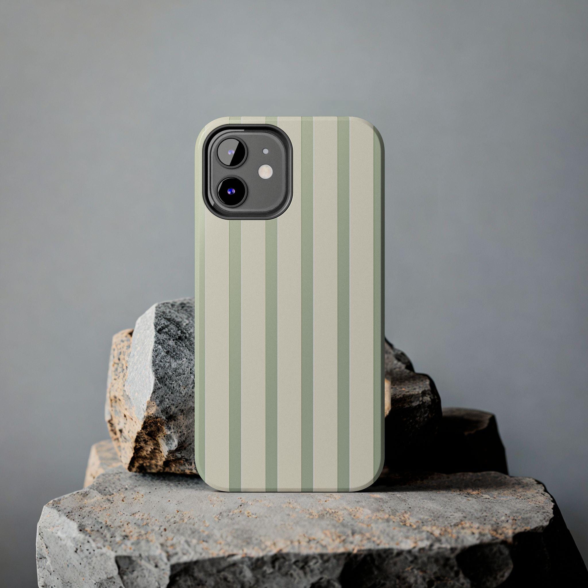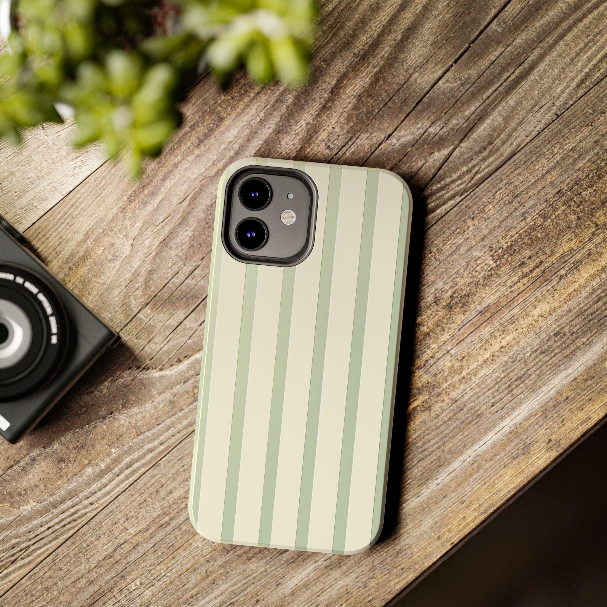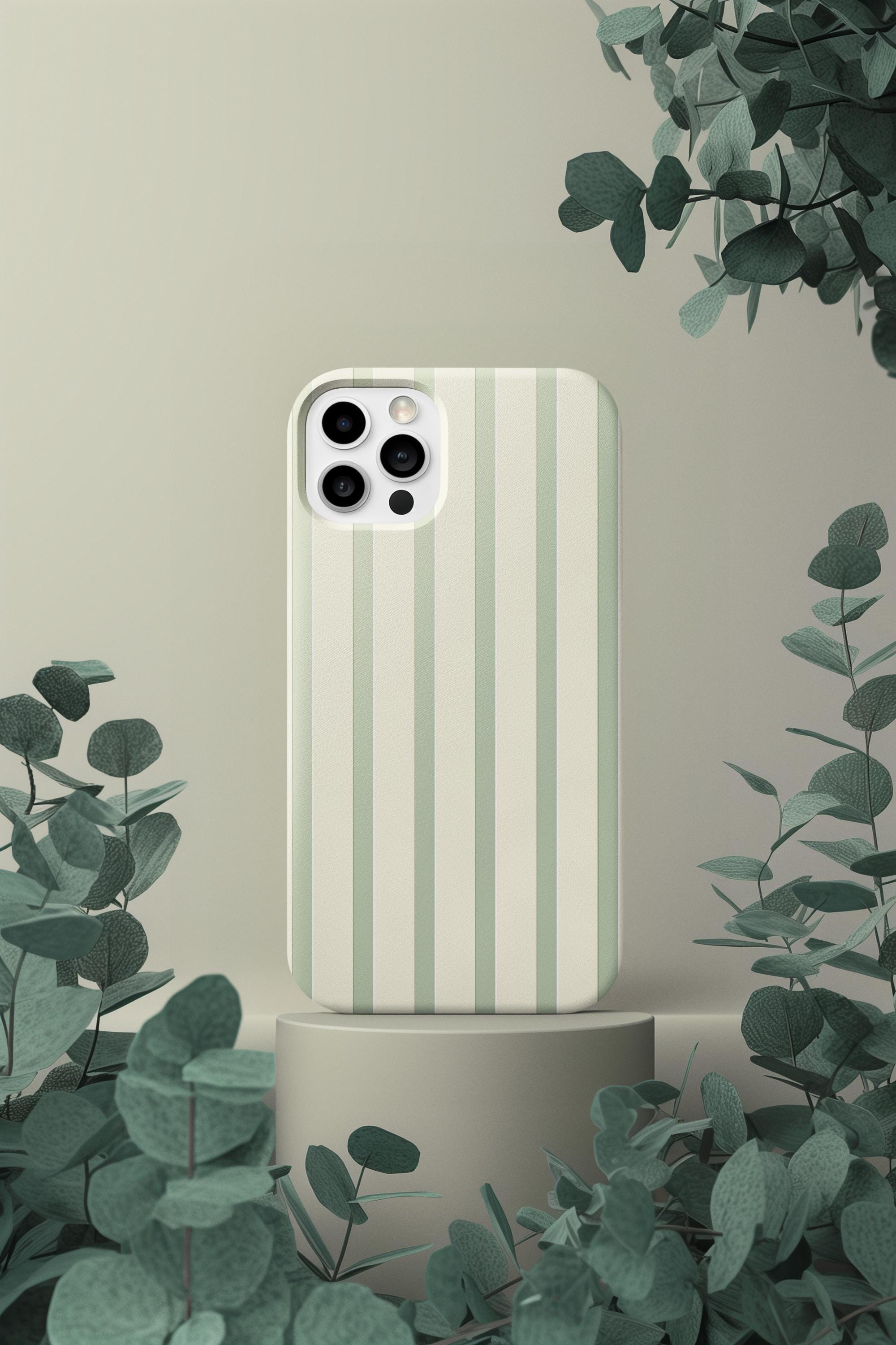 Sage Green Vertical Stripe Phone Case | Minimalist Pastel Design