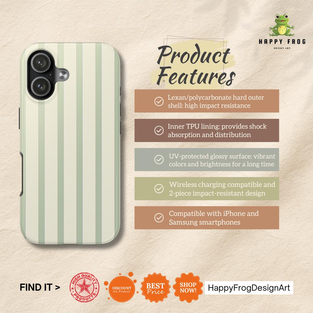 Less is truly more. This exclusive HappyFrogDesignArt creation features a refined wide-stripe pattern in a soothing sage green. Designed for those who appreciate the beauty of symmetry and the calm of pastel tones, this case is the perfect understated accessory for your daily tech.