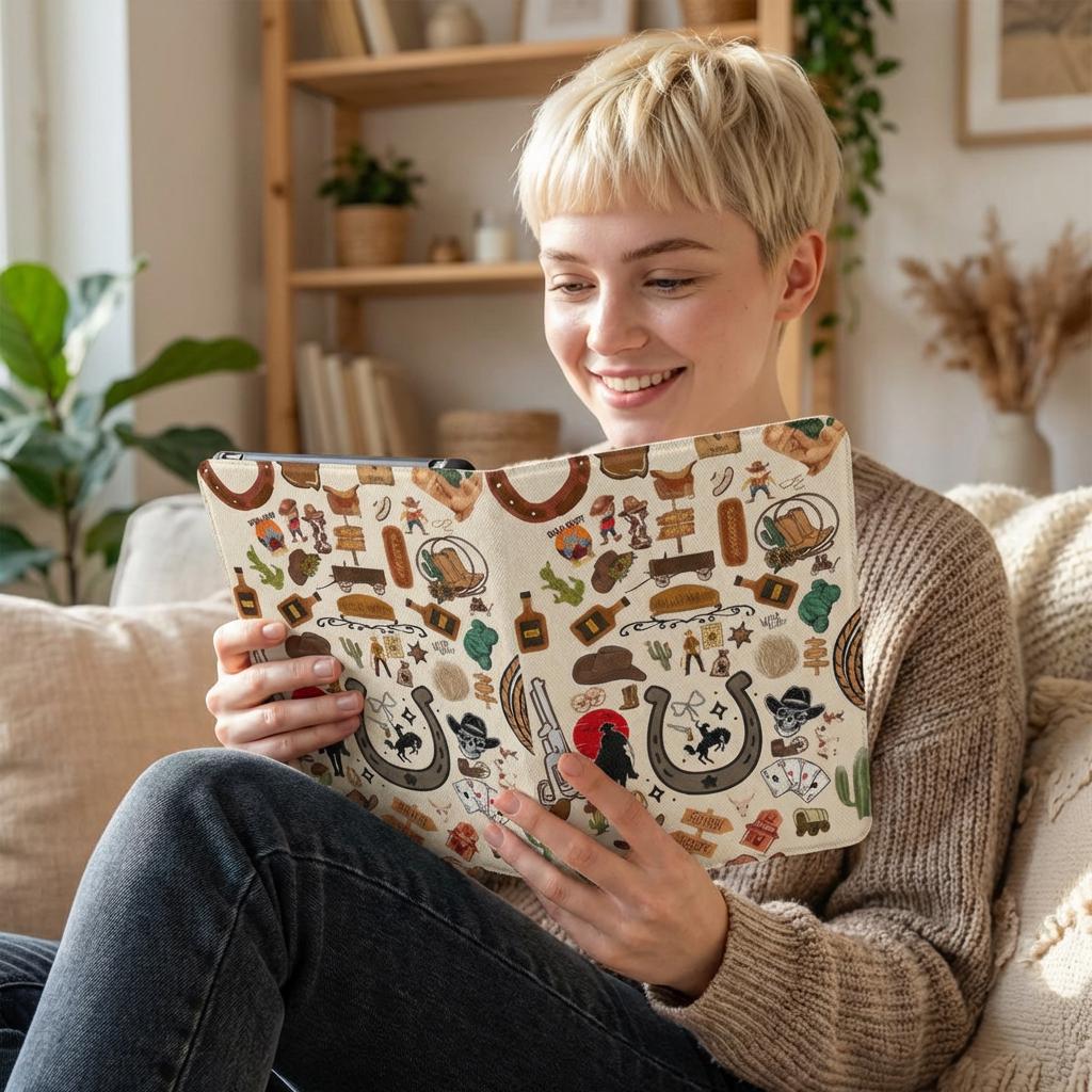 Turn your e-reader into a piece of Western history. Our exclusive HappyFrogDesignArt Western Collage case is a tribute to the rugged beauty of the desert and the legends of the trail. Featuring a premium Saffiano-textured finish, this case combines high-end durability with a timeless, hand-curated aesthetic.