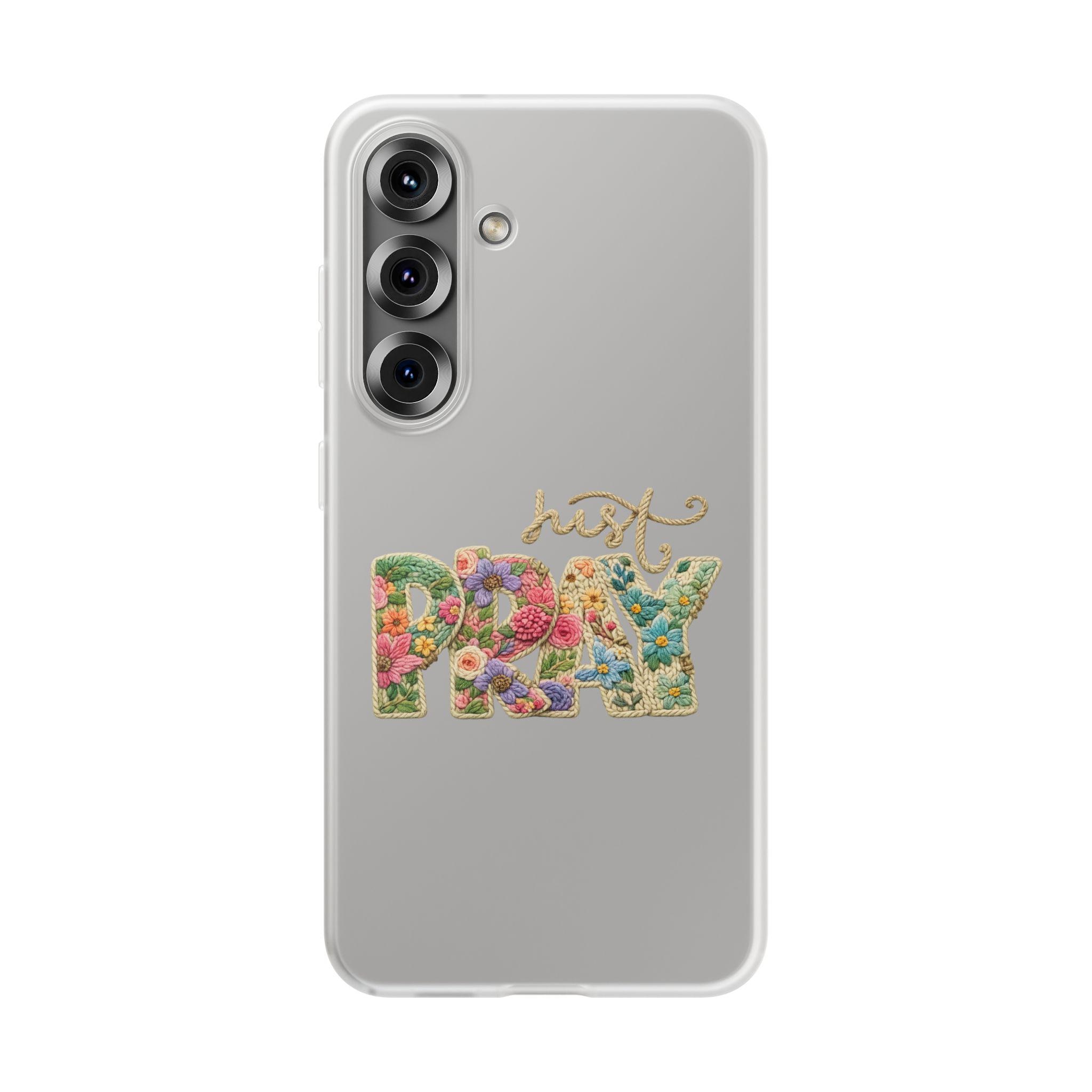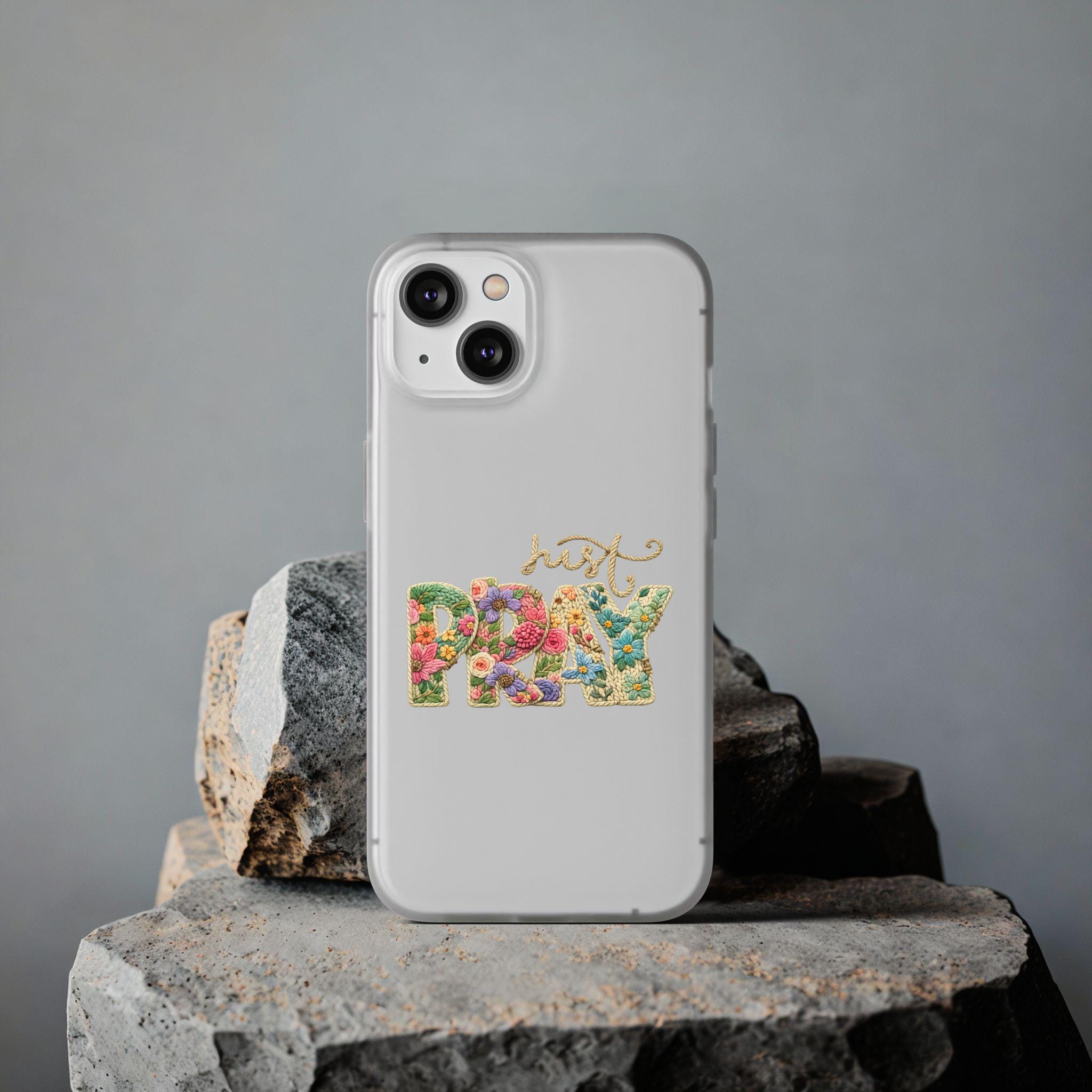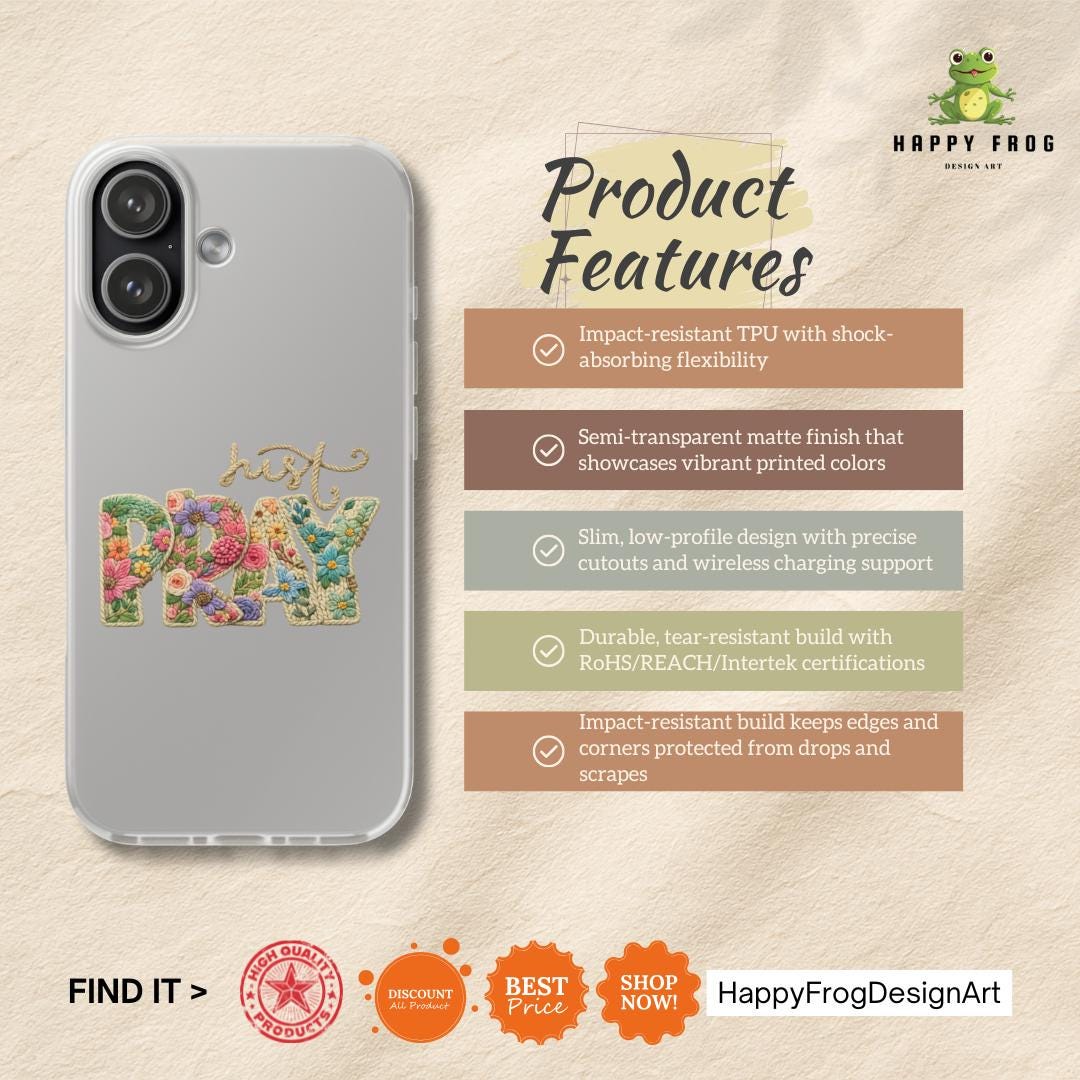 Bring a touch of artisanal elegance to your daily life with our exclusive HappyFrogDesignArt "Just Pray" case. This design features a stunning, high-definition faux-embroidery effect, where vibrant wildflowers bloom inside beautifully textured letters. Set on a crystal-clear background, it allows your phone’s natural beauty to shine through while making a bold spiritual statement.