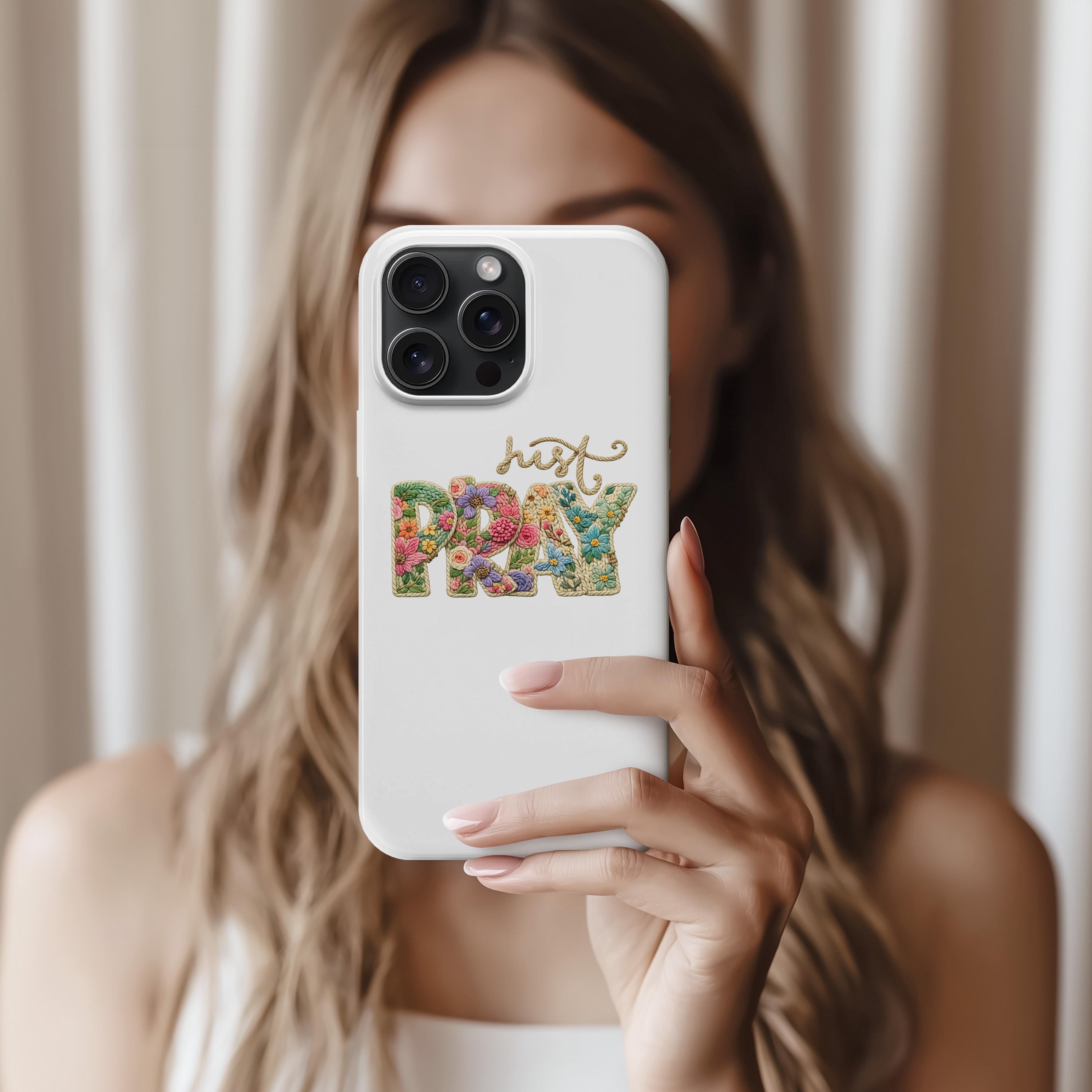 Just Pray Floral Phone Case – Faux Embroidery Christian Art