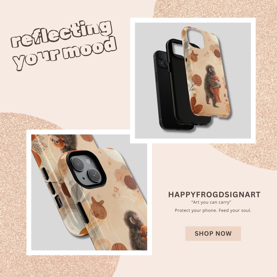 Inspired by the iconic viral monkey trend, our exclusive HappyFrogDesignArt "Gentle Soul" case captures a rare moment of pure tenderness. Moving beyond the chaos, this design features the famous little monkey holding onto its favorite plushie in a warm, protective embrace. Set against a beautiful earthy watercolor background, it’s a soulful tribute to resilience and love.