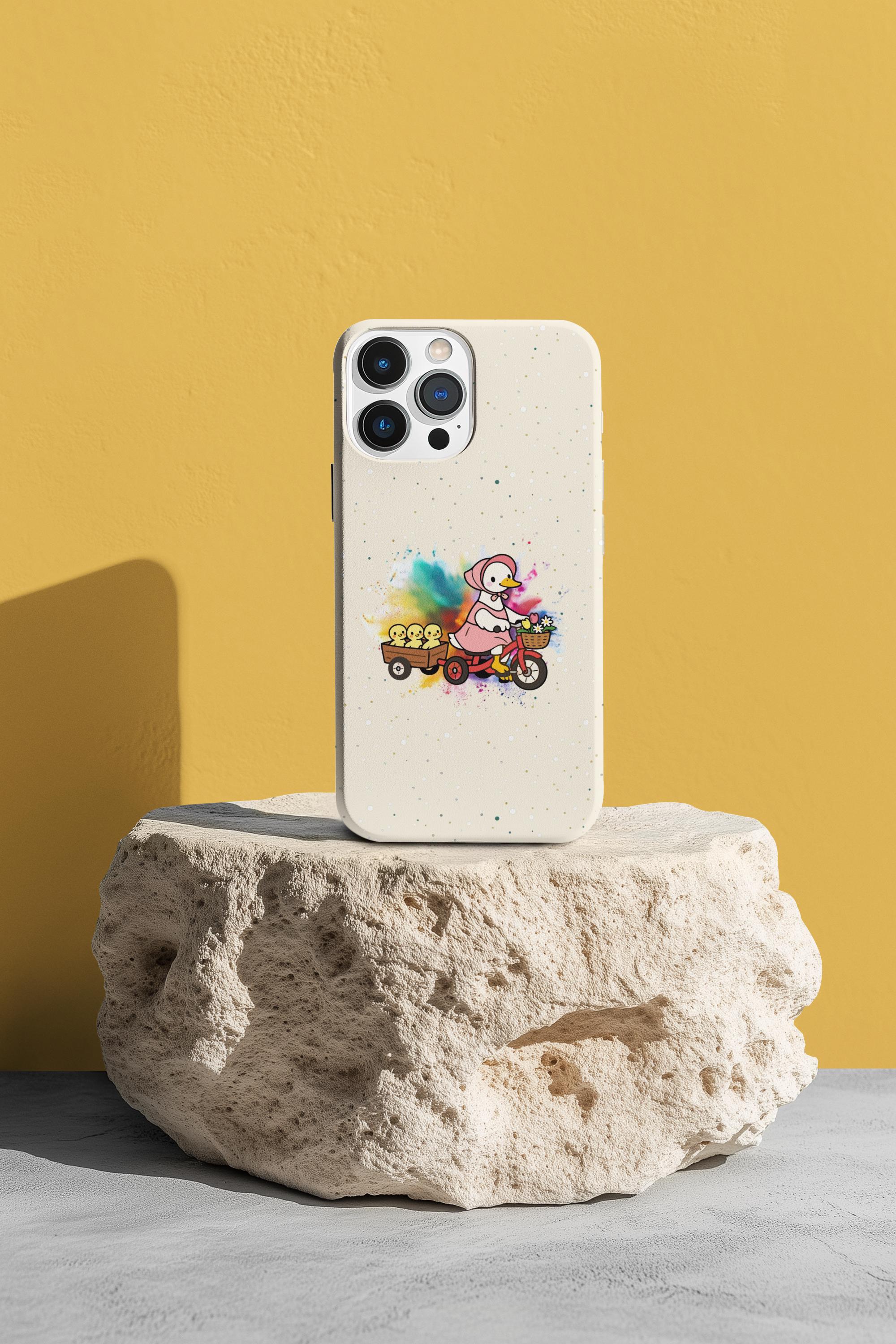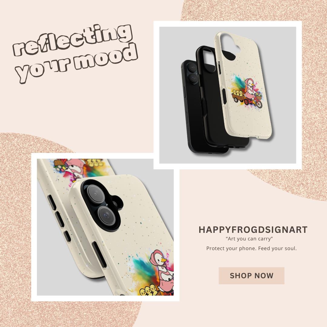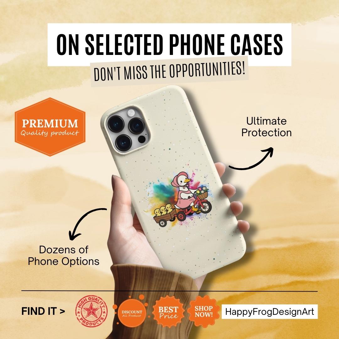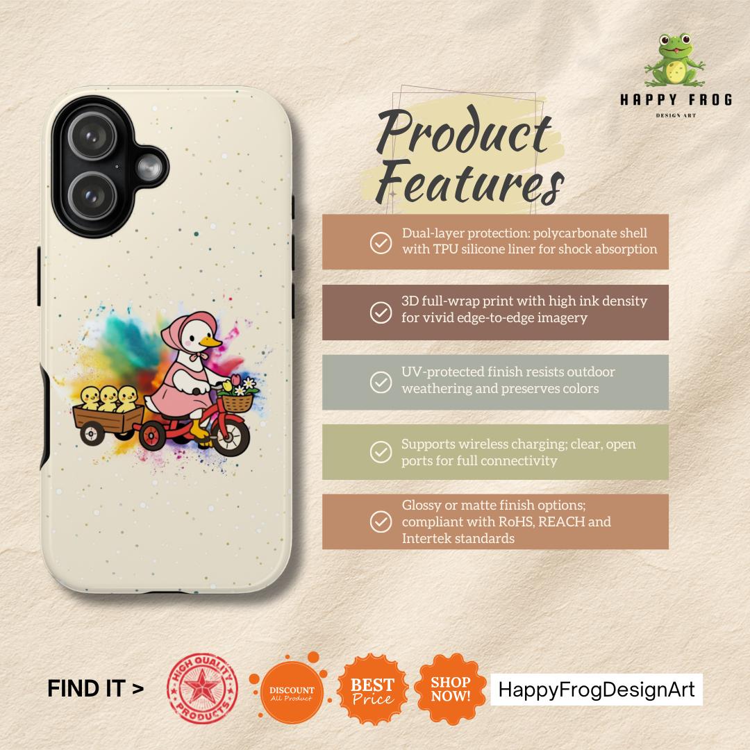 This Mother’s Day, celebrate the "leading lady" of your life with our exclusive HappyFrogDesignArt "Joyful Journey" case. Featuring a charming vintage-style mama duck pedaling through a burst of colorful joy with her three little ducklings in tow, this design is as heartwarming as a mother’s hug.