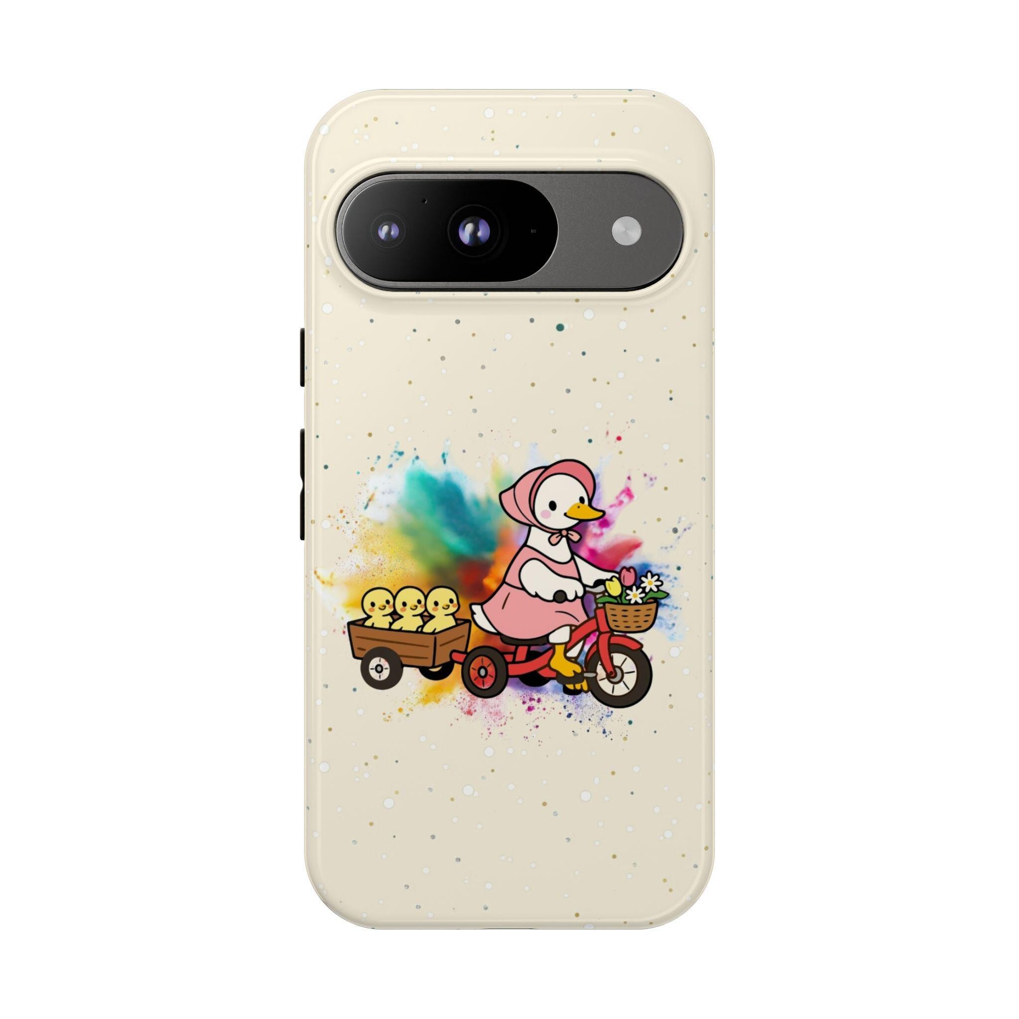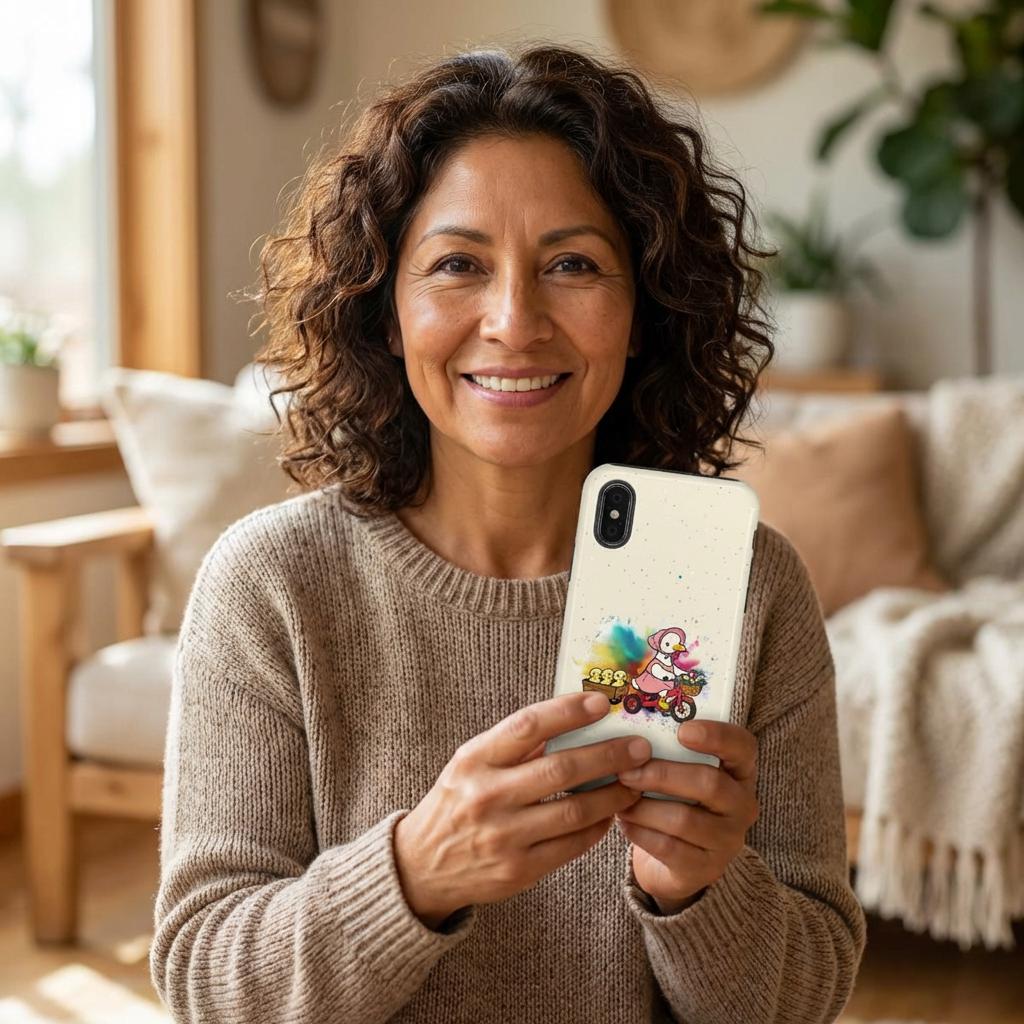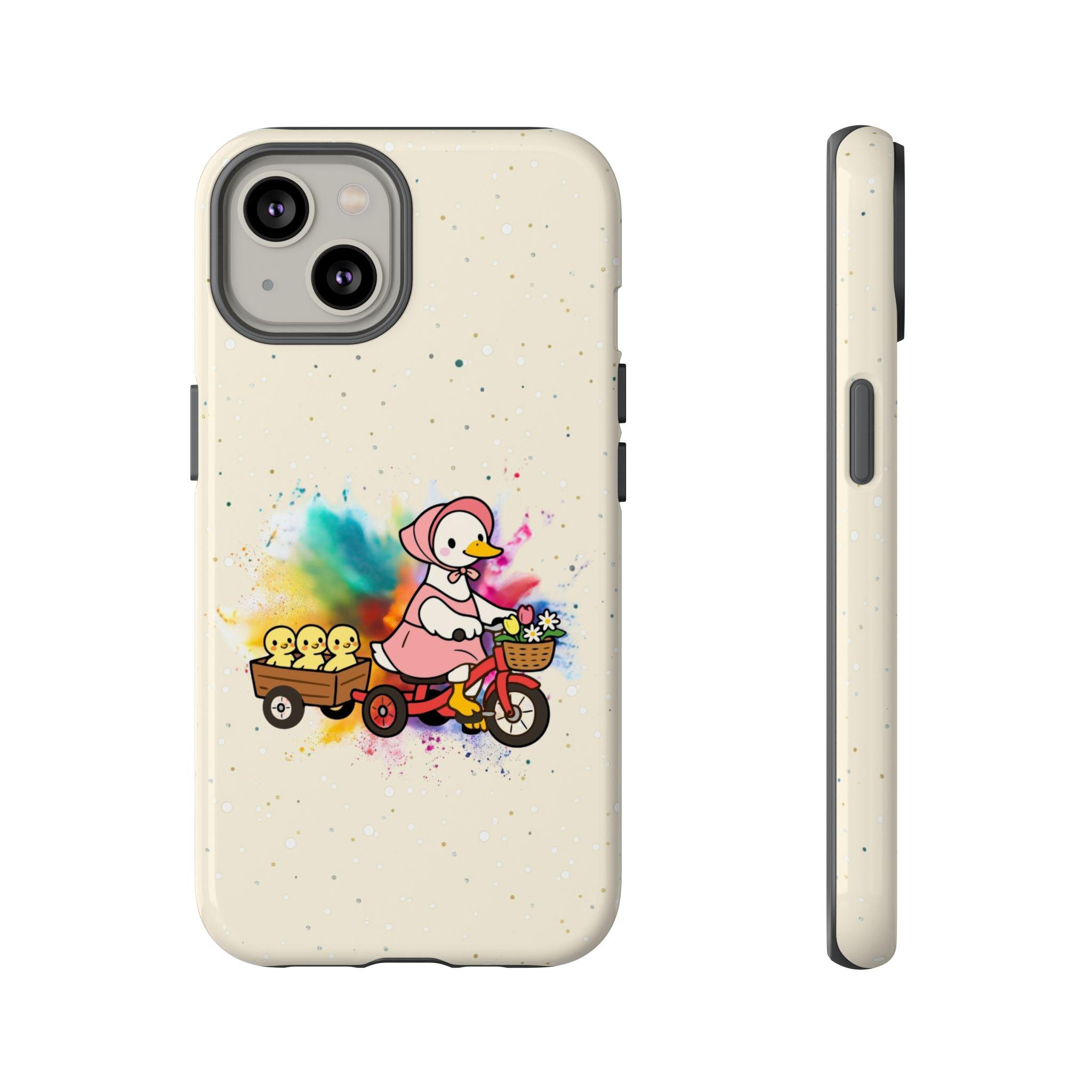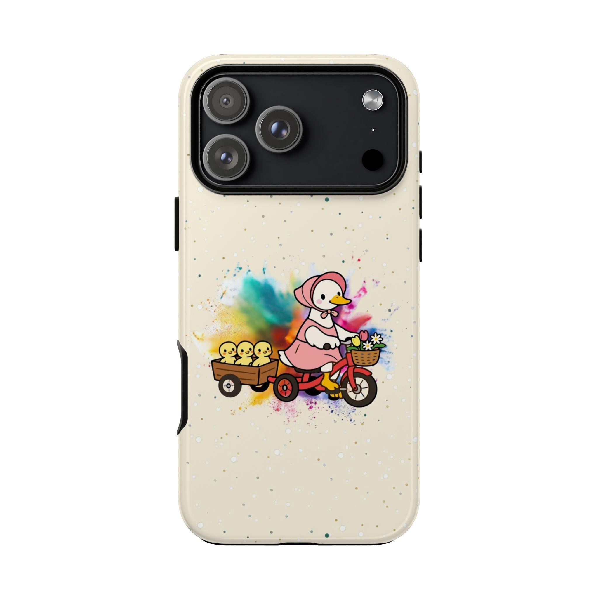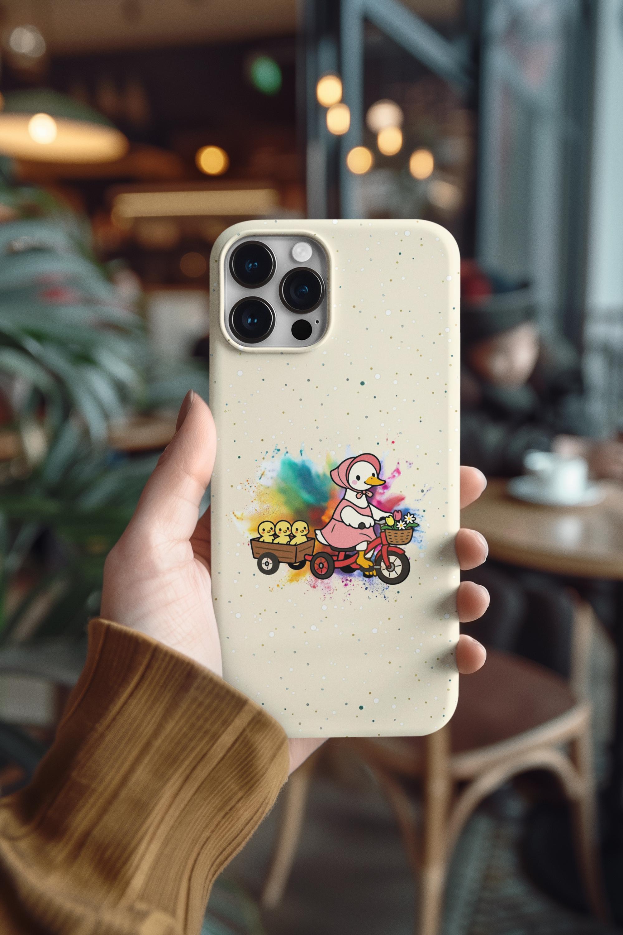 This Mother’s Day, celebrate the "leading lady" of your life with our exclusive HappyFrogDesignArt "Joyful Journey" case. Featuring a charming vintage-style mama duck pedaling through a burst of colorful joy with her three little ducklings in tow, this design is as heartwarming as a mother’s hug.