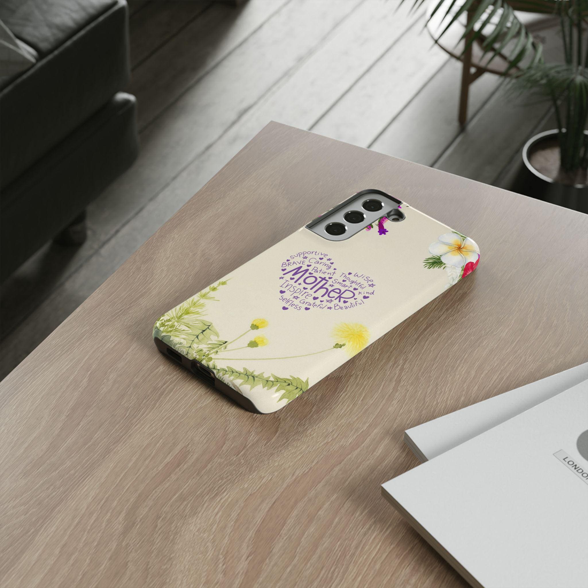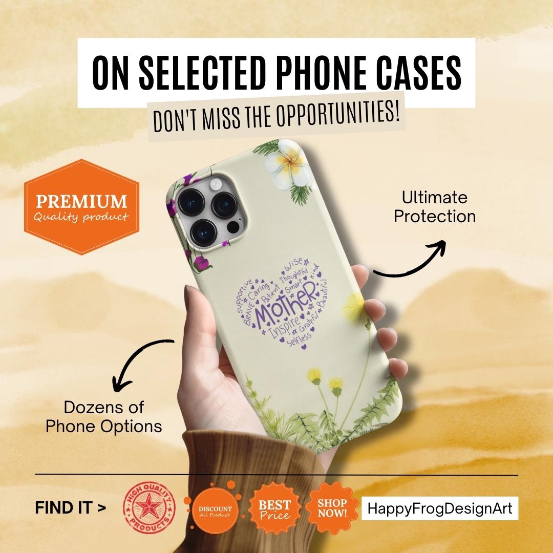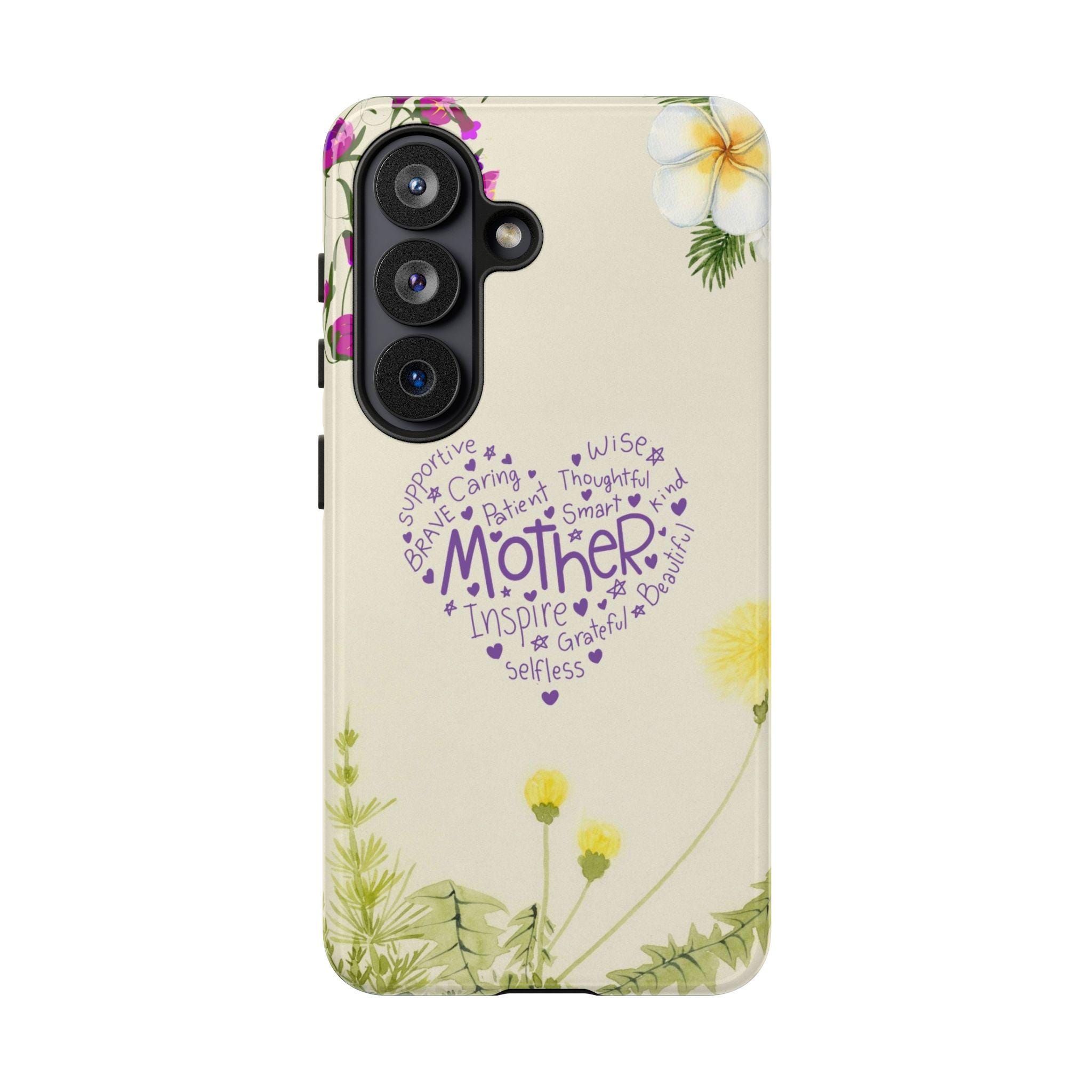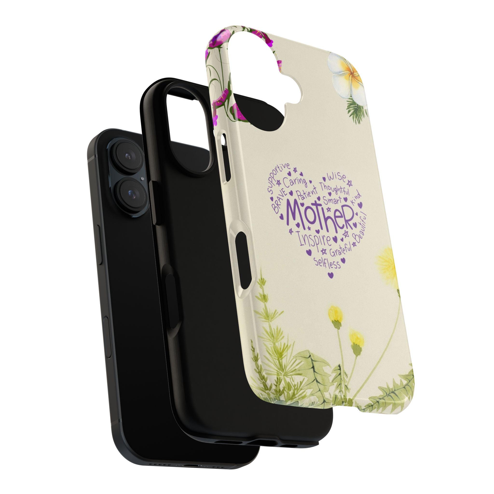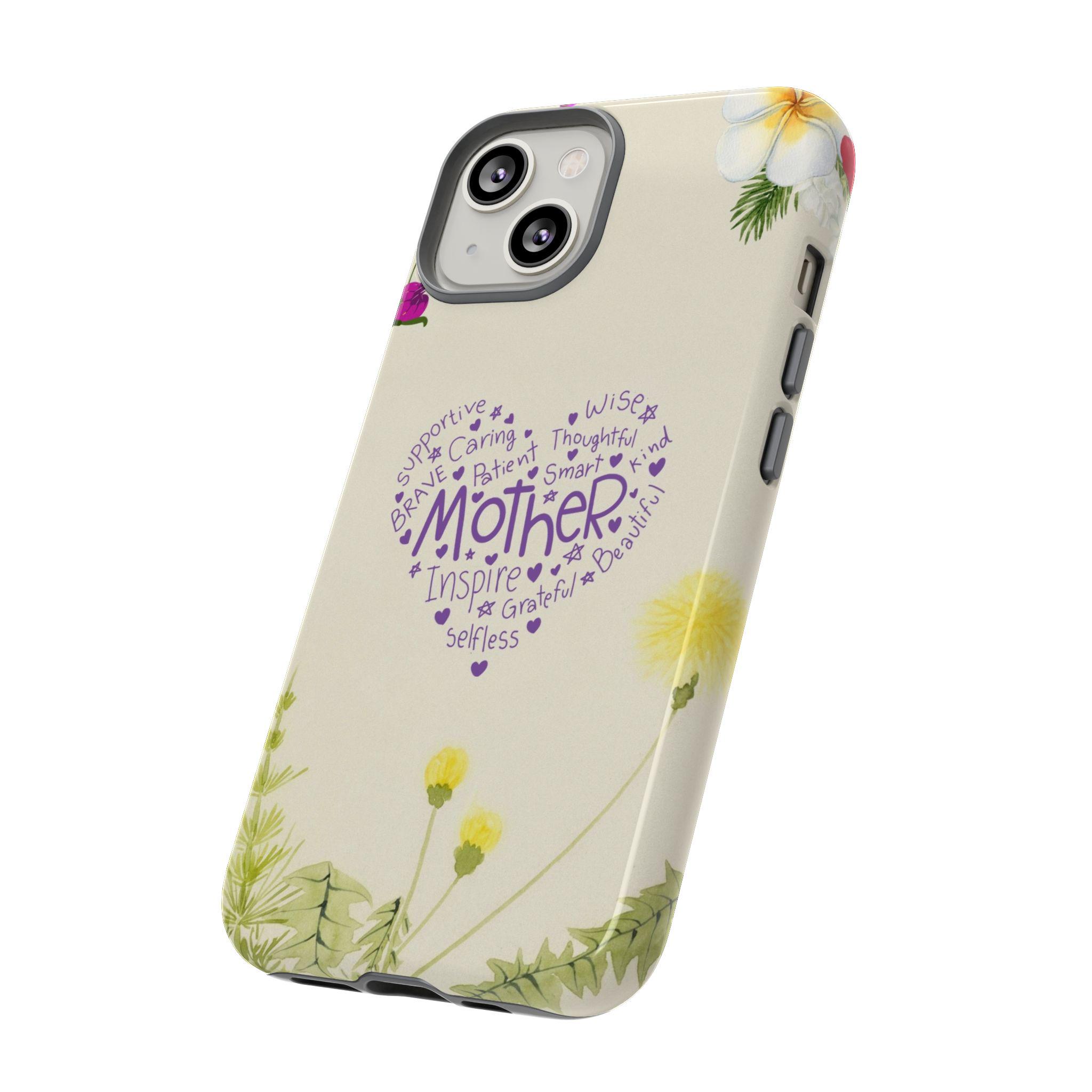 A slim, dual-layer protective phone case that blends soft botanical watercolor art with a heartfelt typographic heart reading “Mother.” The glossy or matte shell features a full-wrap 3D print that keeps colors vivid and resists outdoor fading, while the TPU silicone liner cushions shocks and helps absorb drops. Clear port openings preserve connectivity and wireless charging compatibility, and the finished look is certified for safe materials. This case wears like a small keepsake—gentle floral edges and a warm cream background make it feel like a pocket-sized note of gratitude every time the phone is picked up.
