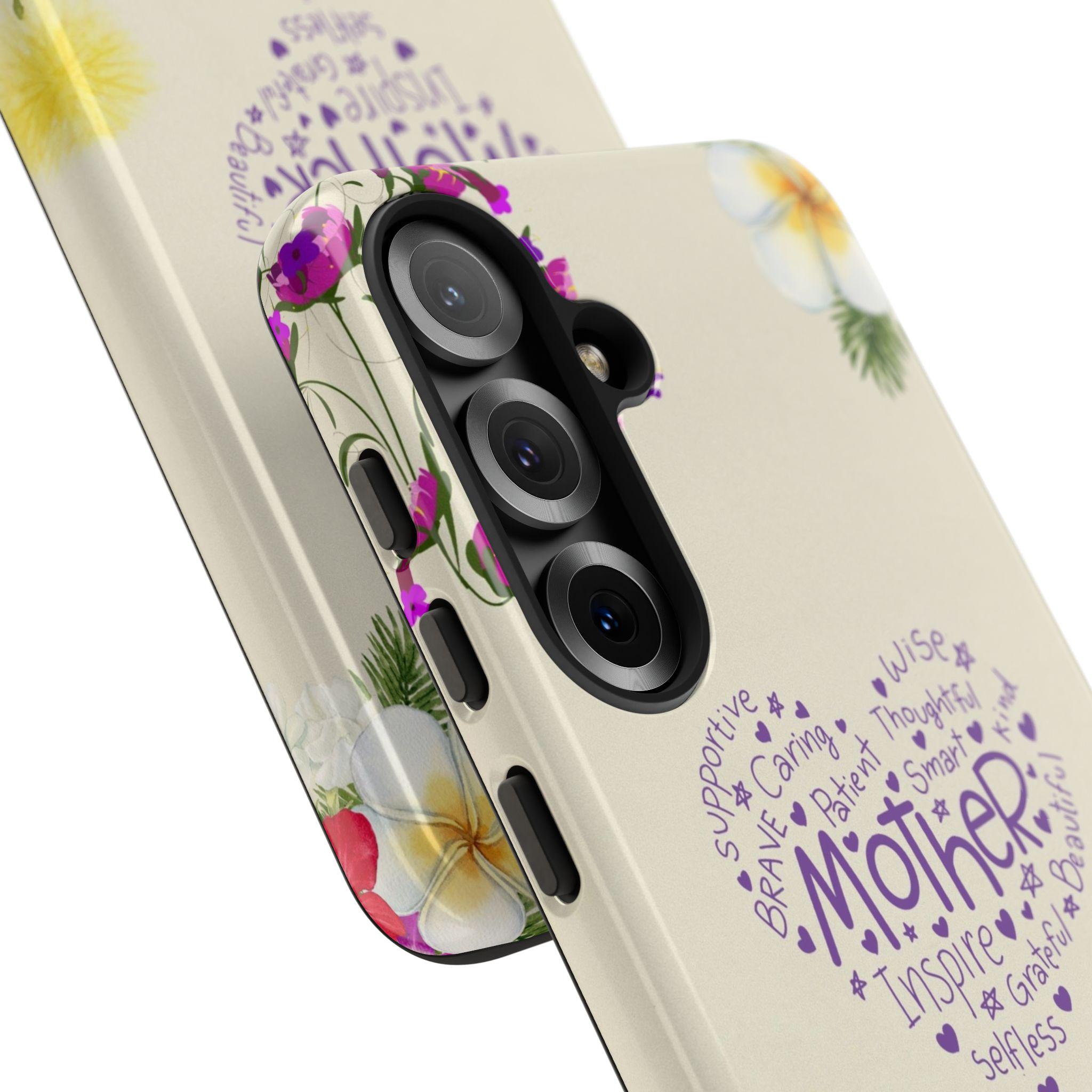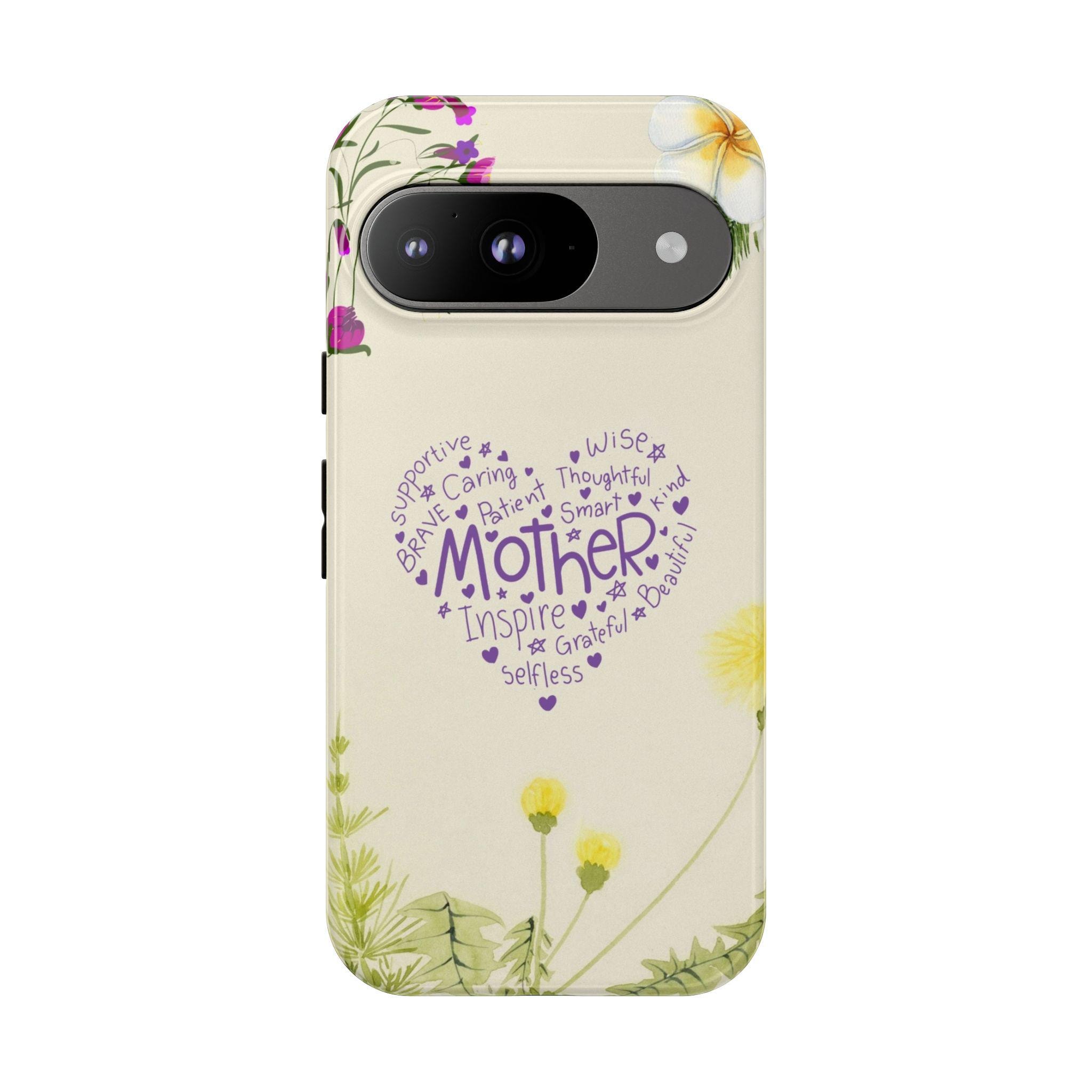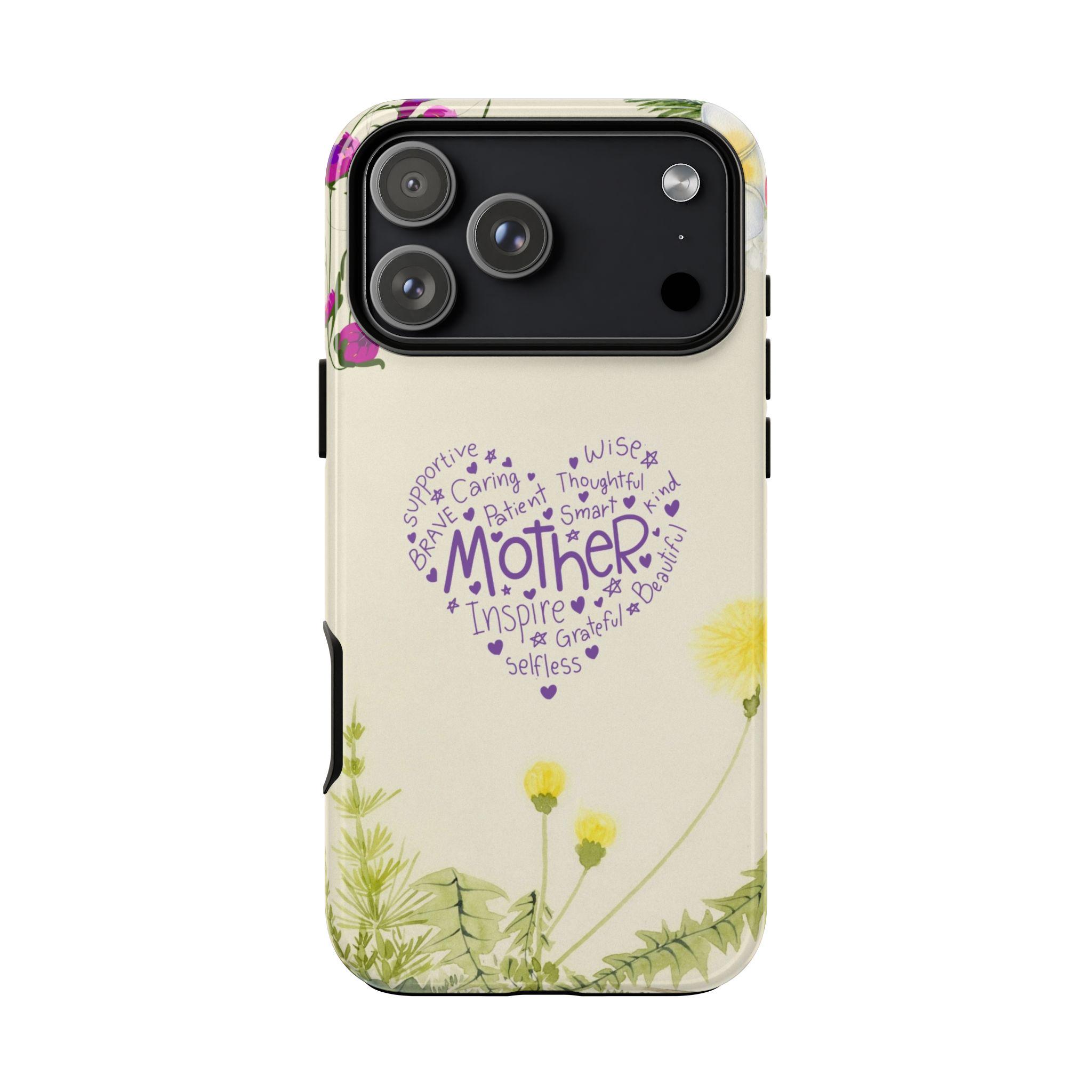 The Heart of a Mother - Floral Typography Tough Phone Case