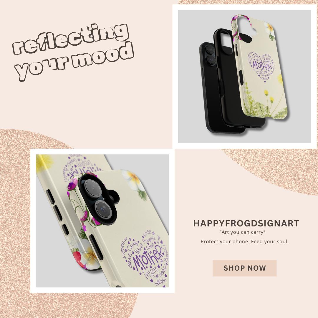 Celebrate the beautiful soul of your mother with our exclusive HappyFrogDesignArt "Heart of a Mother" edition. This elegant design features a heartfelt typography heart, blooming with words that describe her best—wise, brave, patient, and inspiring. Surrounded by delicate watercolor florals, it’s a constant reminder of how much she is loved.