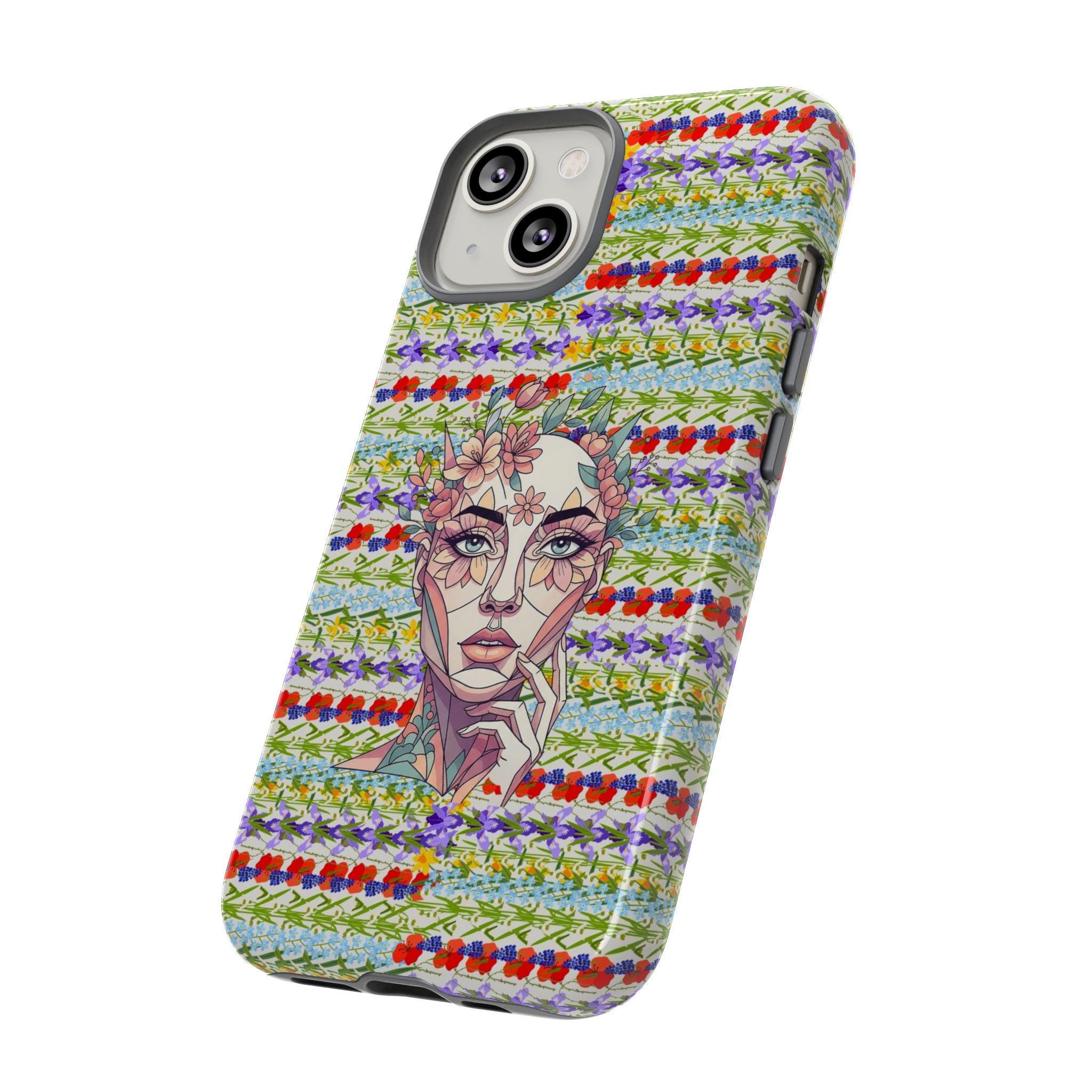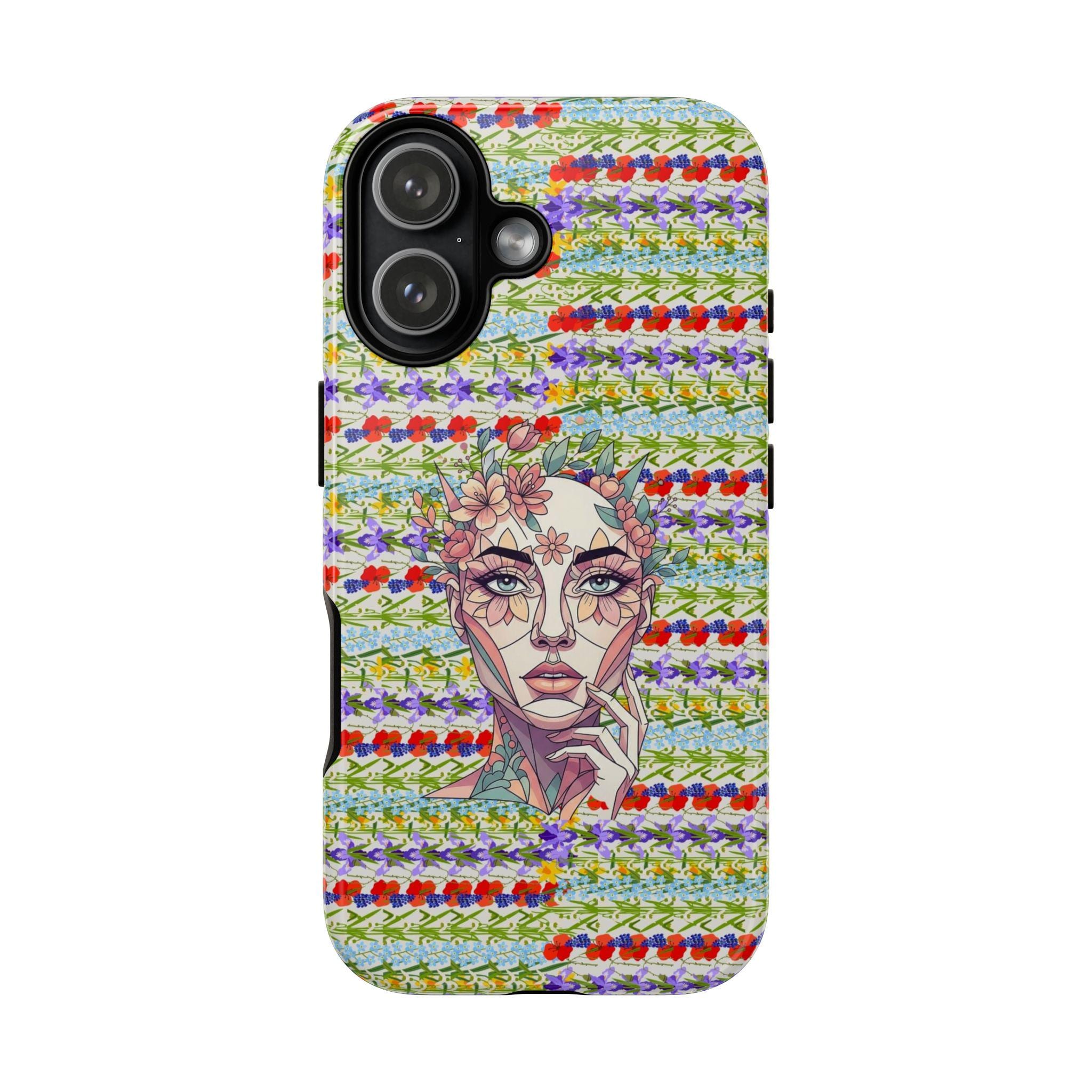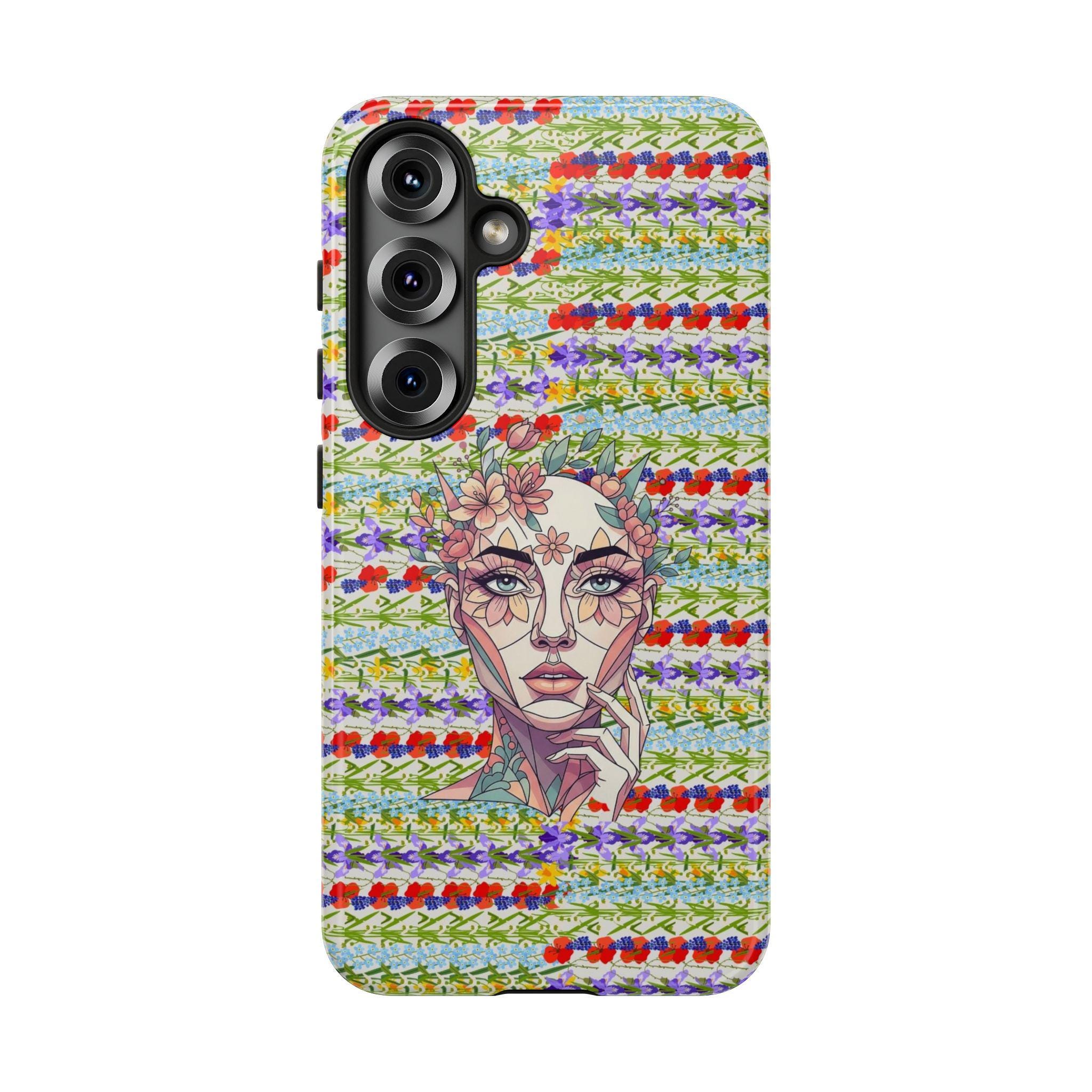 Elevate your device with our most sophisticated design yet. The HappyFrogDesignArt "Floral Bloom" case features a stunning, surrealist portrait of a serene female silhouette, intertwined with intricate botanical patterns. It’s a masterpiece that blends futuristic geometry with the timeless beauty of a wild garden.