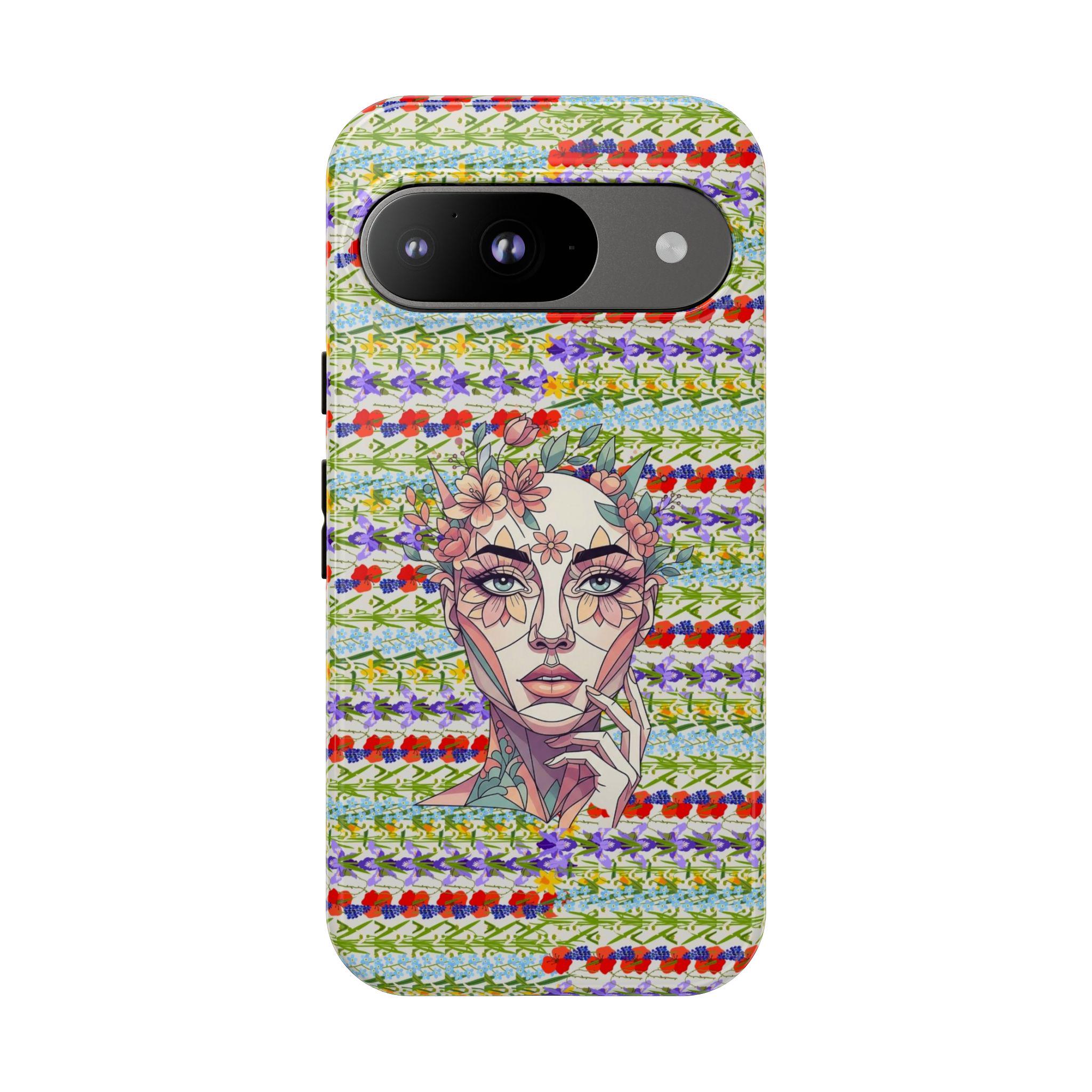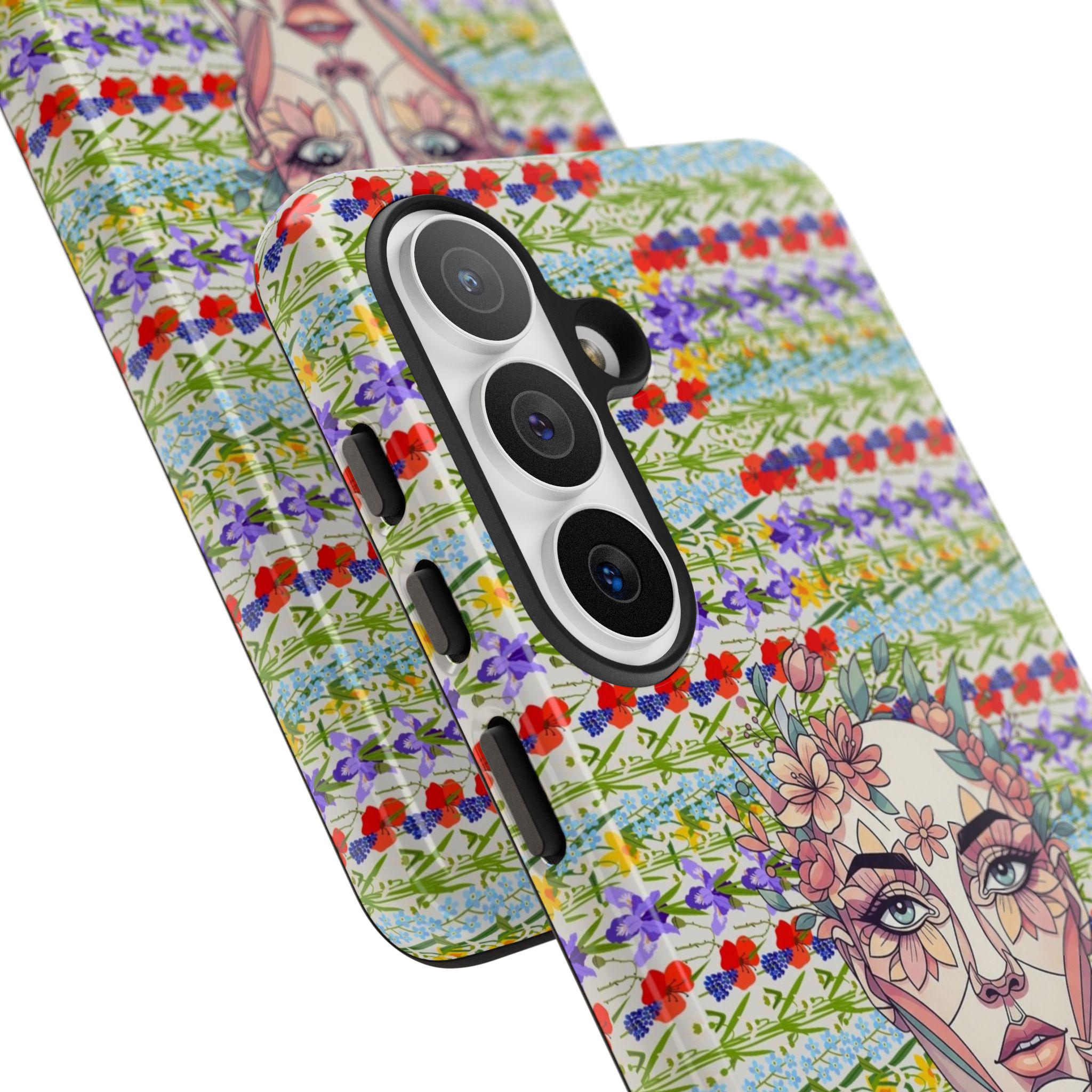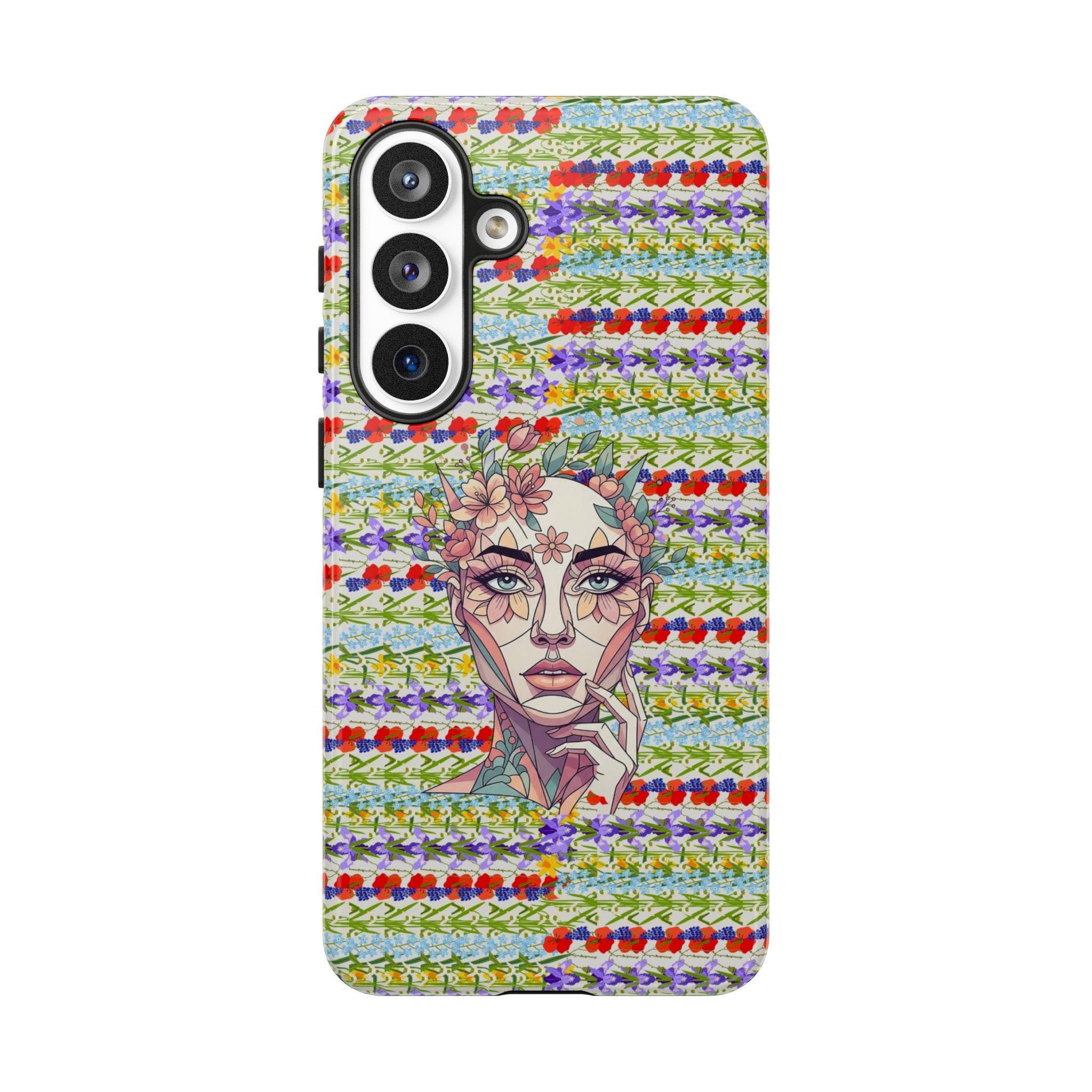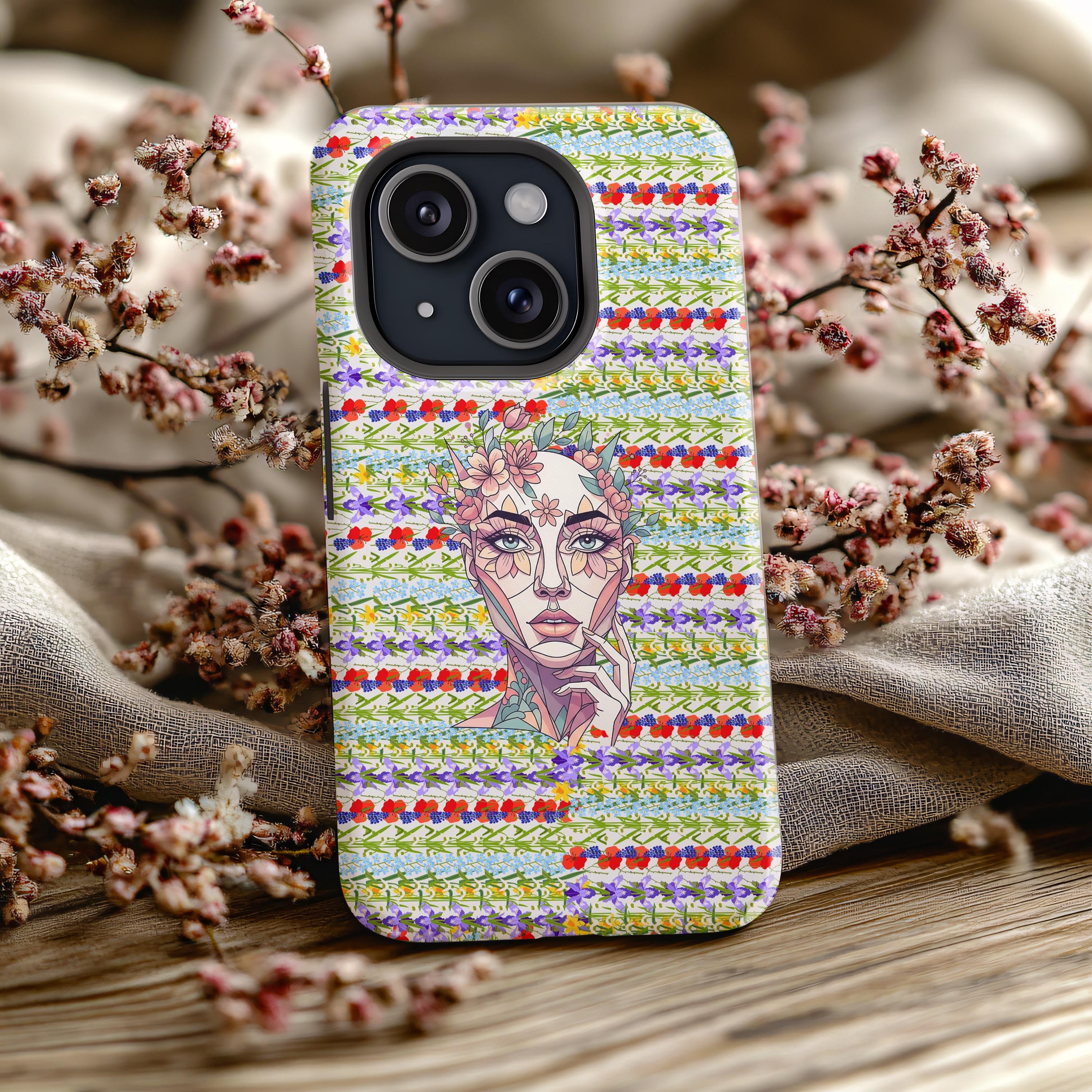 Elevate your device with our most sophisticated design yet. The HappyFrogDesignArt "Floral Bloom" case features a stunning, surrealist portrait of a serene female silhouette, intertwined with intricate botanical patterns. It’s a masterpiece that blends futuristic geometry with the timeless beauty of a wild garden.