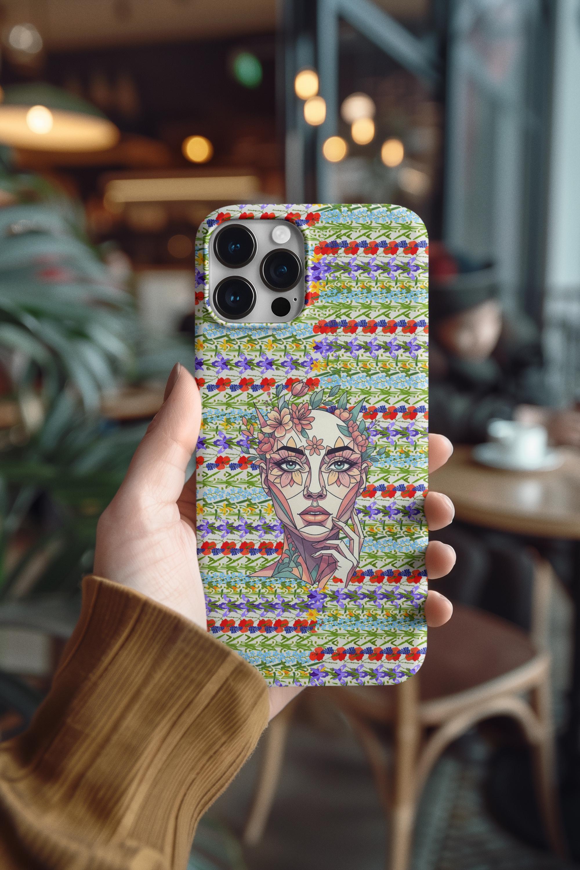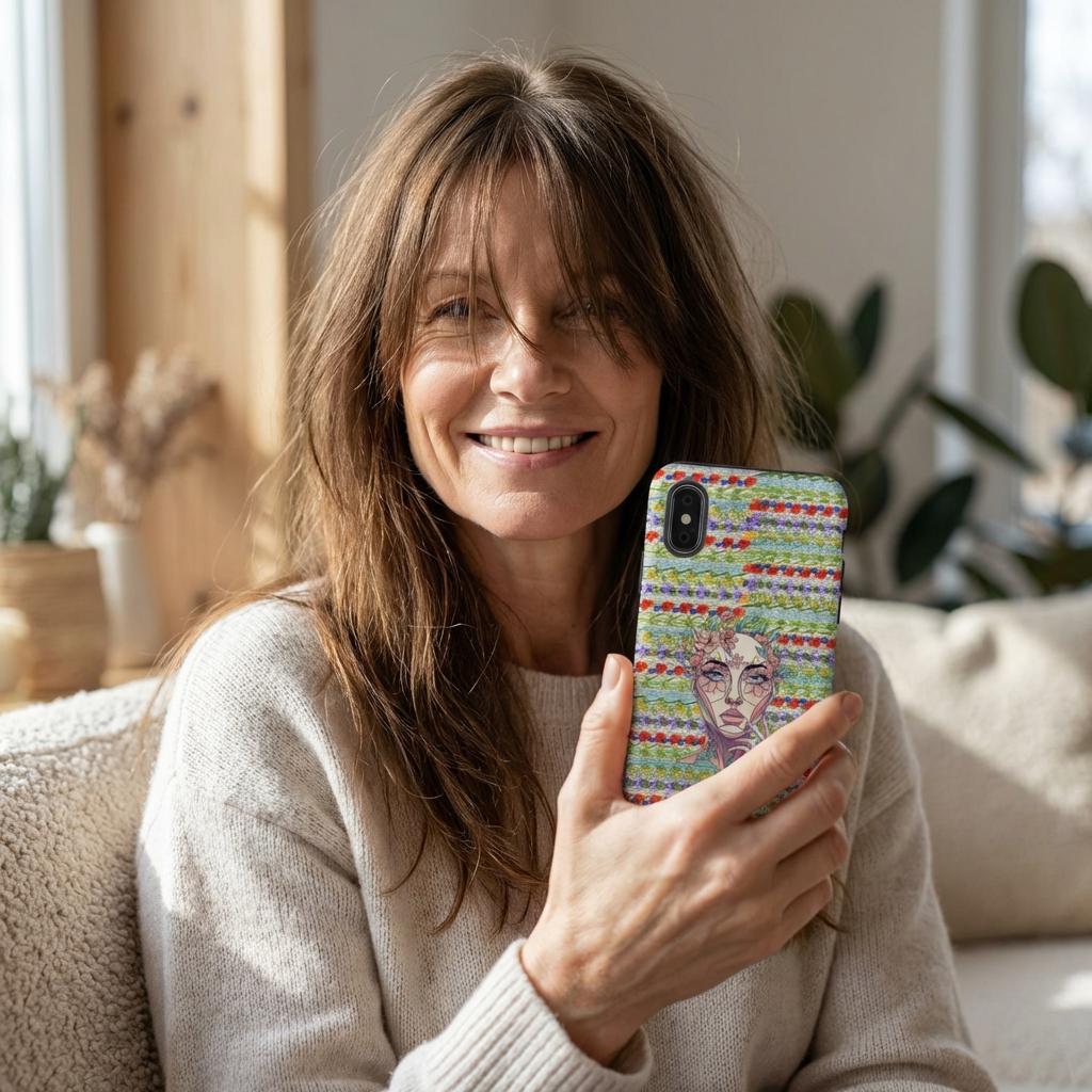 This phone case blends organic floral curves with clean geometric lines to create a refined, art-forward accessory. The Flowered Woman silhouette feels like a quiet statement — graceful yet modern — that slips into everyday life without shouting. It’s for people who treat their devices as part of their personal aesthetic: collectors of design, gallery-goers, or anyone who prefers subtle artistry over loud logos. The case wears well outdoors thanks to UV protection and resists the knocks and drops of daily life with a dual-layer build and shock-absorbing TPU liner. Choose glossy or matte to match your look; the slim profile preserves wireless charging and keeps ports open for easy use. Keep it away from harsh solvents and prolonged direct sun to maintain the image’s clarity and color.